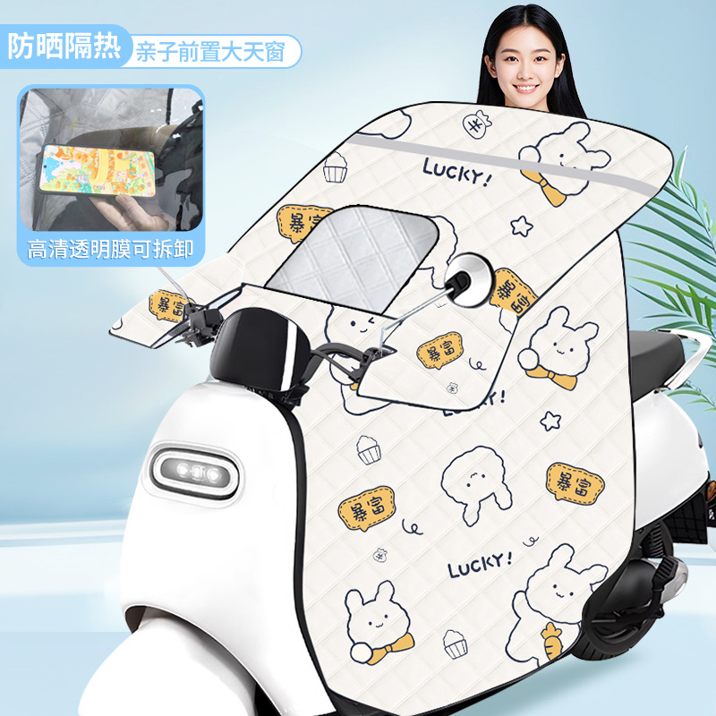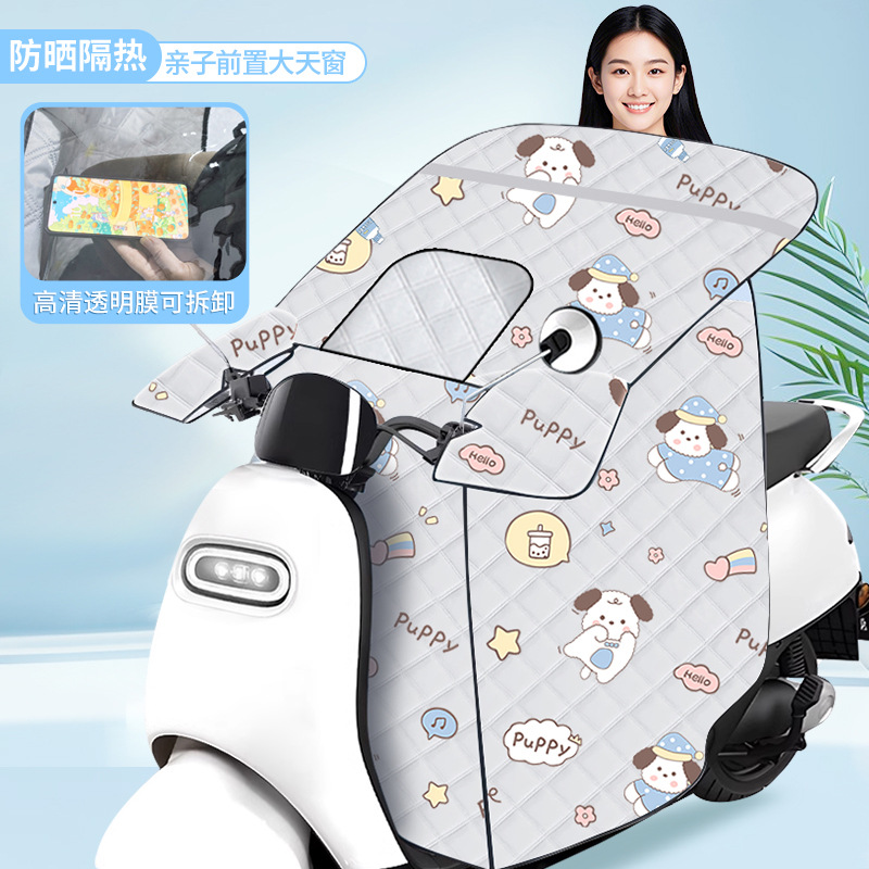 源头工厂批发电动车挡风被夏季亲子款加大侧翼防晒电瓶车挡风罩
