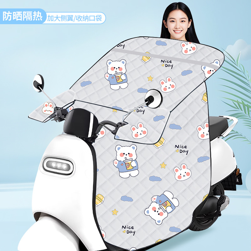 现货供应夏款牛津布电动车挡风被大口袋透气把套防晒电瓶车挡风被