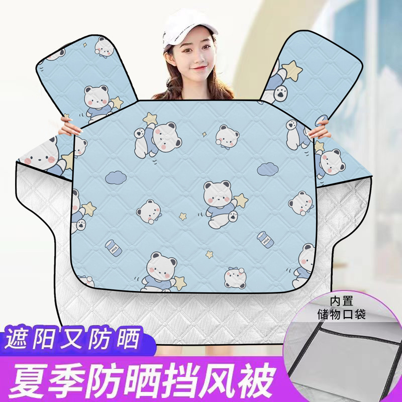 电动车挡风被夏季防晒防风遮阳罩摩托电瓶车防水斗篷式挡风被通用