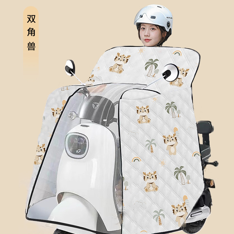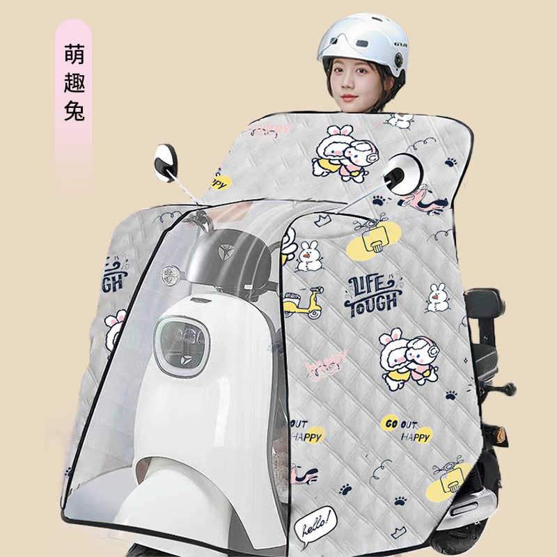 抖音小红书夏季凉感带坐垫淡黄色可爱简约电动车摩托车挡风被