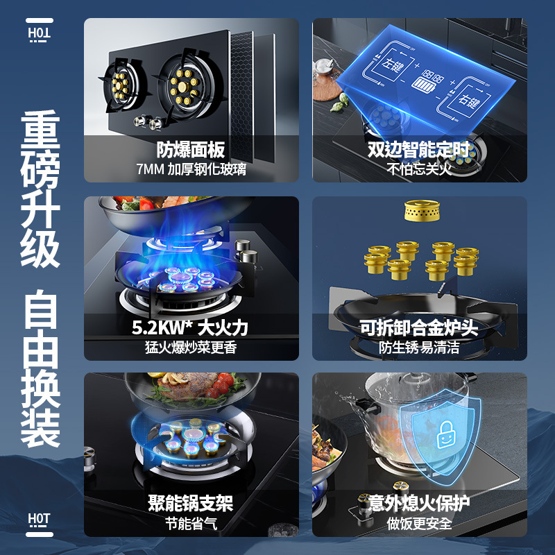燃气灶灶具双灶家用嵌入式猛火炉液化气天然气煤气灶定时猛火灶
