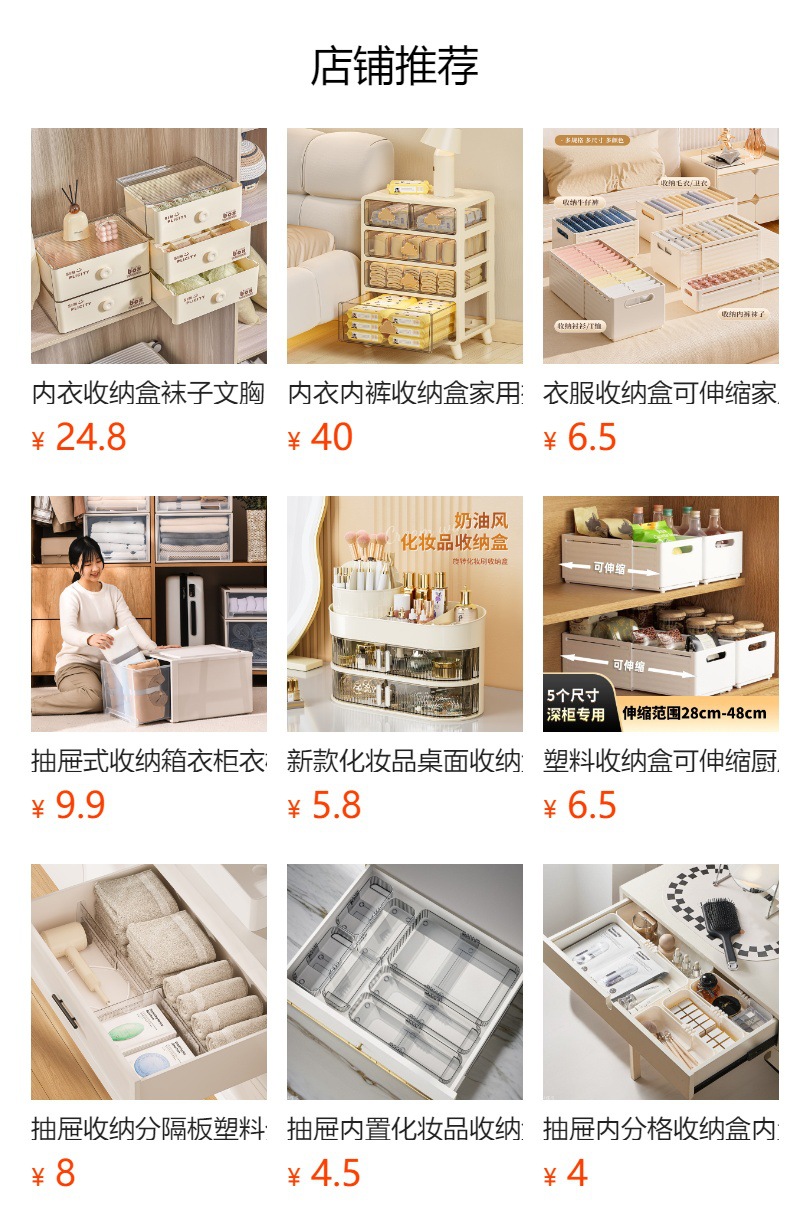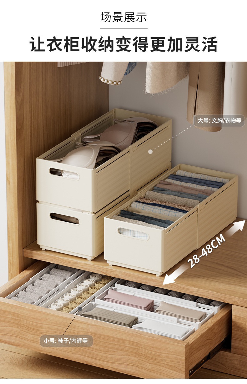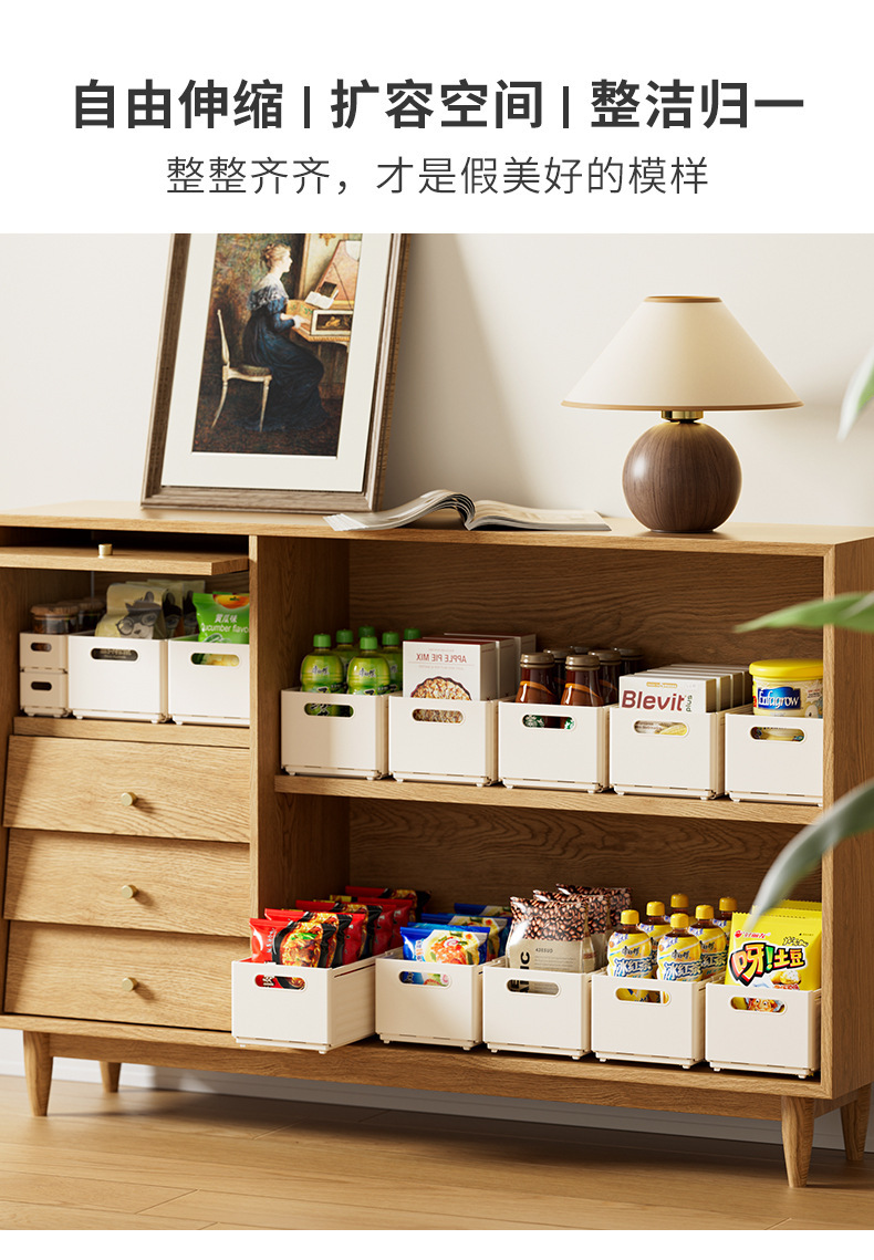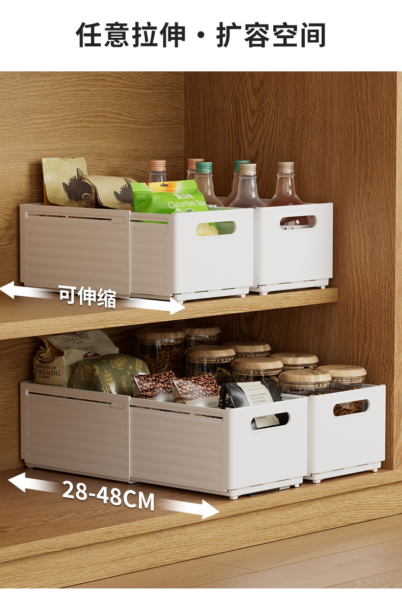 抽屉式桌面零食杂物厨房整理盒长方形直角收纳筐橱柜可伸缩收纳盒