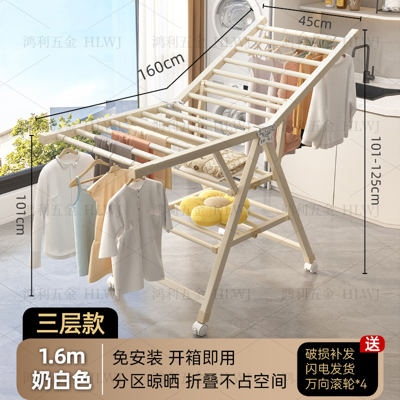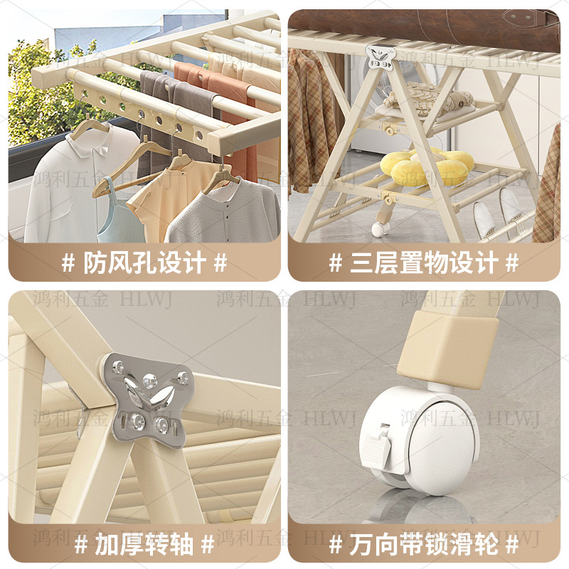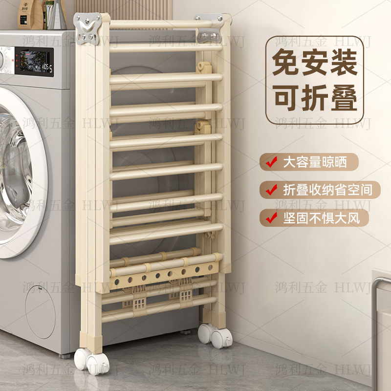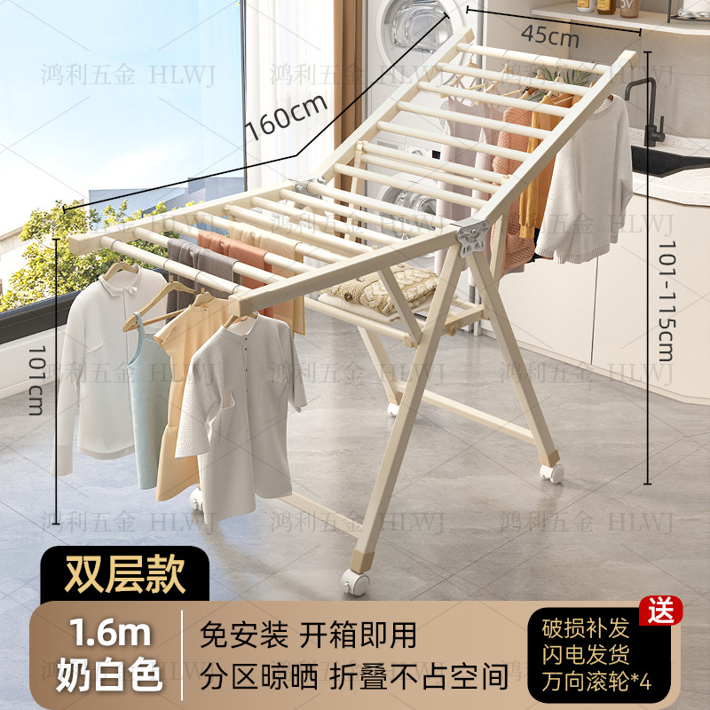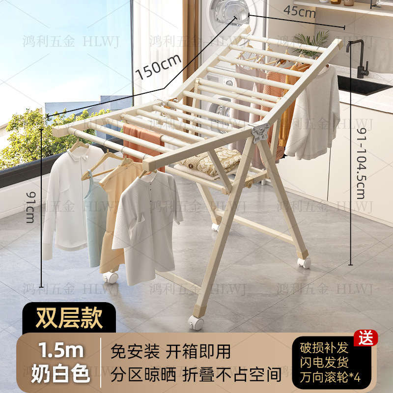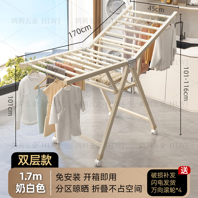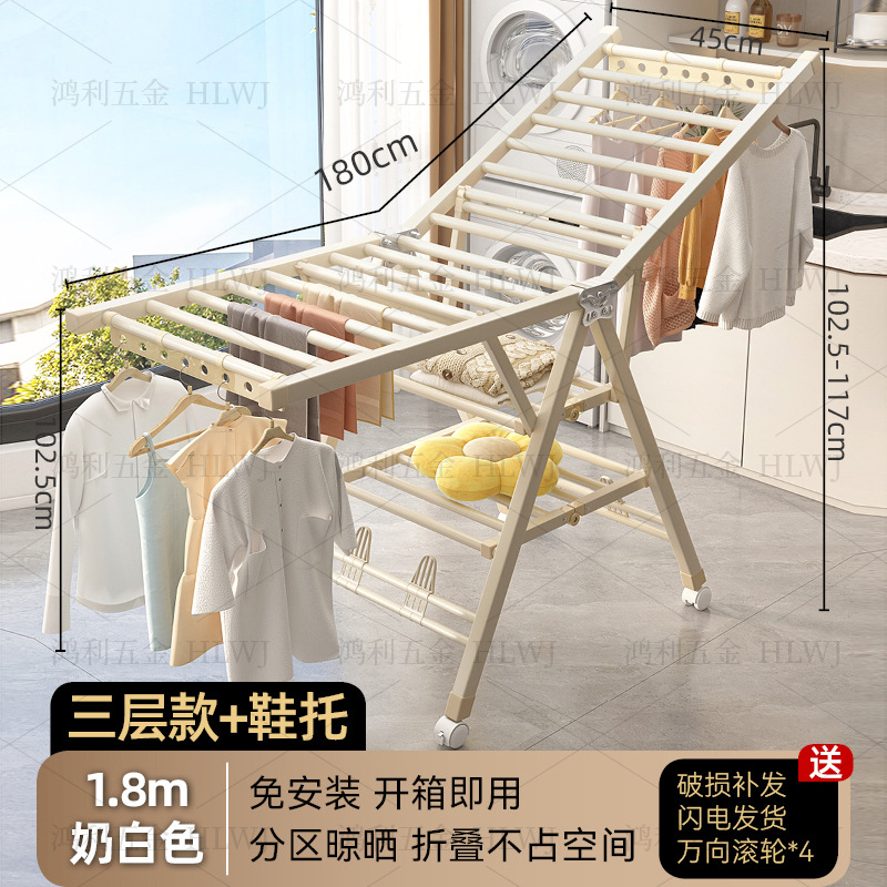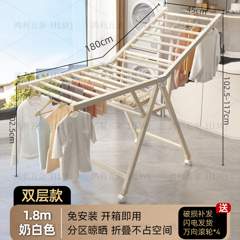 加粗加厚晾衣架落地折叠家用阳台卧室内简易可移动凉晒衣服被子杆