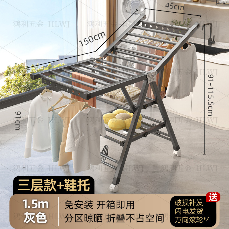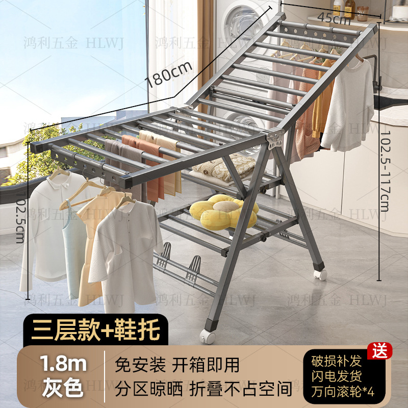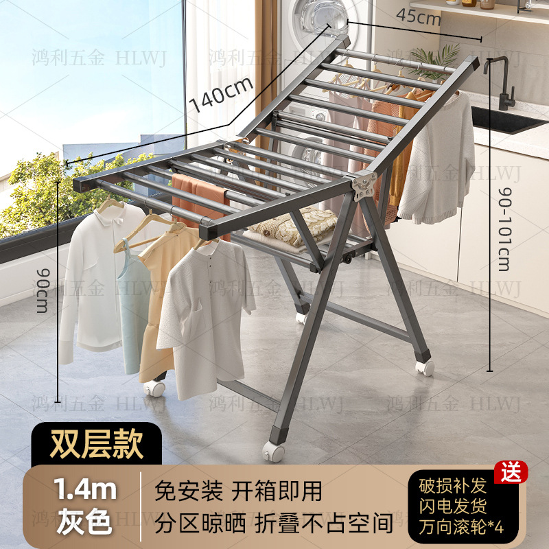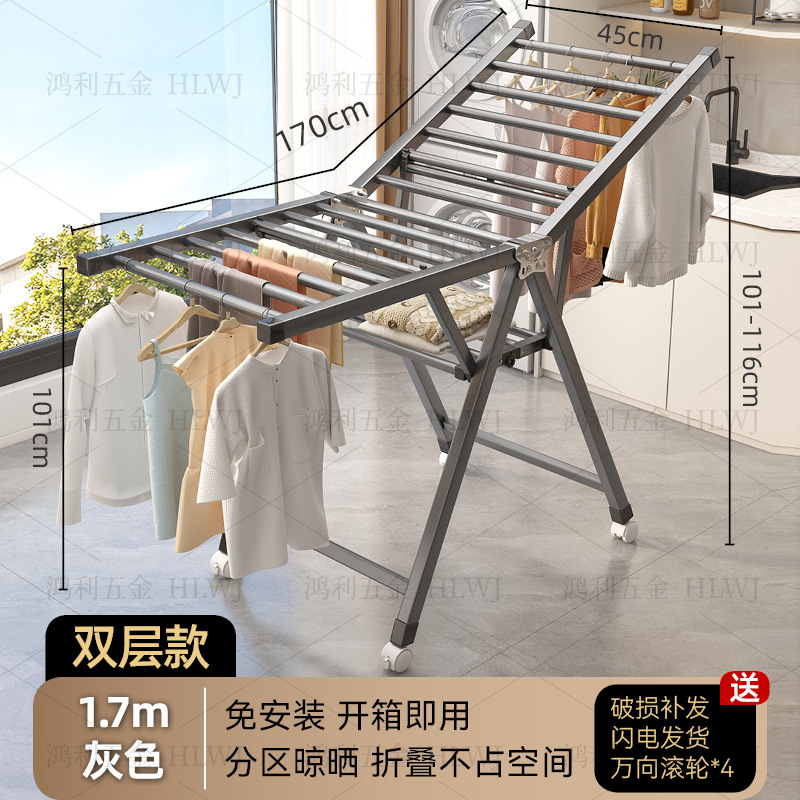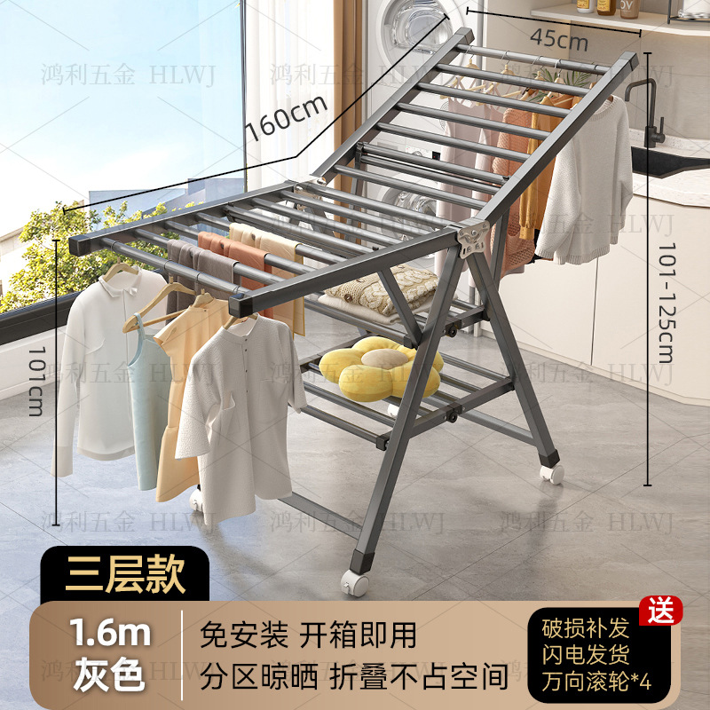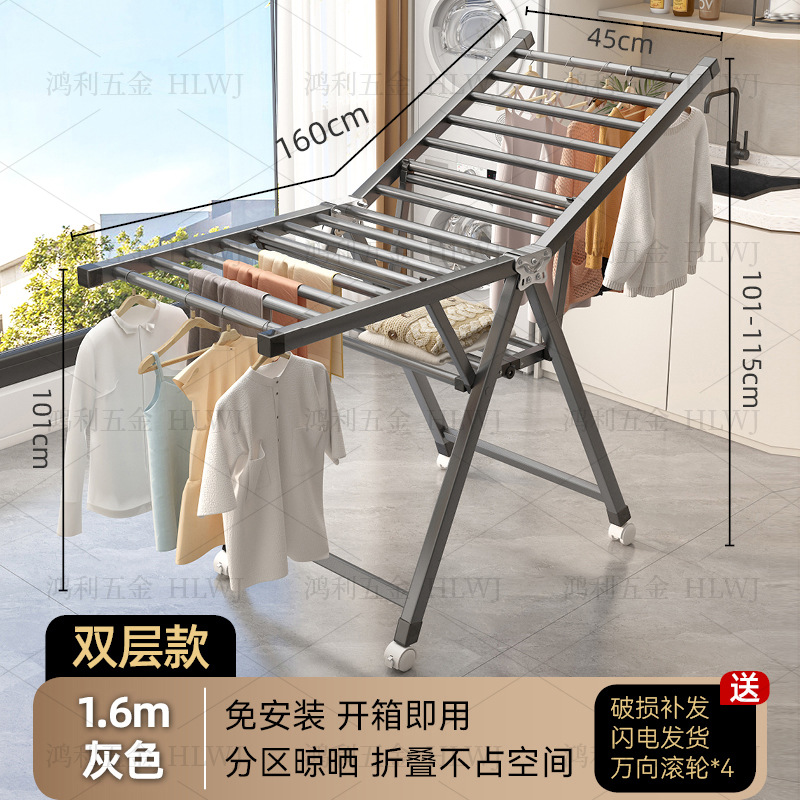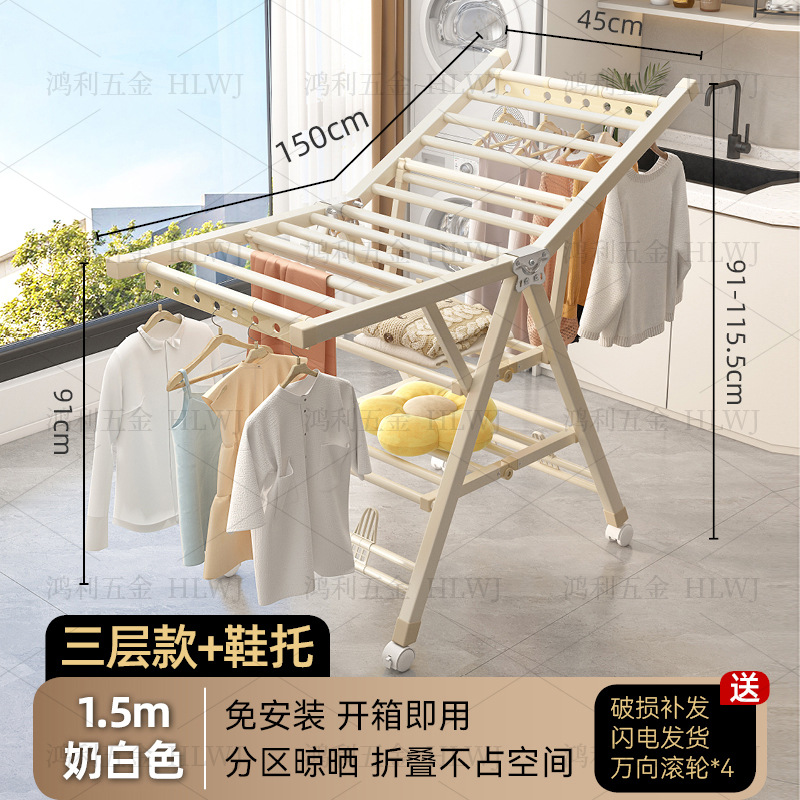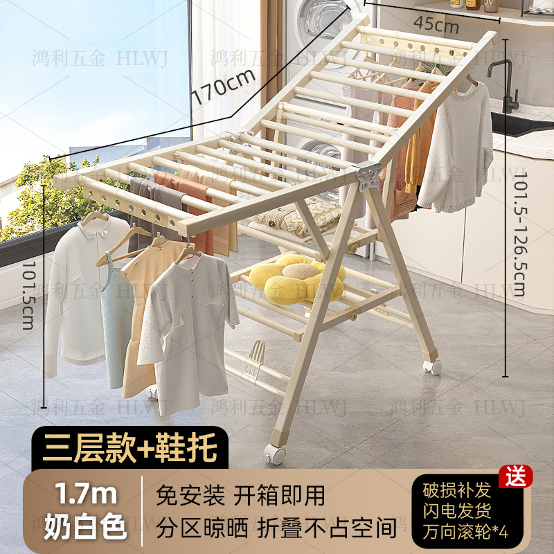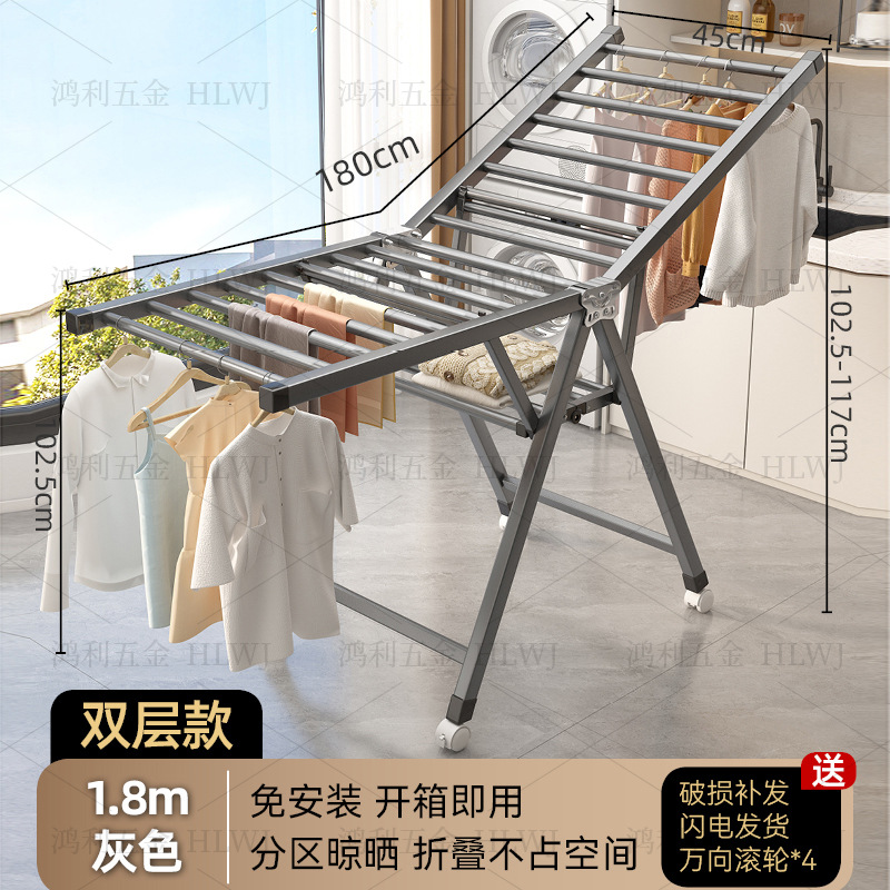 加粗加厚晾衣架落地折叠家用阳台卧室内简易可移动凉晒衣服被子杆