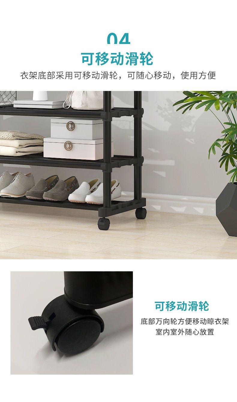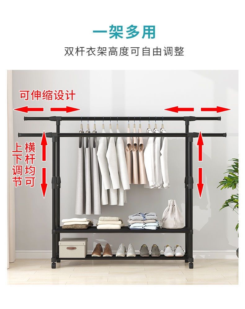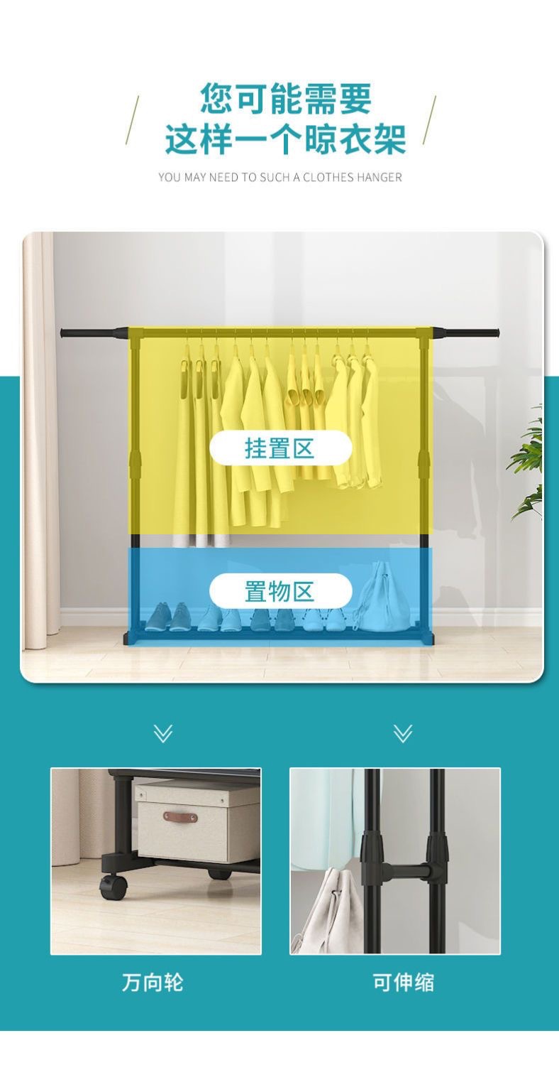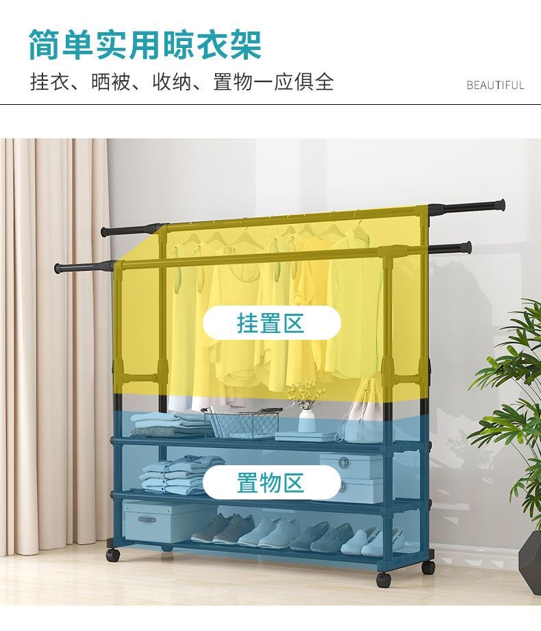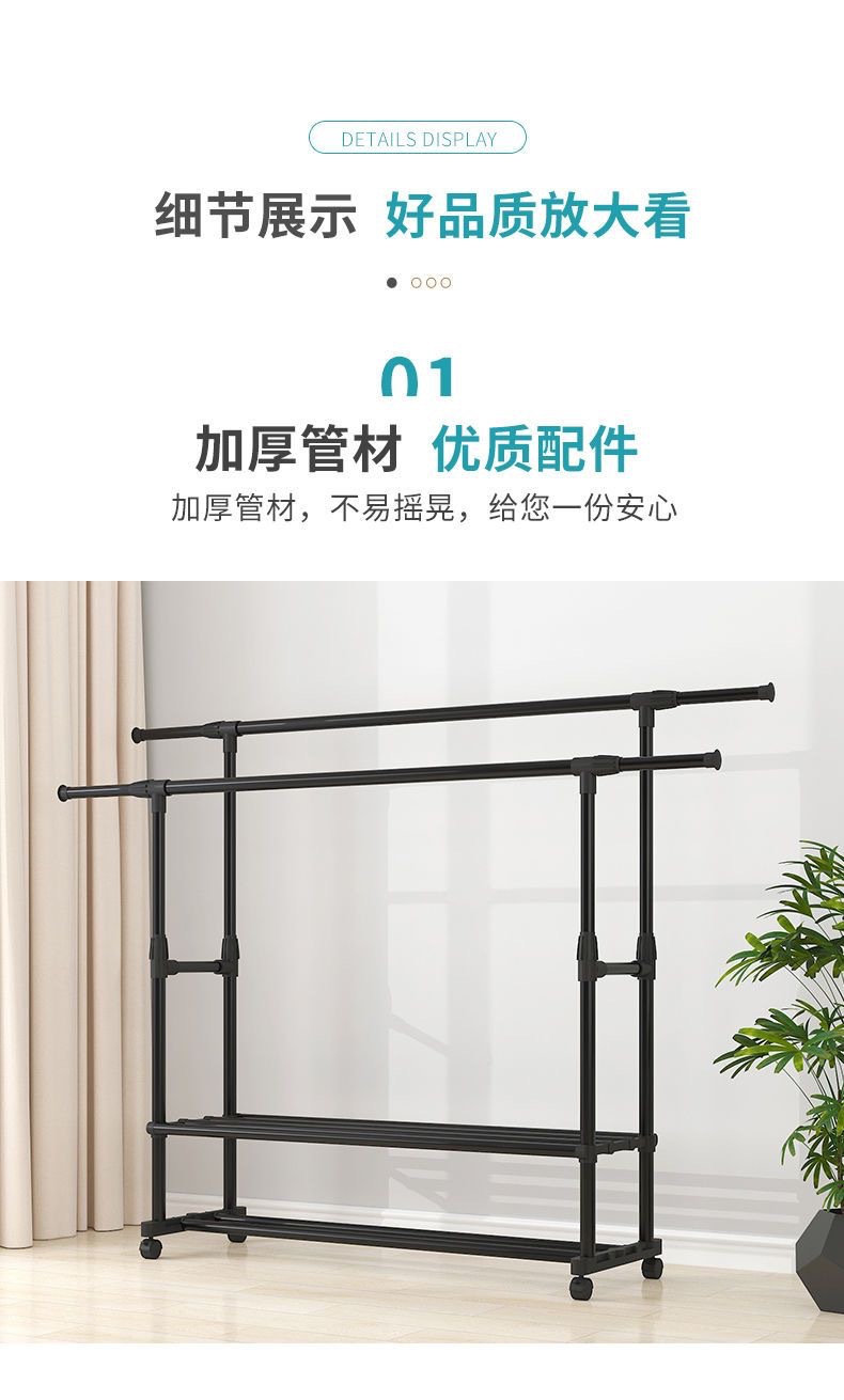 晾衣架落地家用卧室加粗加厚挂衣服学生简易大学宿舍移动晒衣帽架