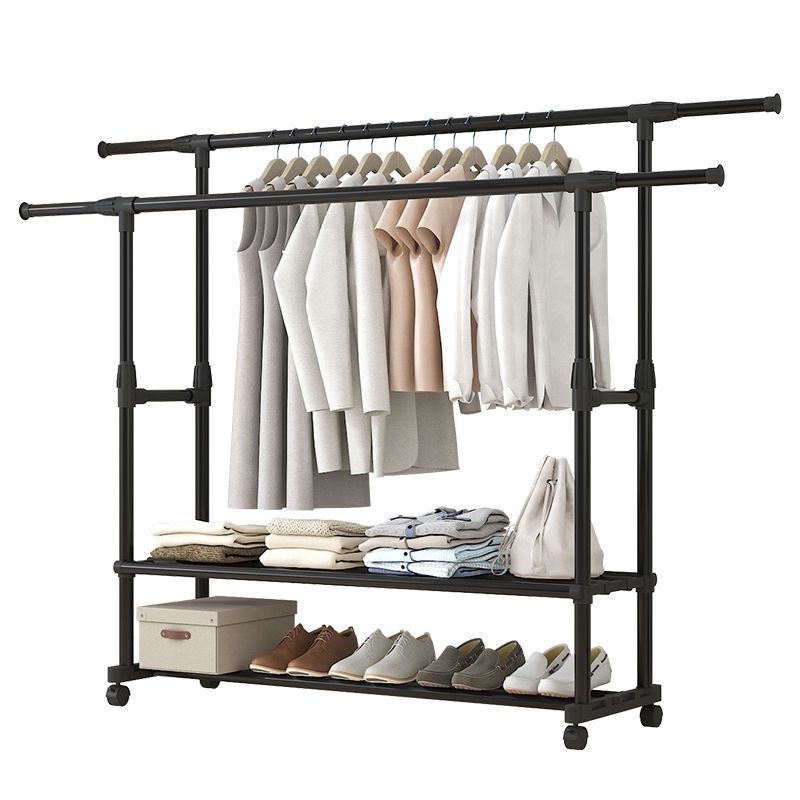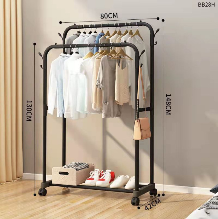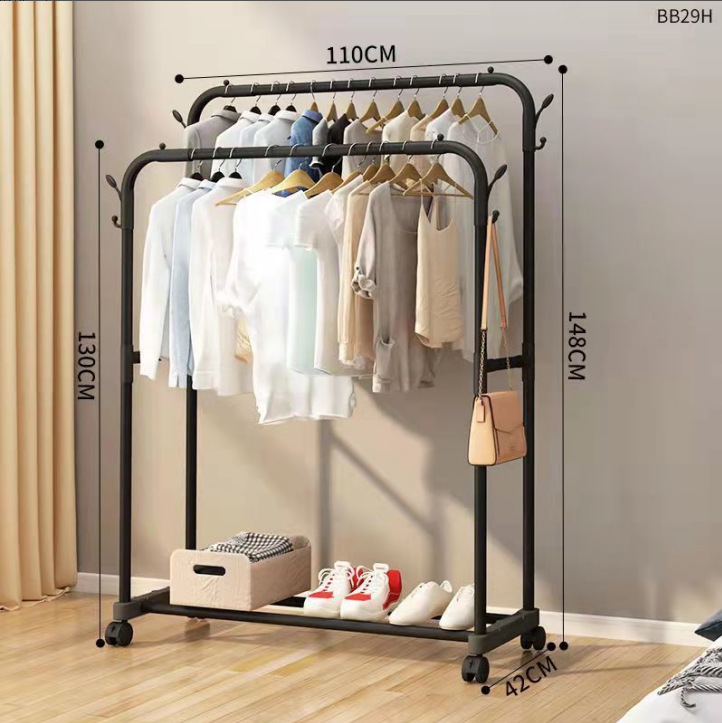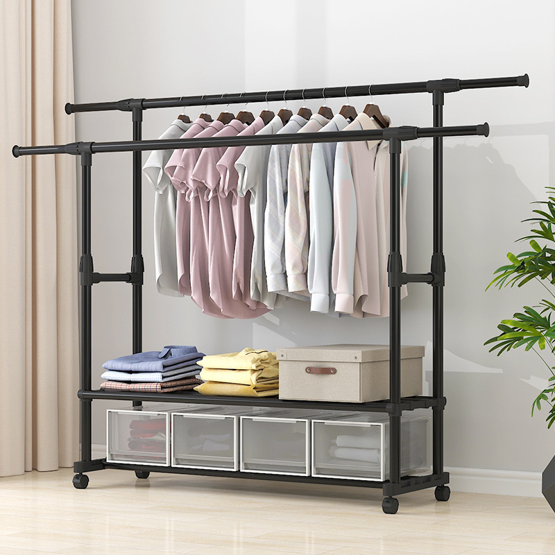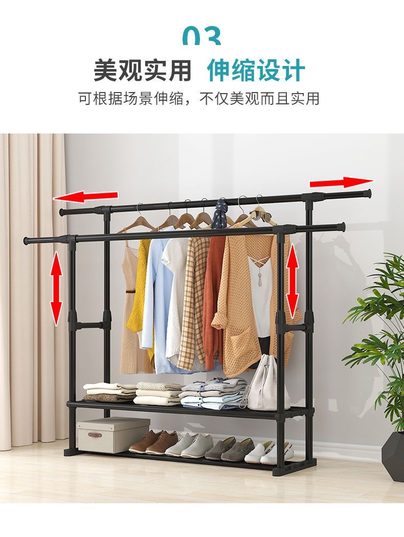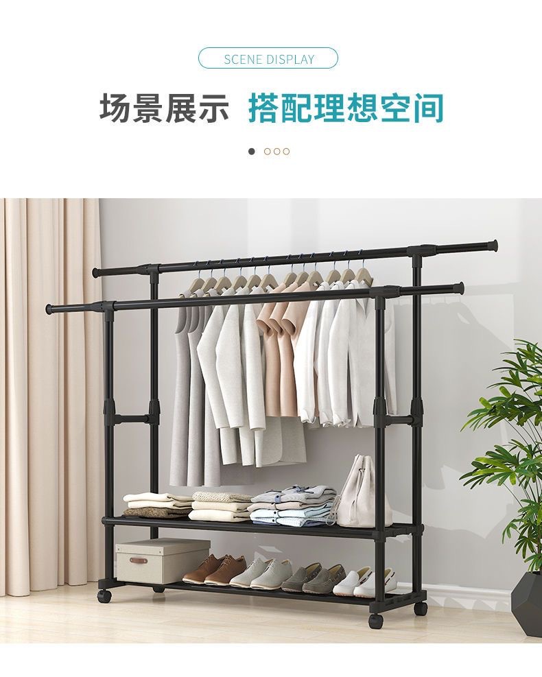 晾衣架落地家用卧室加粗加厚挂衣服学生简易大学宿舍移动晒衣帽架