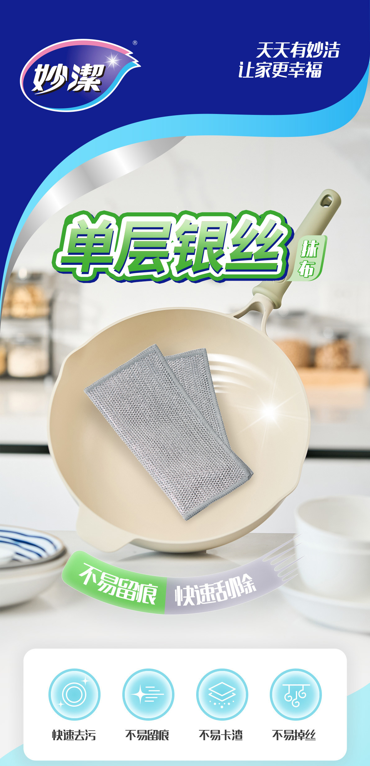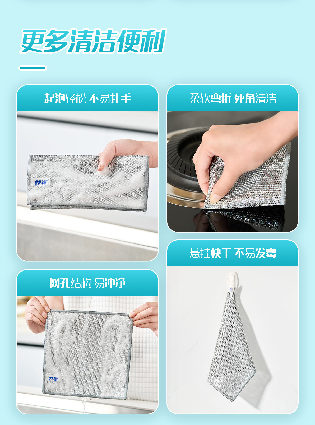 妙洁钢丝洗碗布厨房专用刷碗锅金属丝清洁布不沾油加厚银丝球抹布
