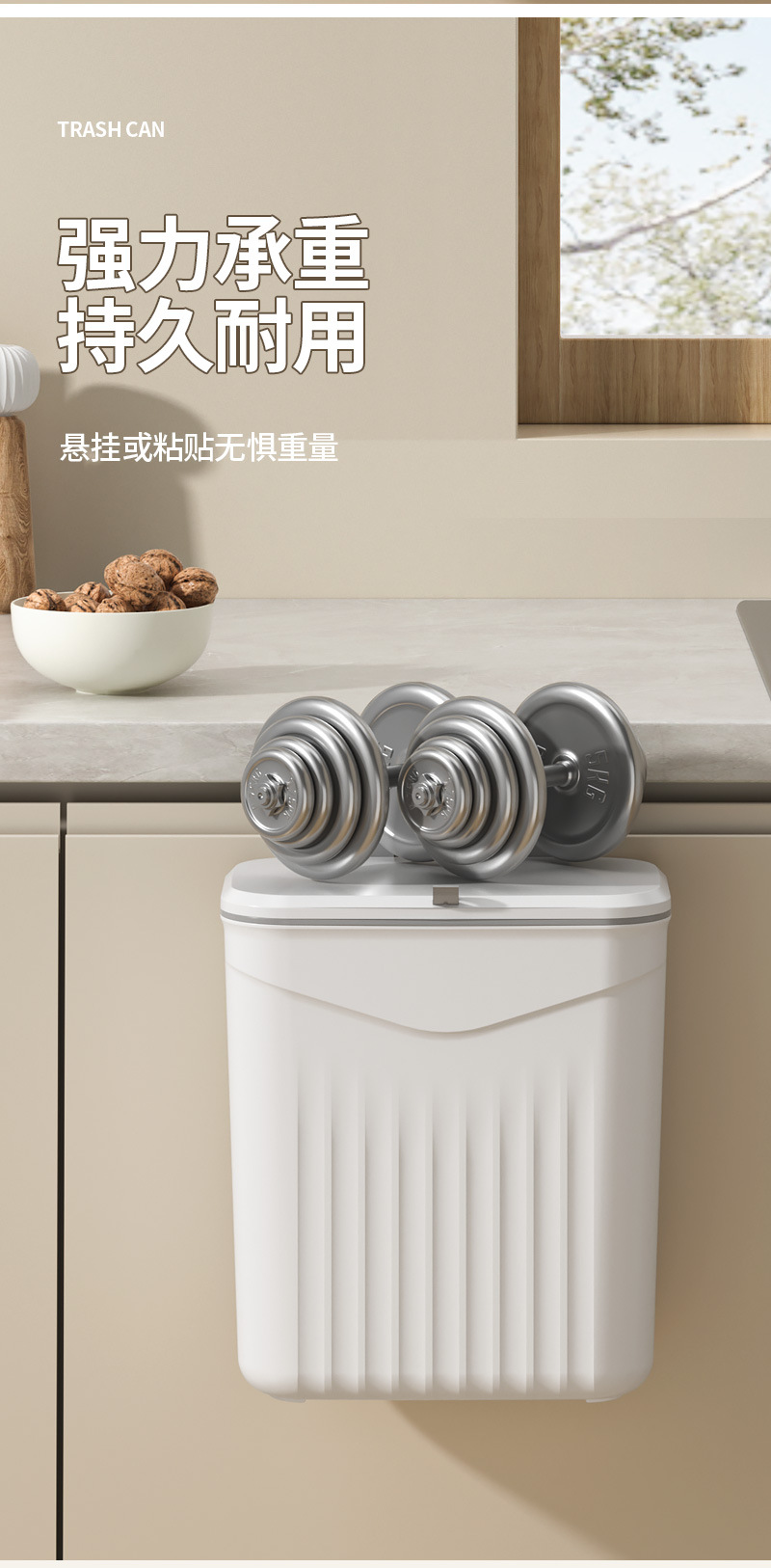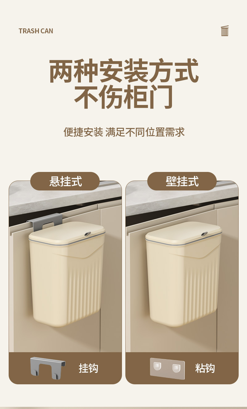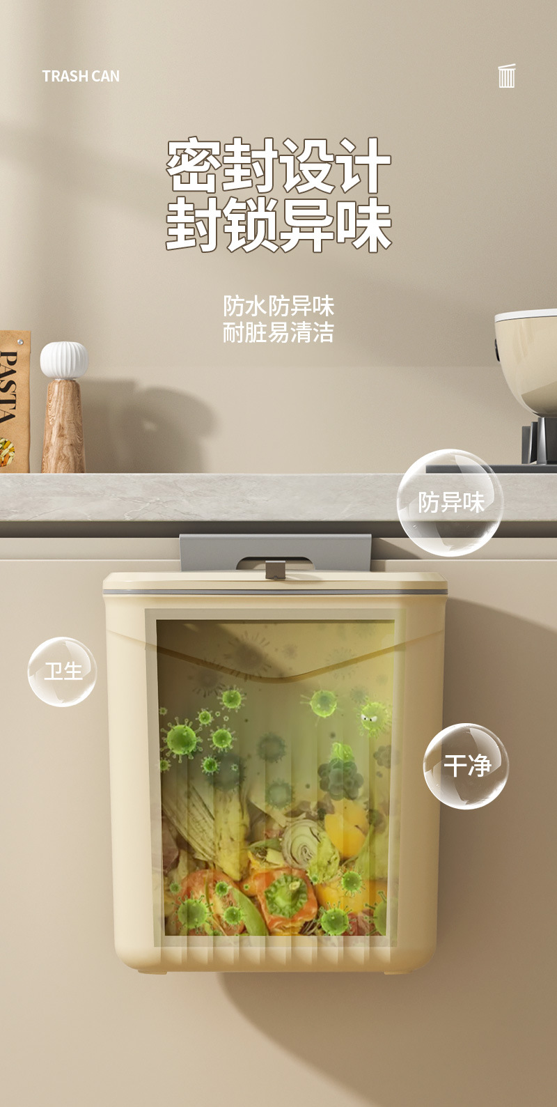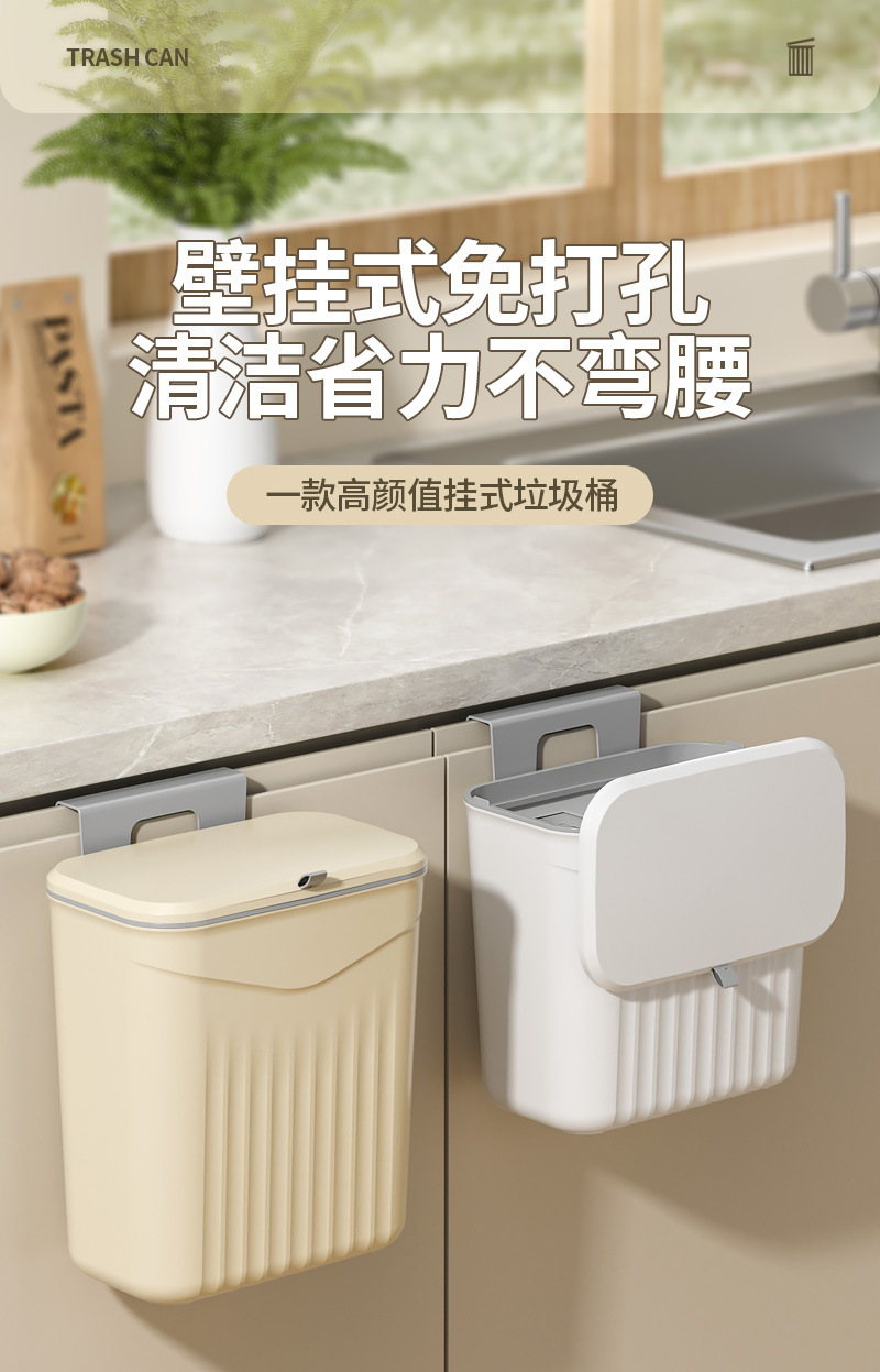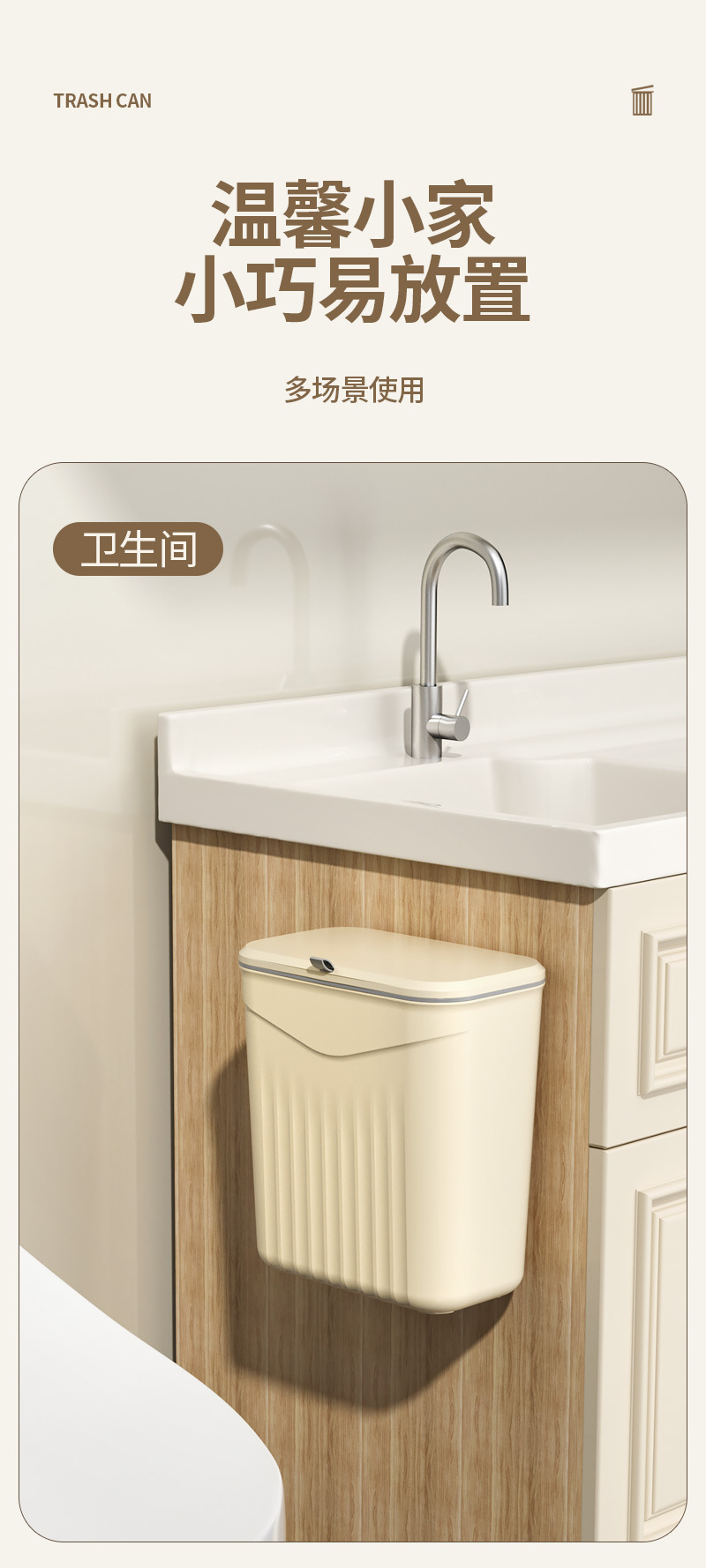 严选厨房壁挂式垃圾桶家用卫生间翻盖纸篓悬挂式免打孔垃圾收纳桶