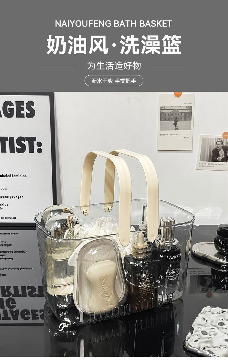 洗澡手提篮洗漱用品收纳篮浴室洗浴透明沐浴收纳盒篮子浴筐洗澡筐