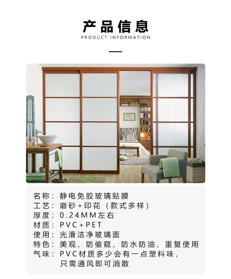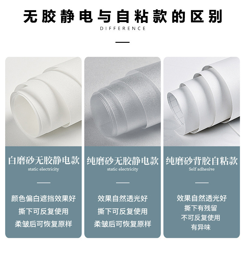 批发玻璃贴膜静电免胶办公室阳台窗户纸卫生间防窥膜磨砂玻璃贴纸