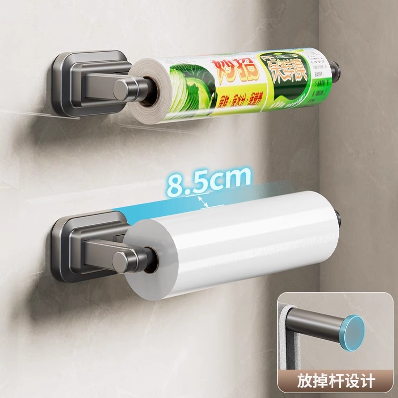 吸盘厨房纸巾架免打孔橱柜保鲜膜收纳挂架挂抹布架纸巾挂杆卷纸架