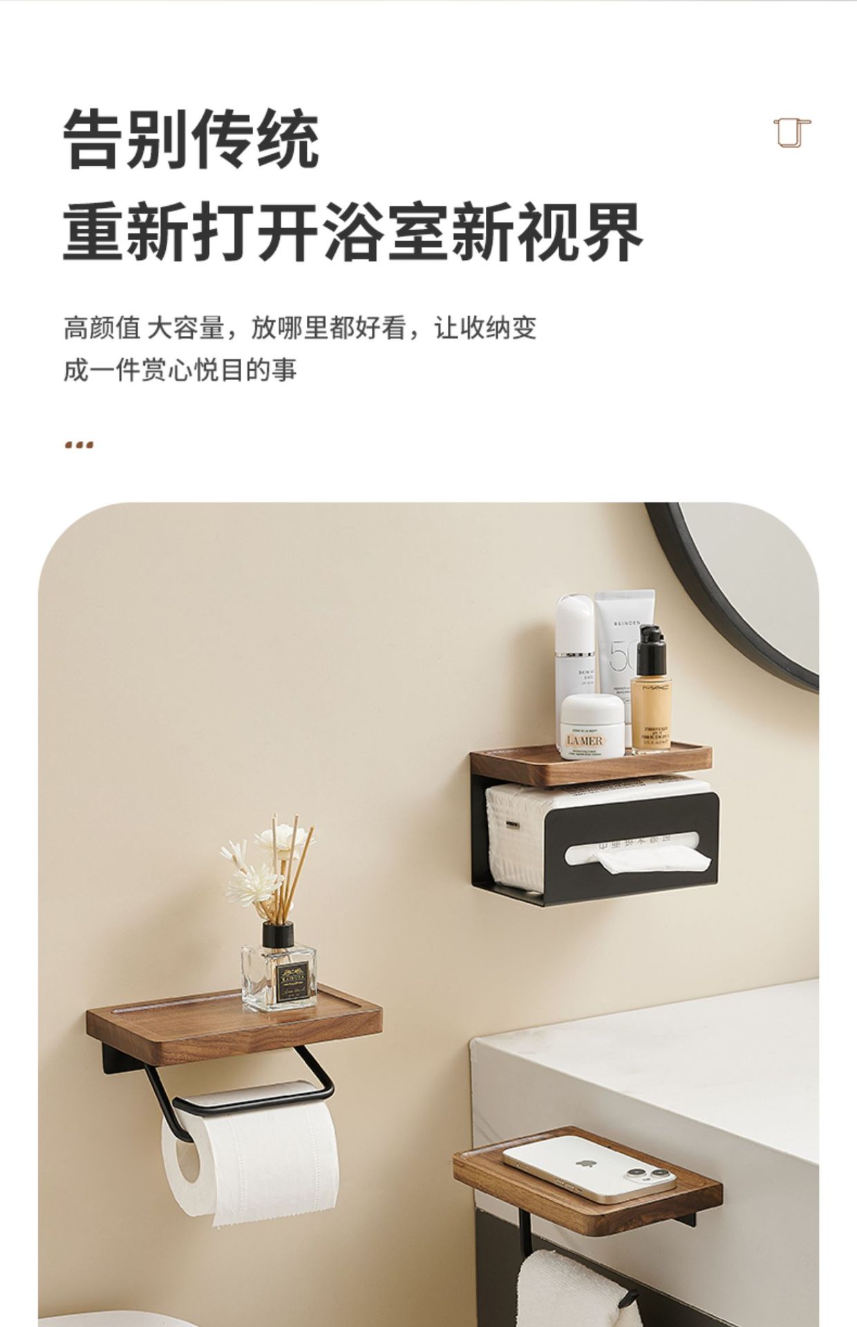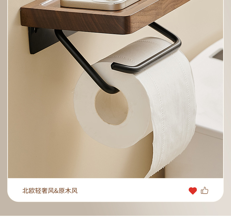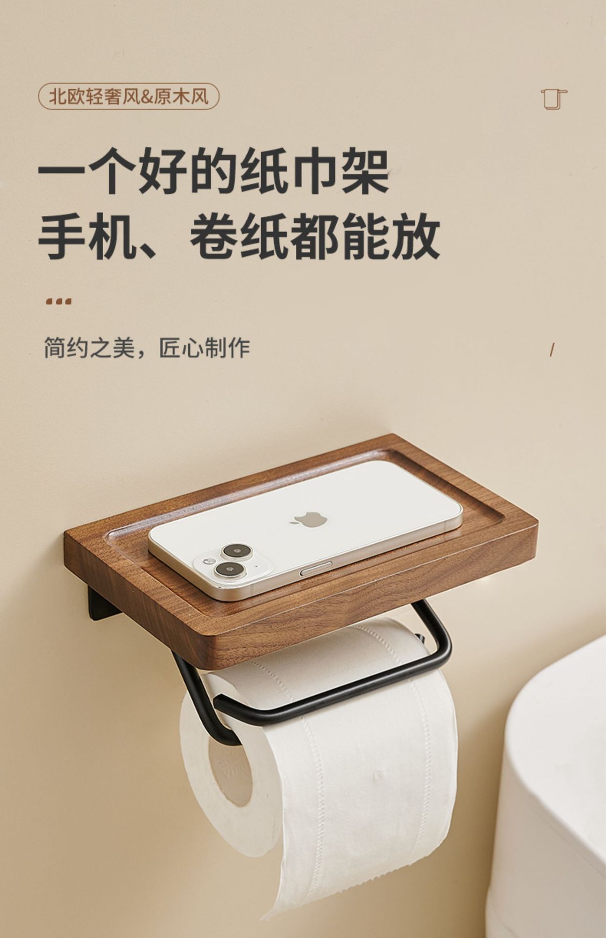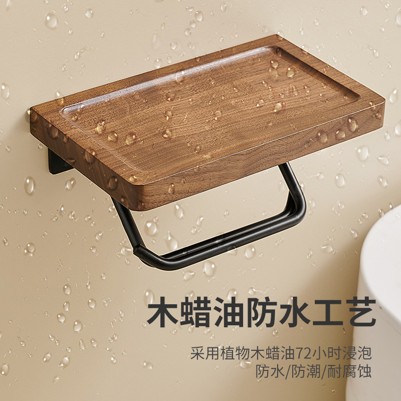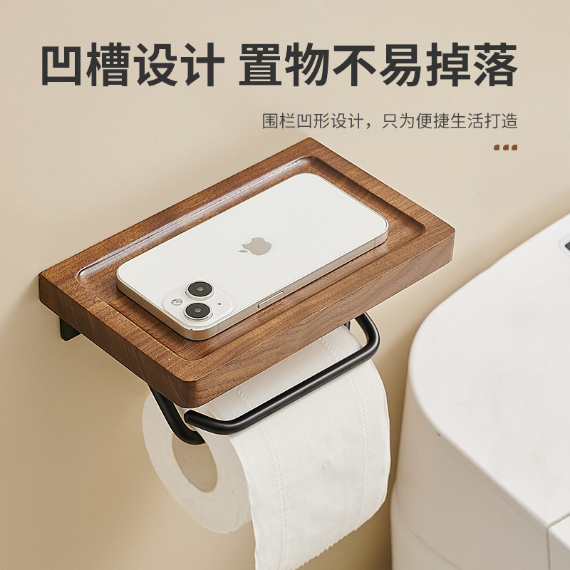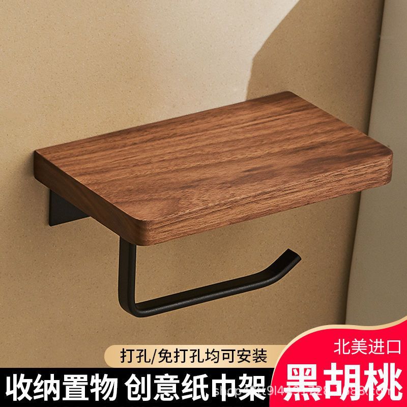 胡桃木轻奢厕所卷纸架卫生间挂卷纸巾架免打孔洗手间抽纸巾盒支架