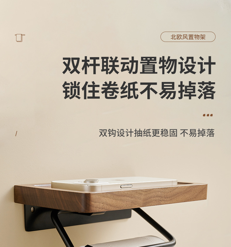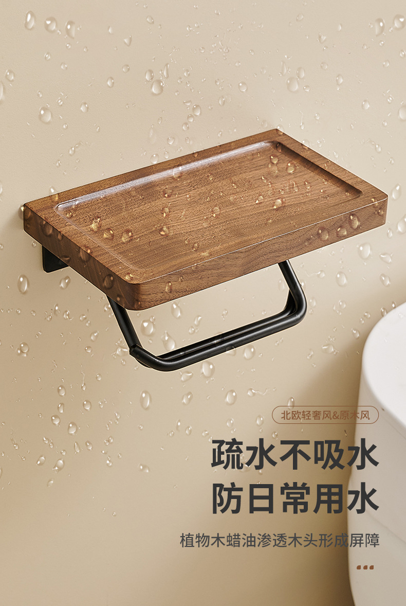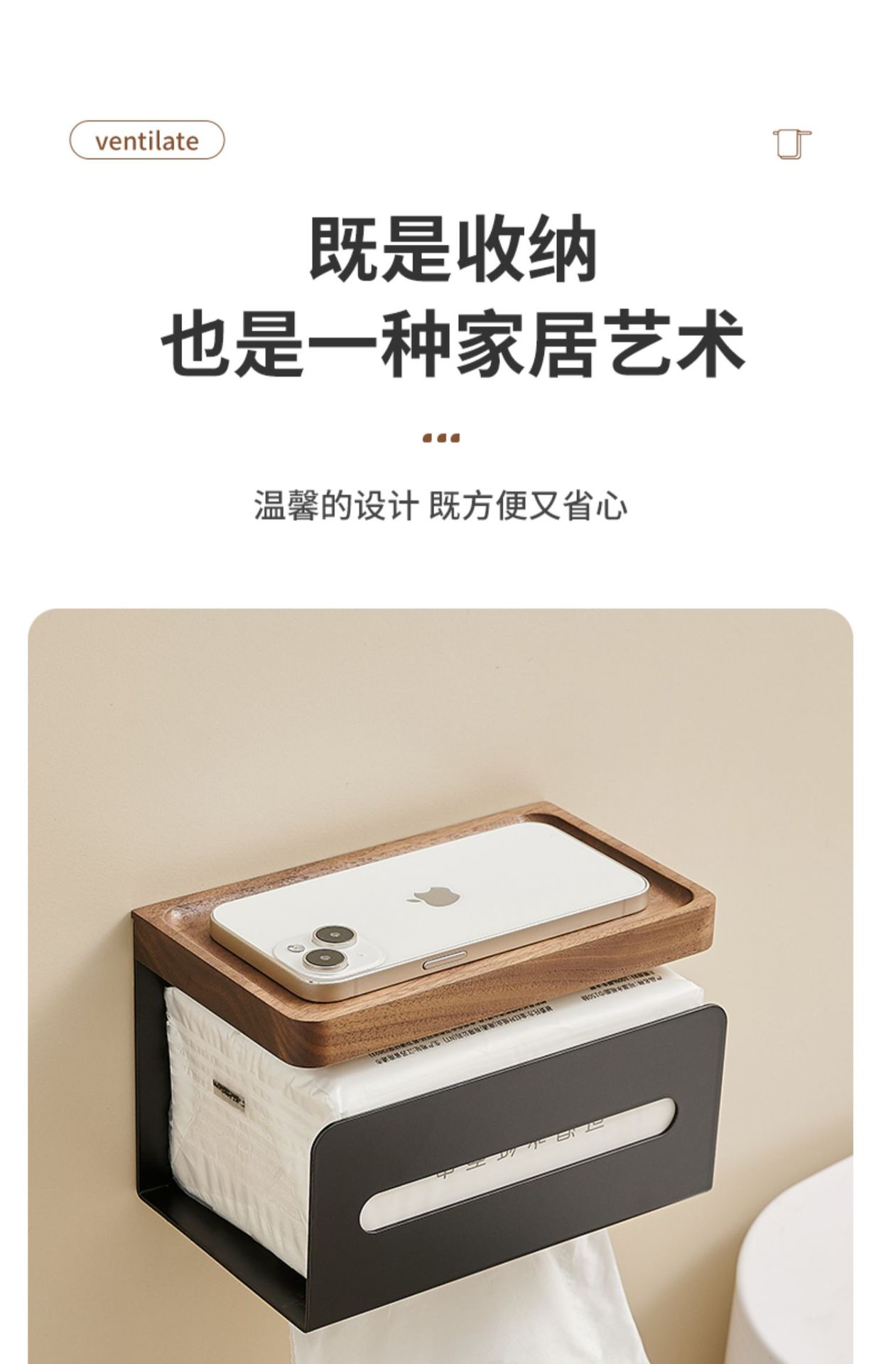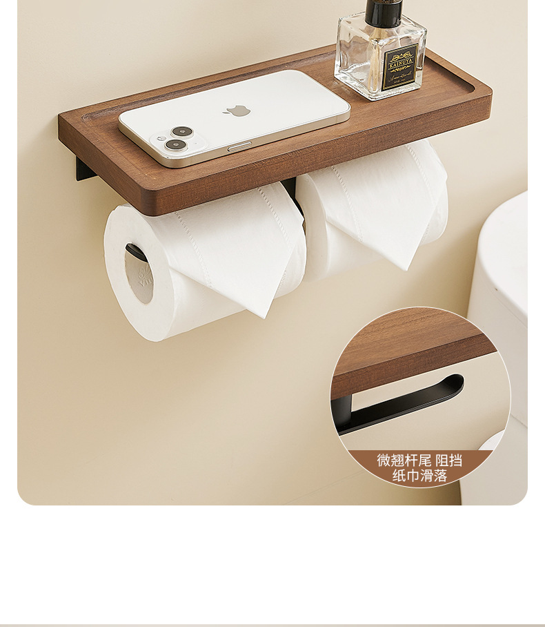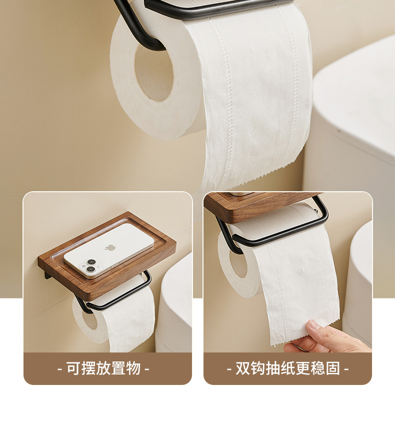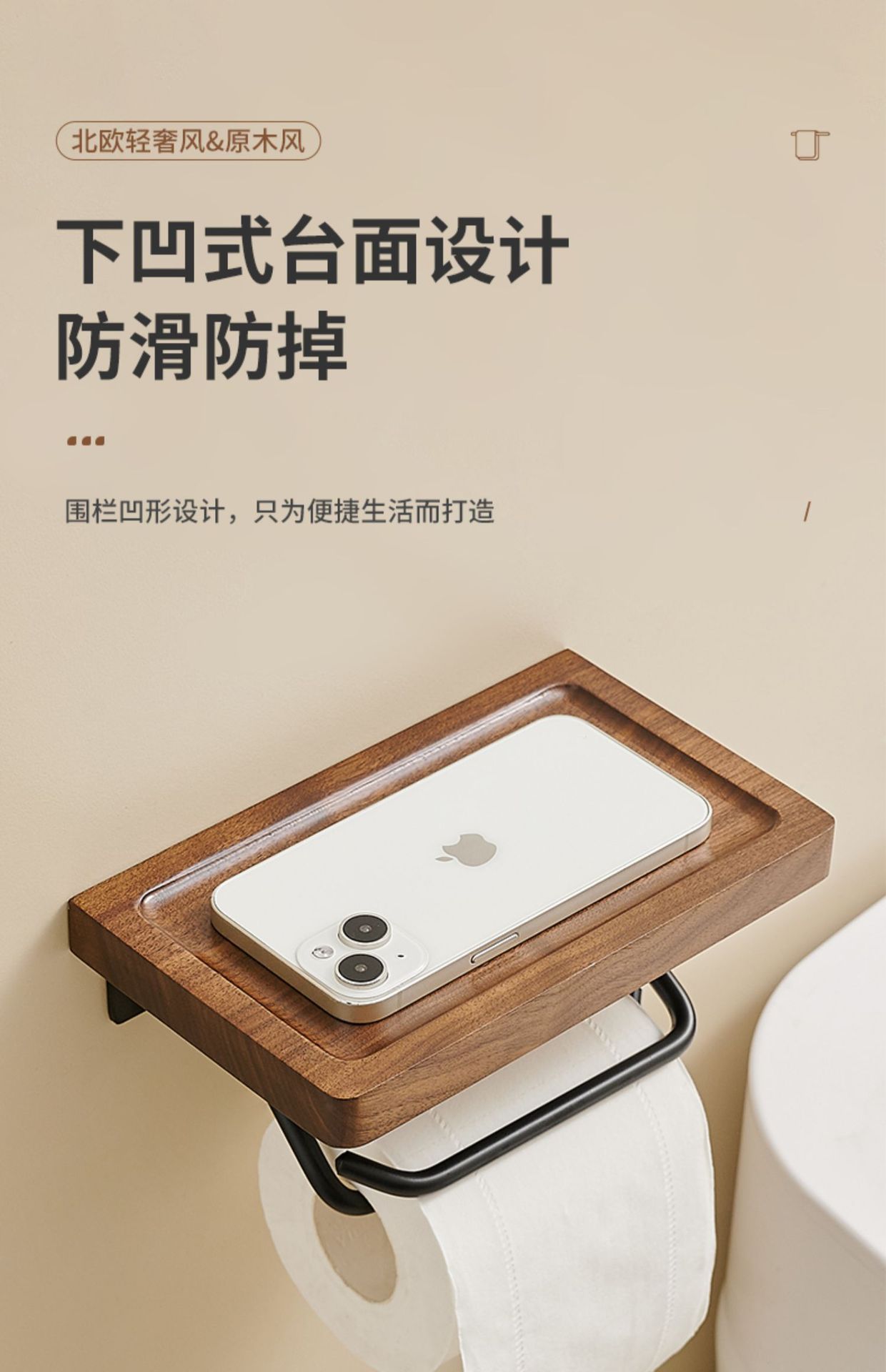 胡桃木轻奢厕所卷纸架卫生间挂卷纸巾架免打孔洗手间抽纸巾盒支架