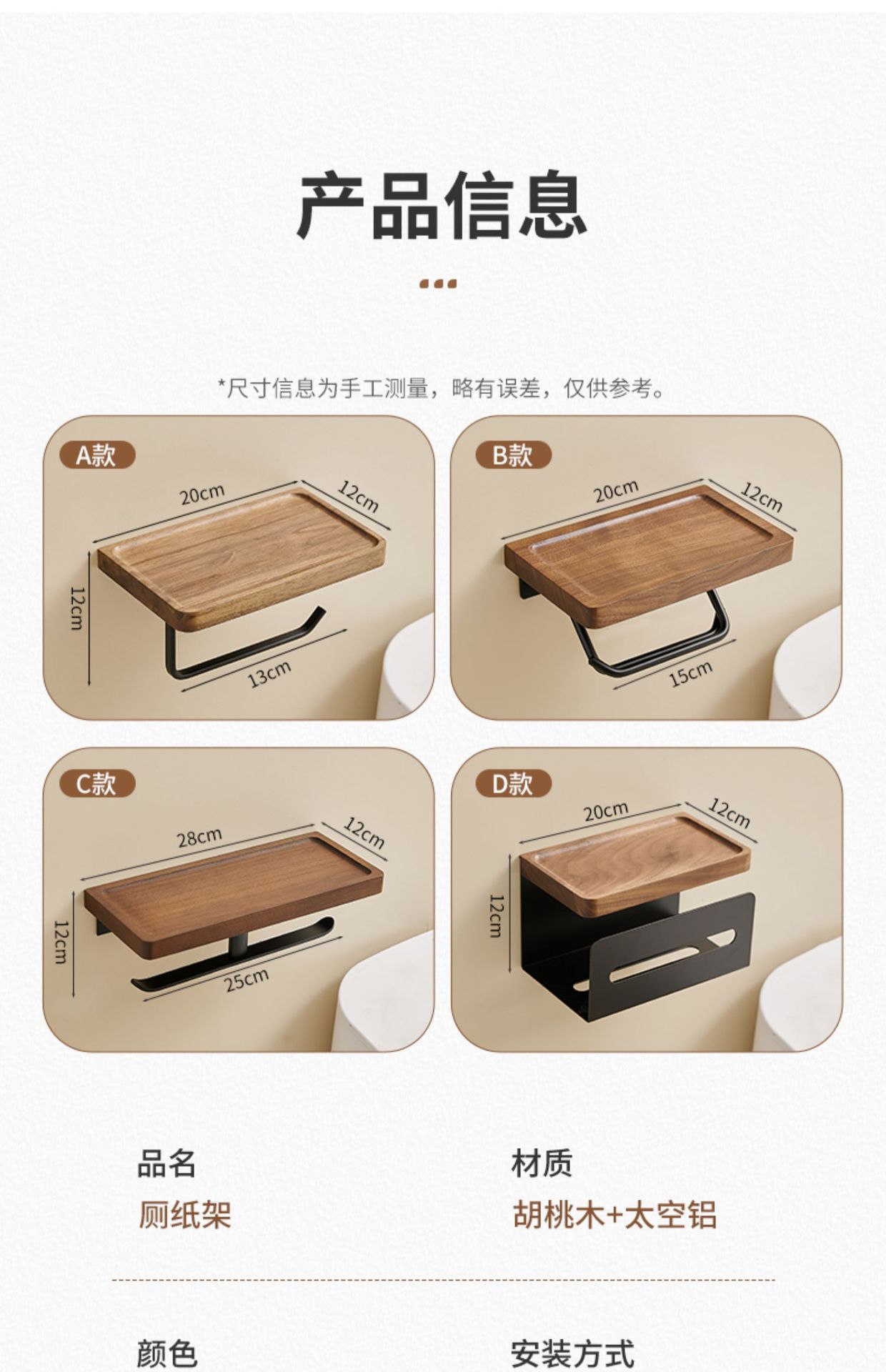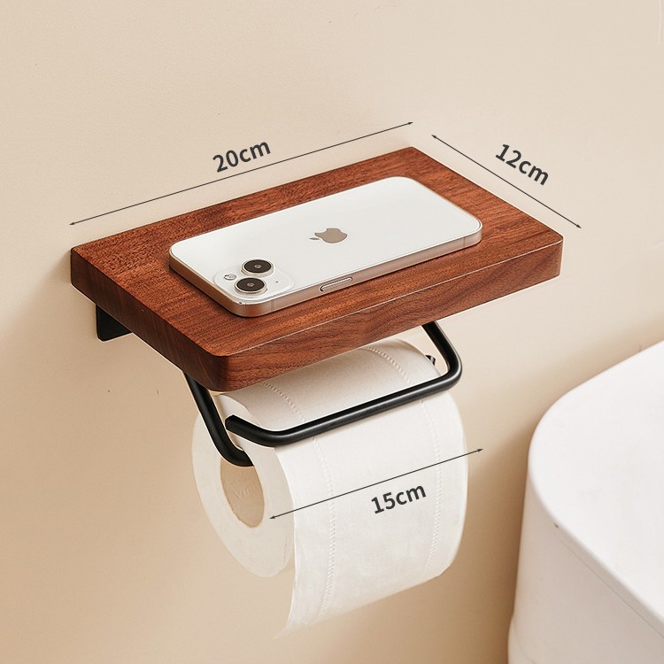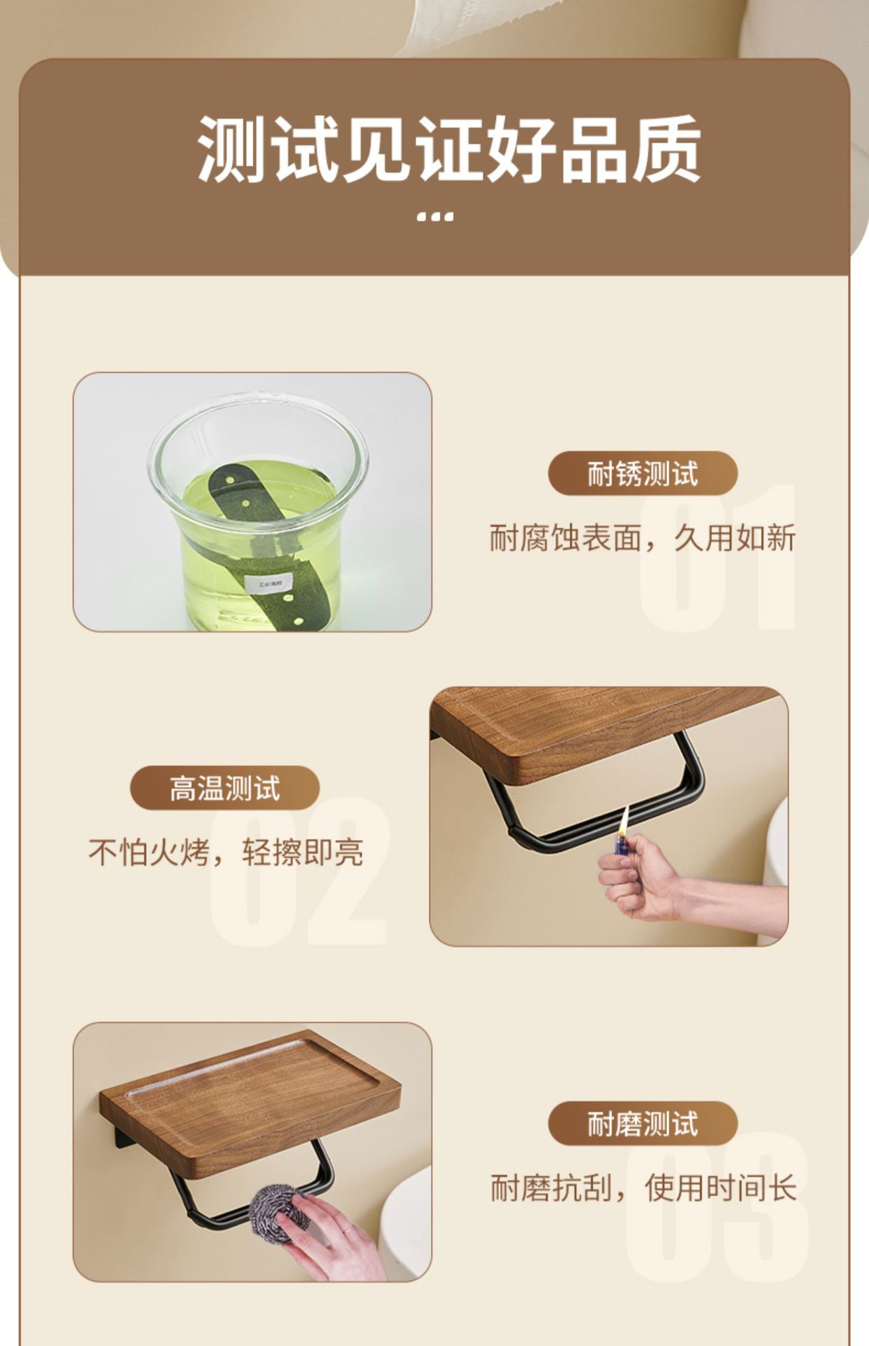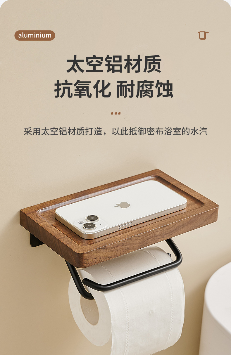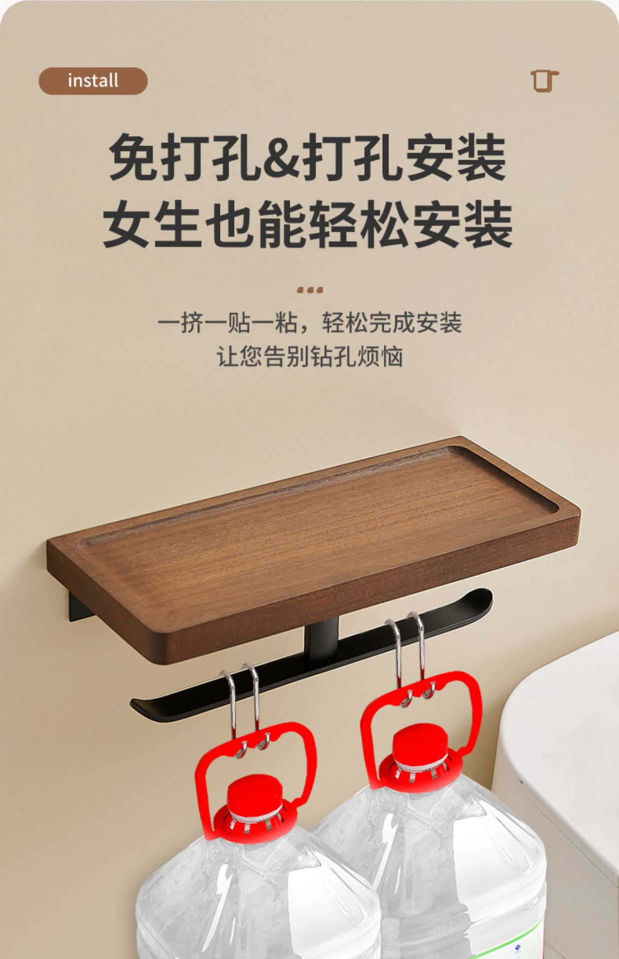 胡桃木轻奢厕所卷纸架卫生间挂卷纸巾架免打孔洗手间抽纸巾盒支架