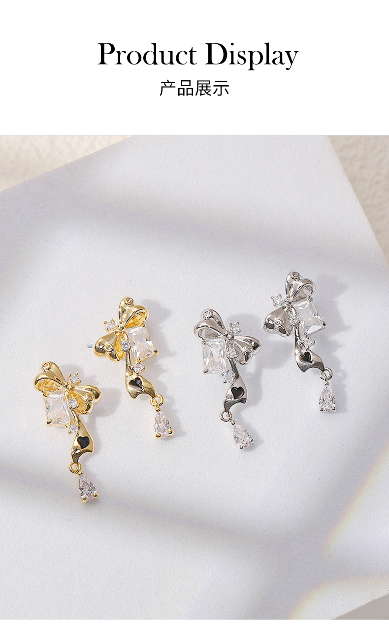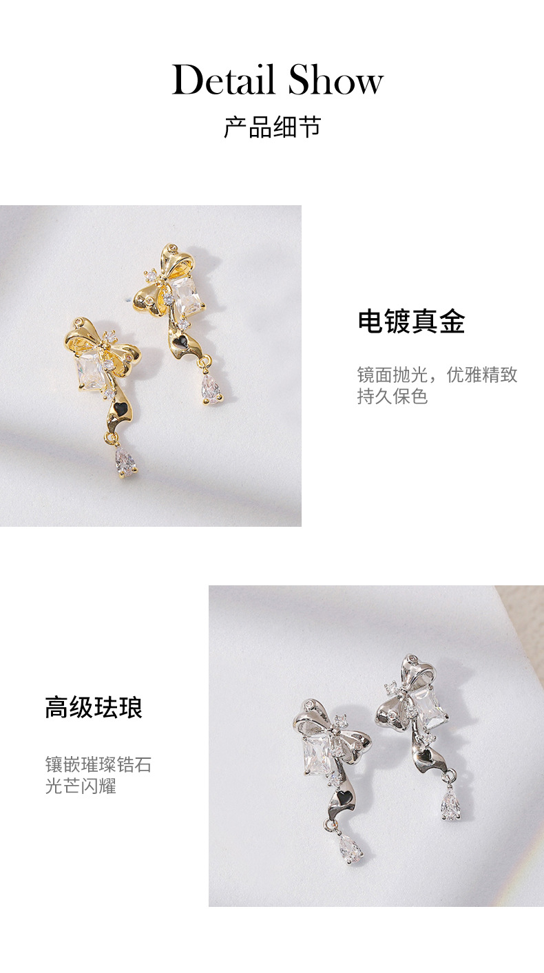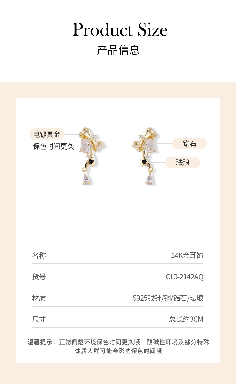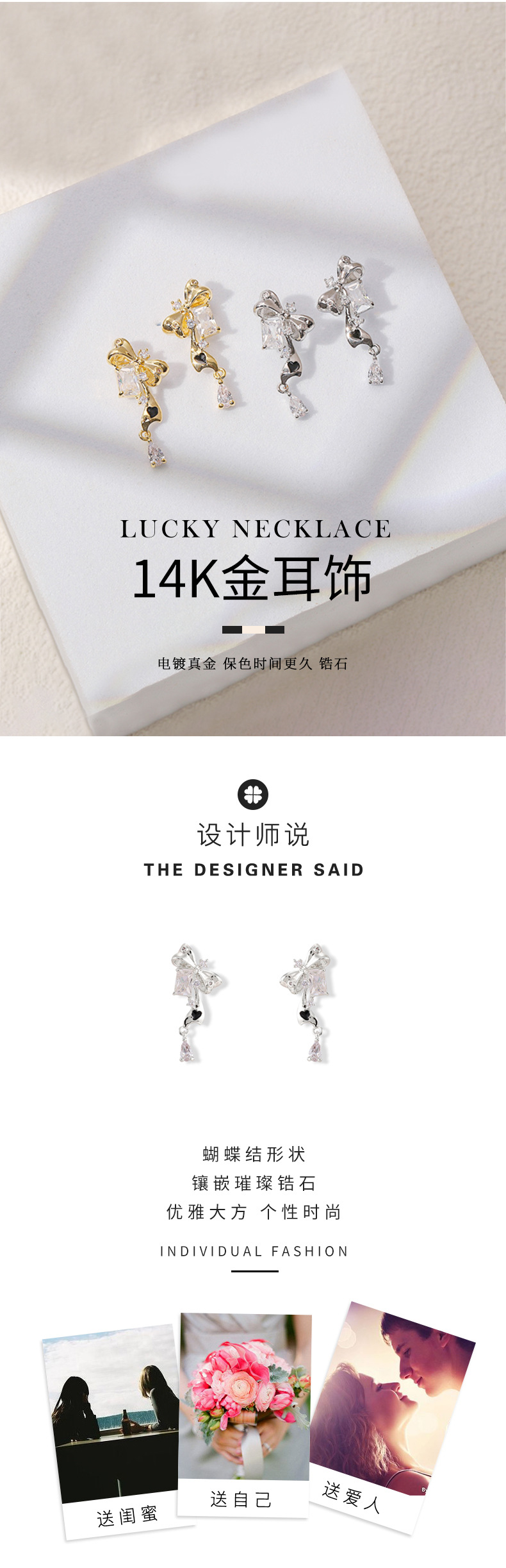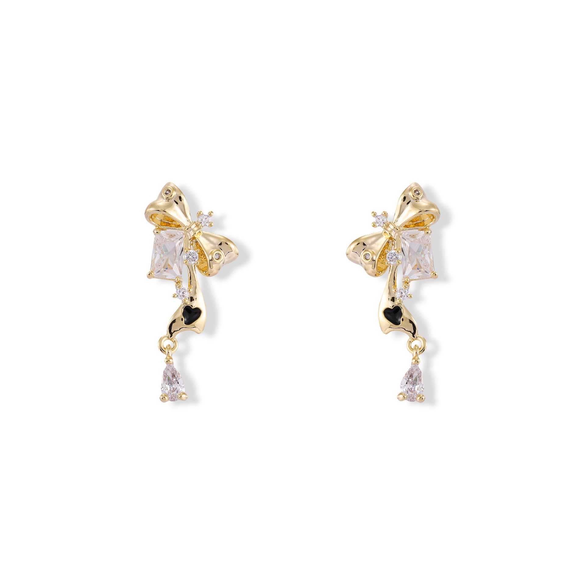 甜美蝴蝶结珐琅耳环女ins轻奢高级感爱心耳钉14K金耳饰潮厂家批发