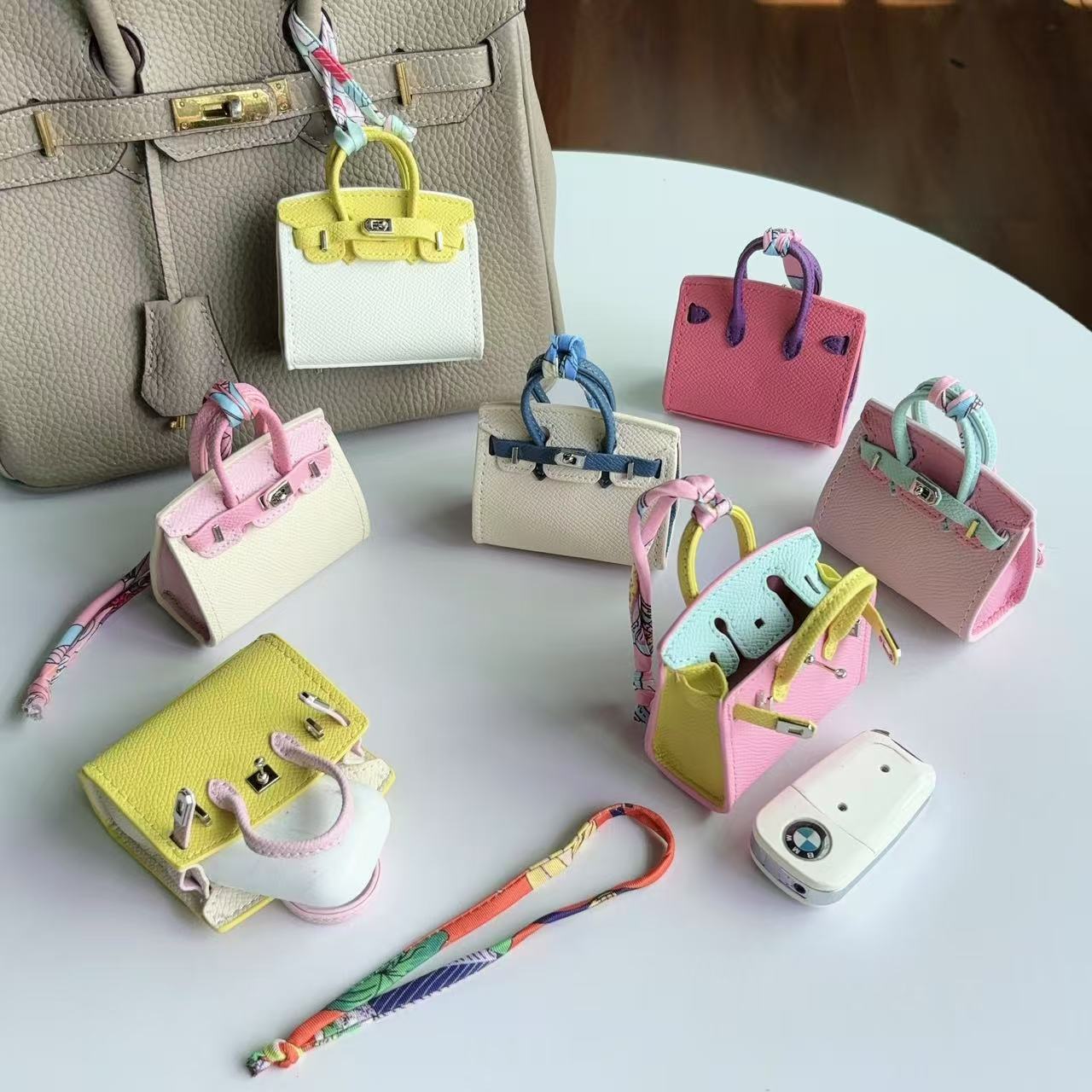 新款马卡龙配色糖果铂金包迷你定型铂金包手掌纹仿皮汽车挂件摆件
