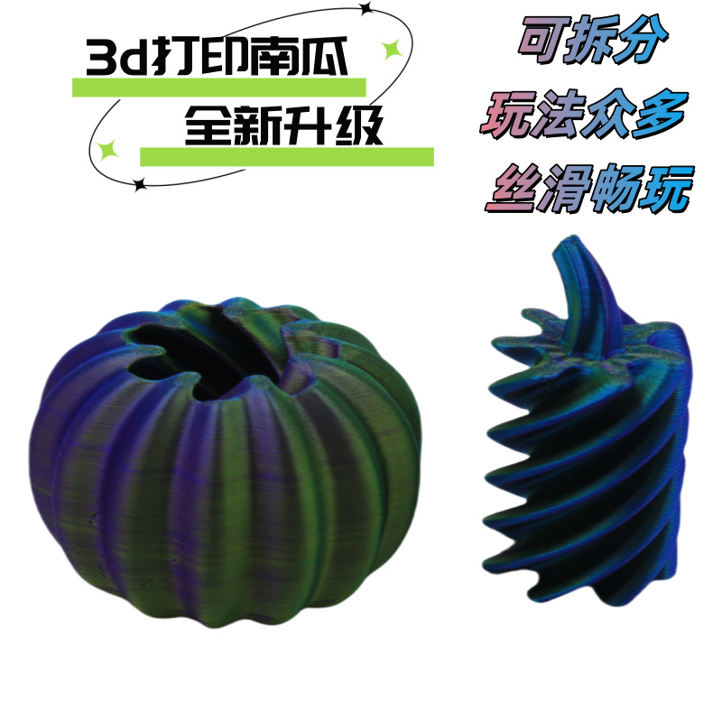 跨境3d打印解压螺旋南瓜推推乐潮玩解压神器螺旋立体南瓜解压玩具