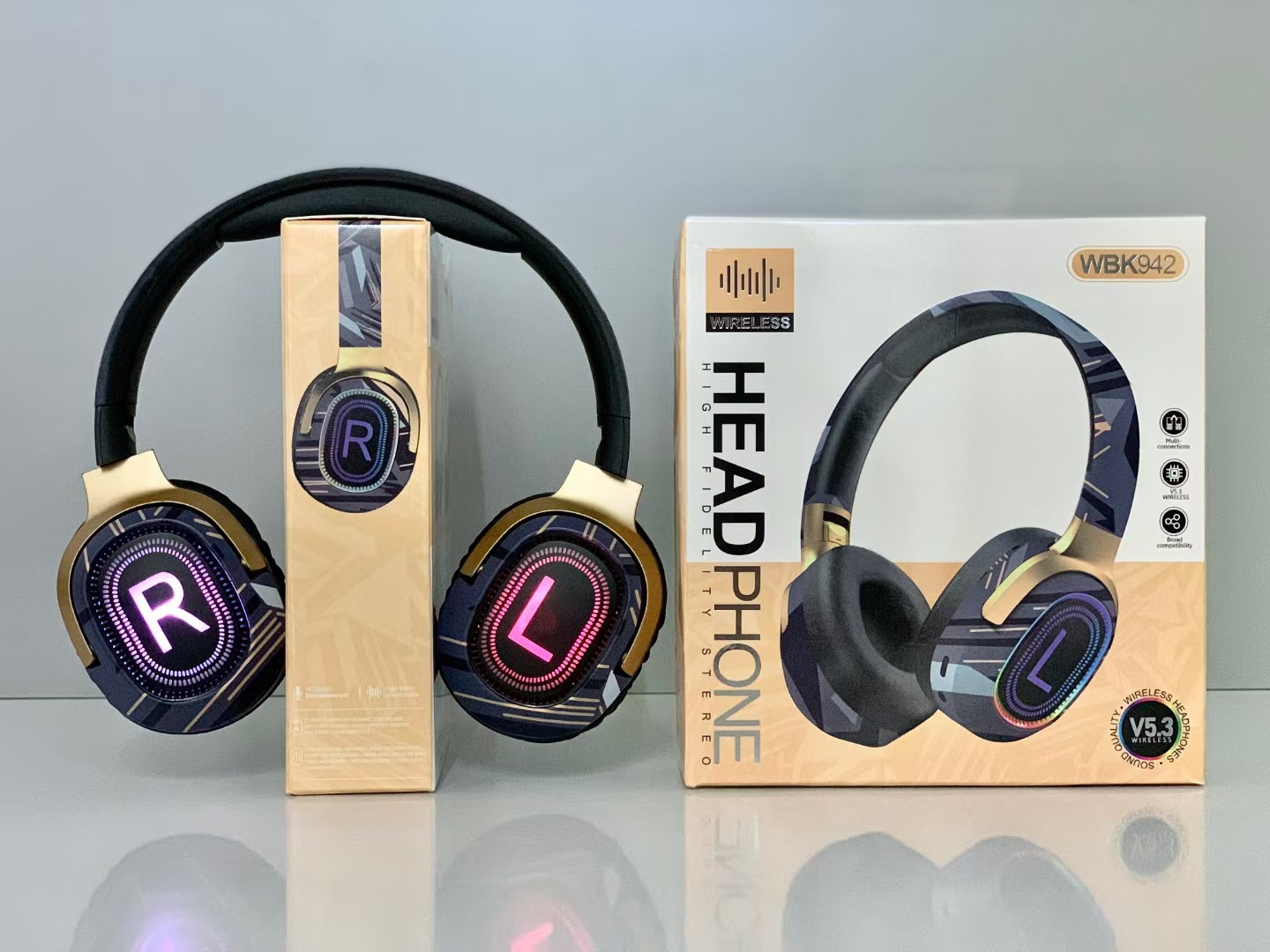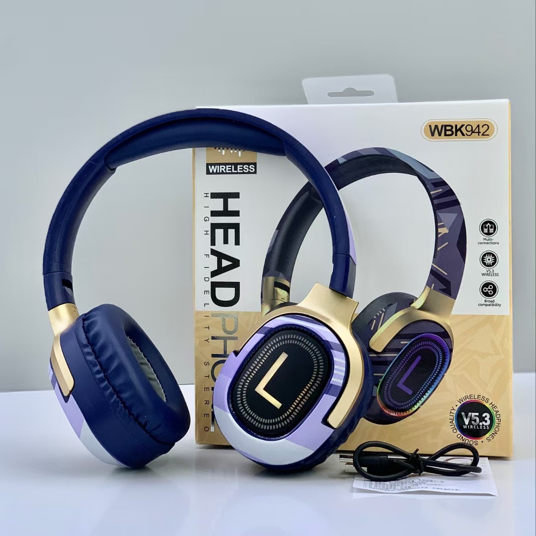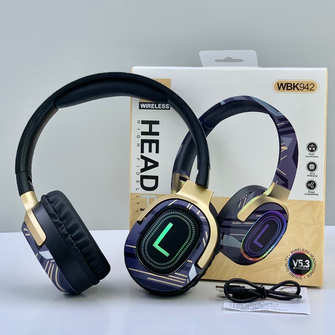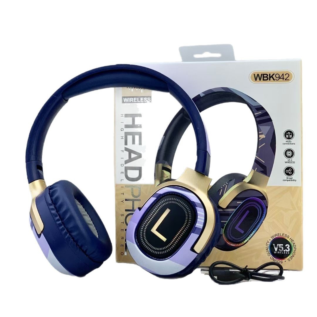 WBK-942 跨境涂鸦迷彩绘发光头戴式蓝牙折叠耳机插卡无线运动通用