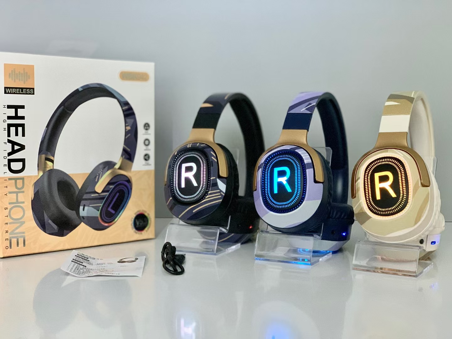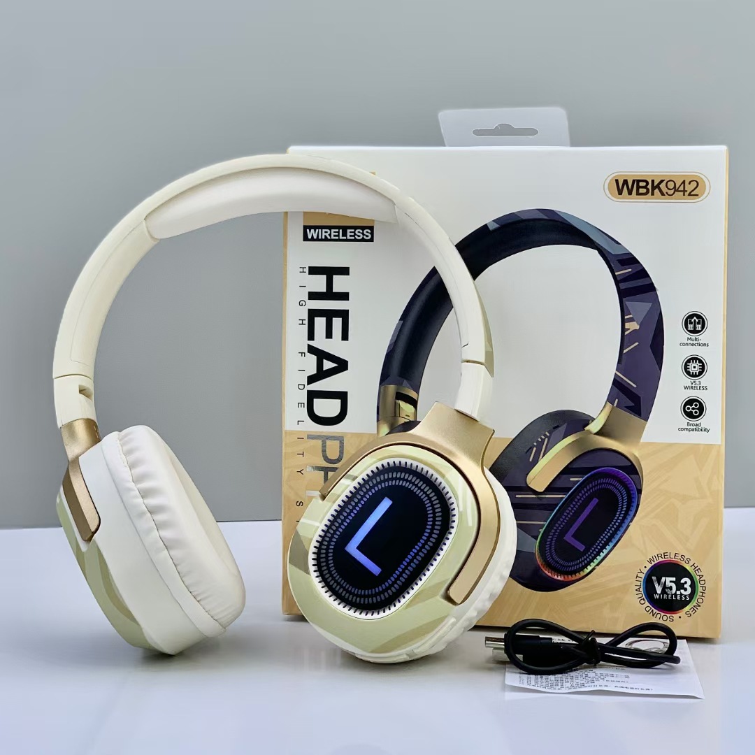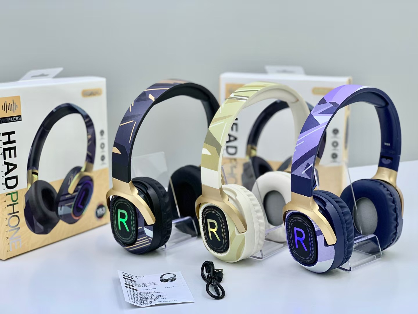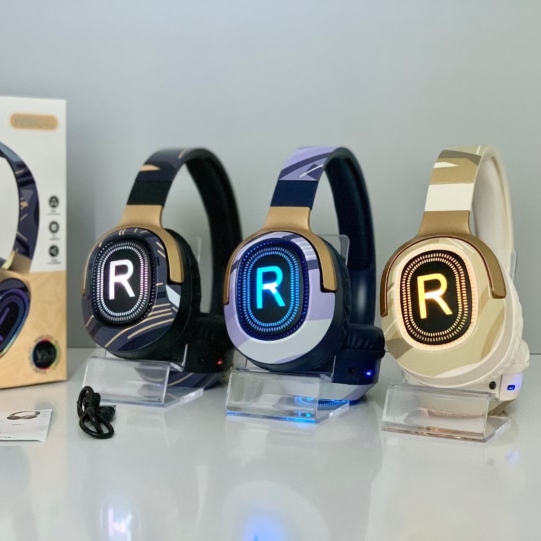 WBK-942 跨境涂鸦迷彩绘发光头戴式蓝牙折叠耳机插卡无线运动通用
