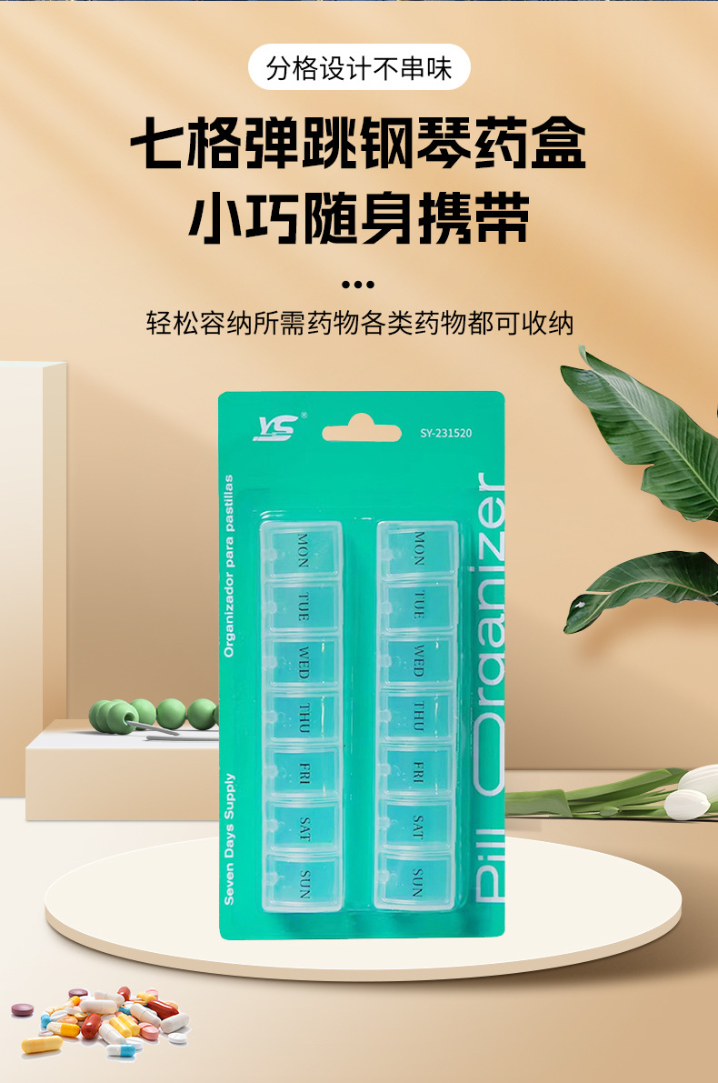 便携式七格单排弹跳钢琴药盒随身密封药片切割分装药盒收纳分药器