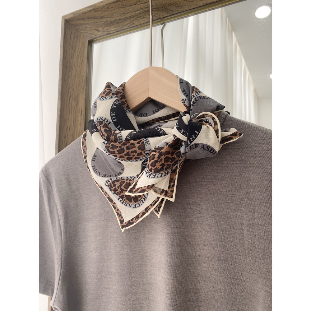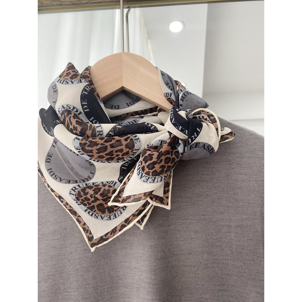 桑蚕丝乔其中方巾真丝丝巾春秋丝绸围巾装饰领巾护颈经典披肩豹纹