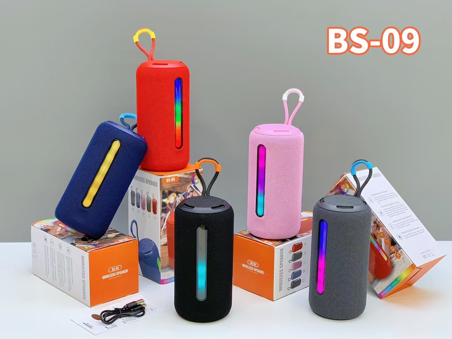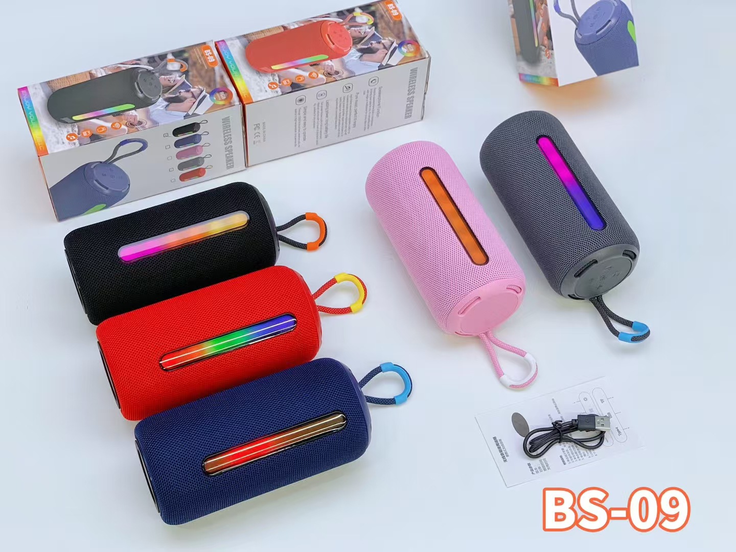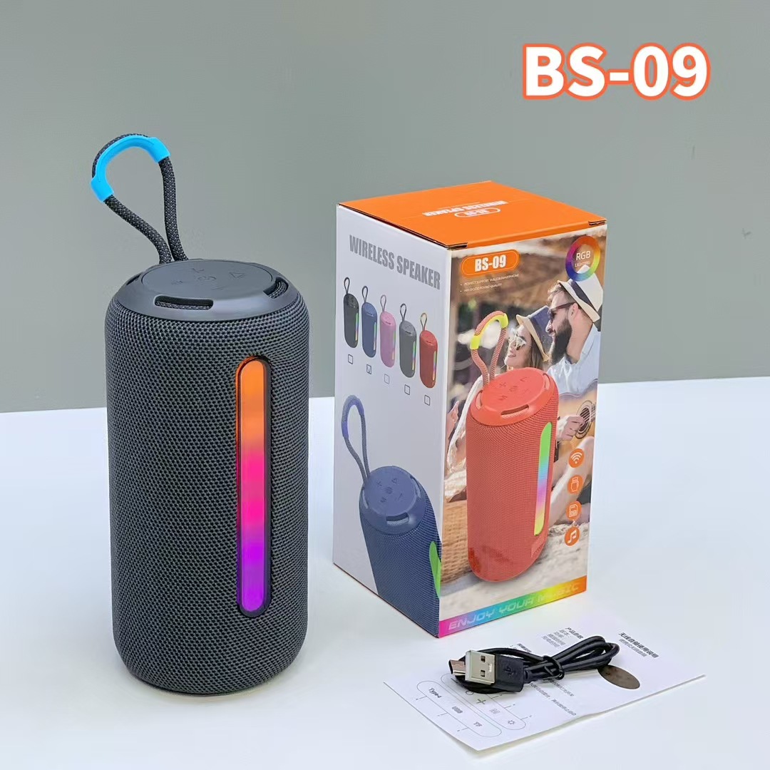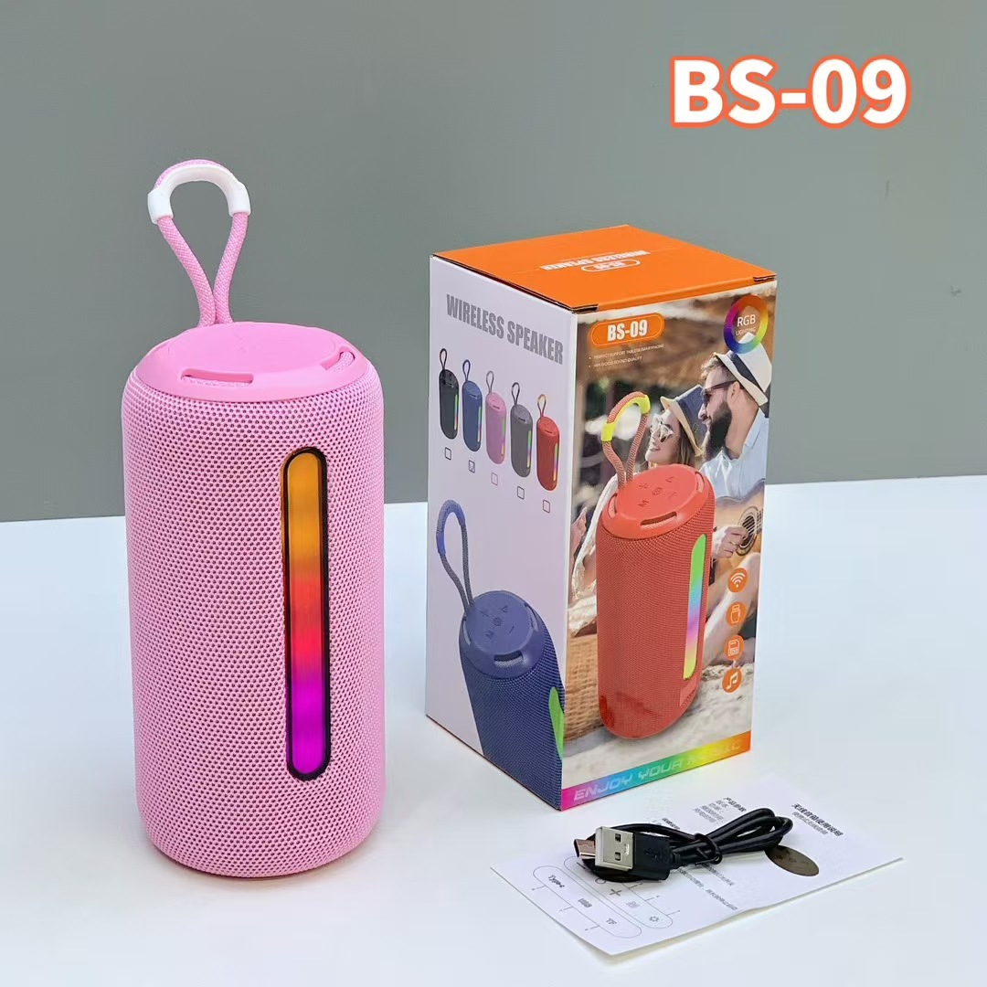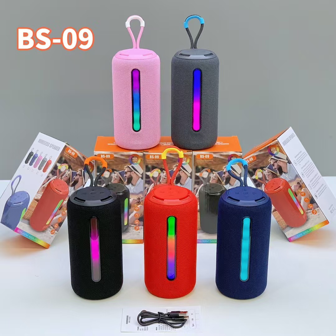 新款BS-09手提RGB炫彩灯蓝牙音响布网双喇叭低音炮便携式礼品音箱