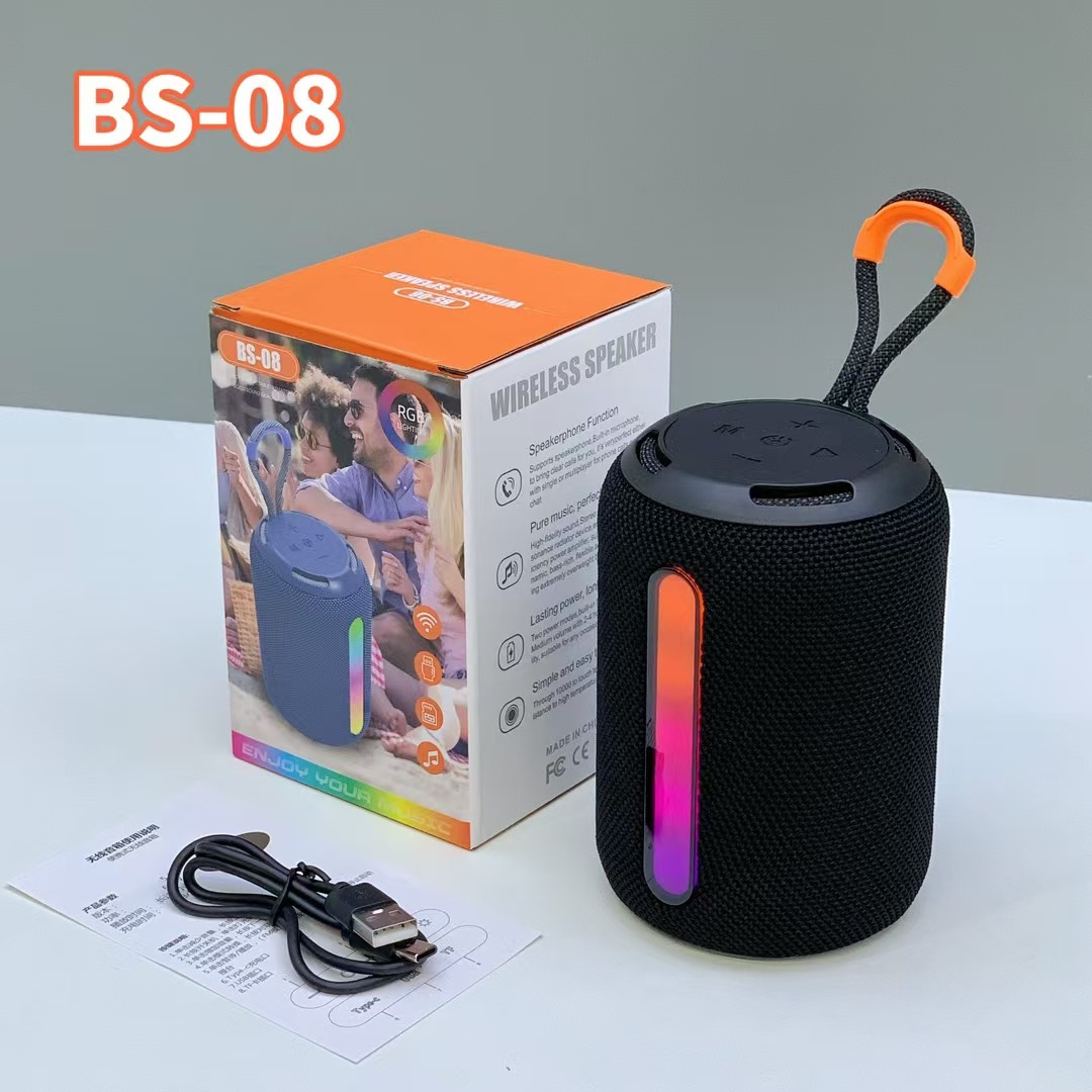 BS-08 新款外贸炫彩灯蓝牙音箱户外手提低音炮便携式迷你插卡音响
