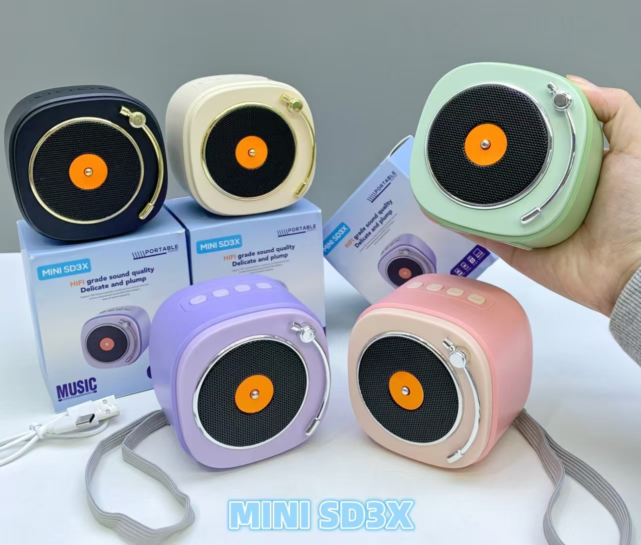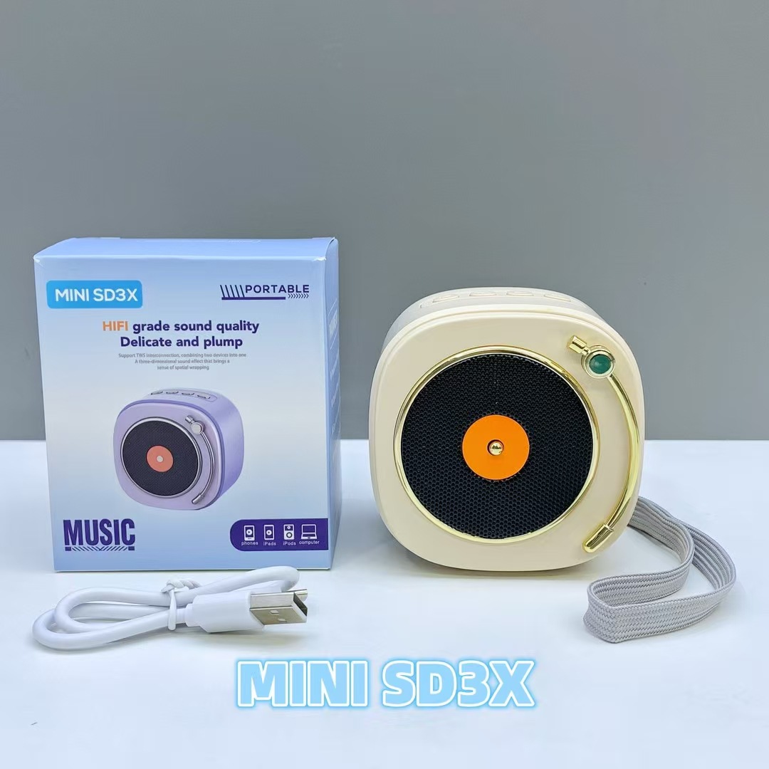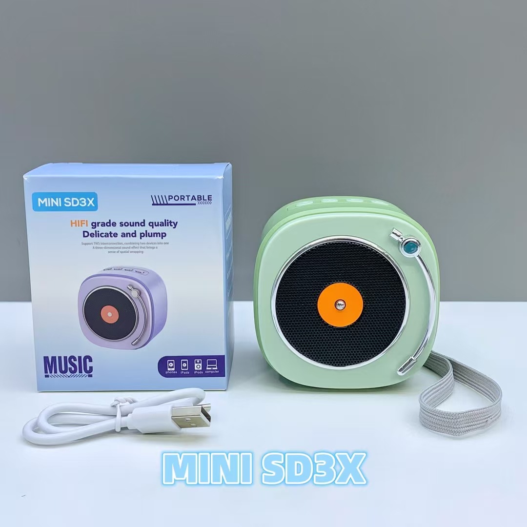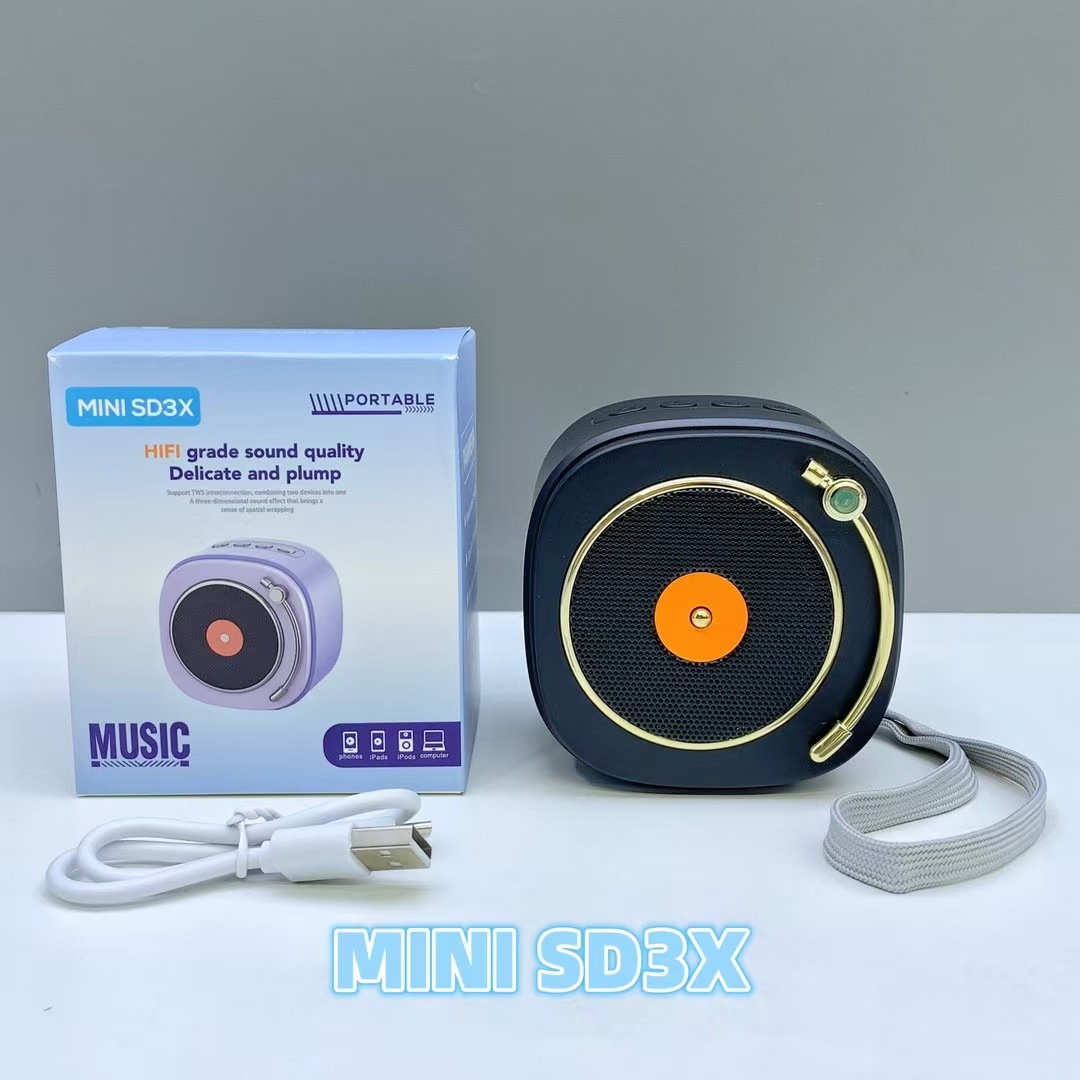 SD3X 跨境新款无线蓝牙音箱迷你唱片机型手提户外低音炮礼品音响