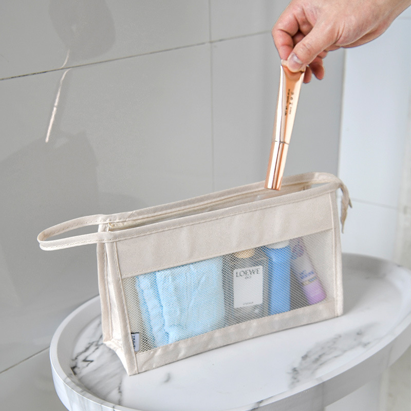 义乌厂家批发韩版旅行化妆包斜纹网格洗漱包便携式悬挂收纳包