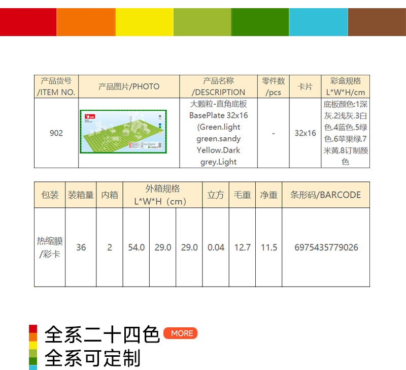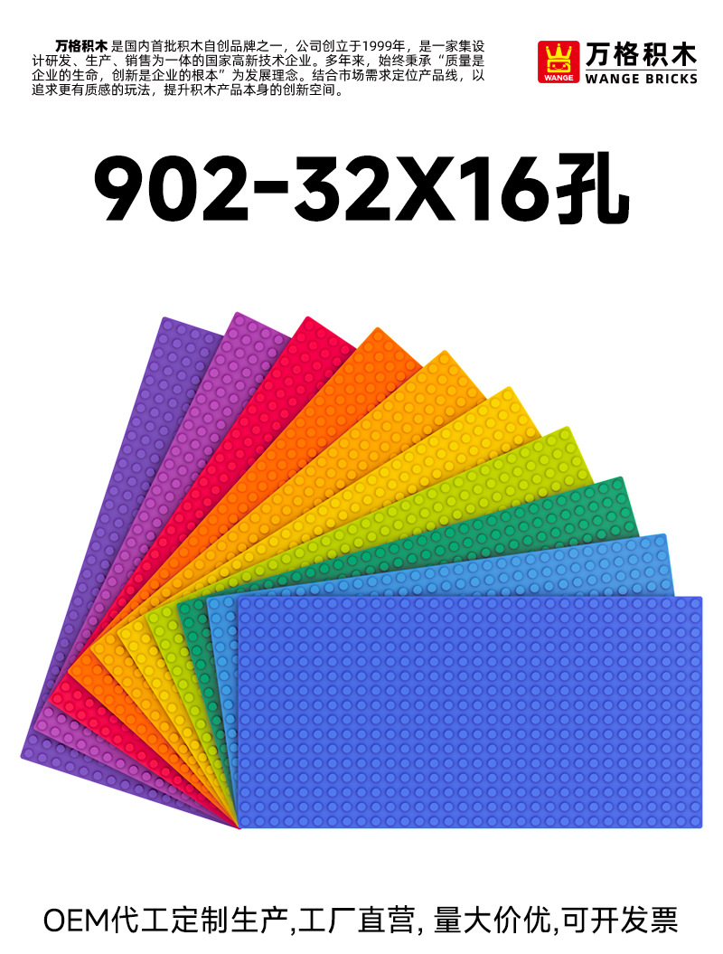 万格中国拼搭积木墙拼装积木桌玩具儿童积木大颗粒2-6岁底板32*16
