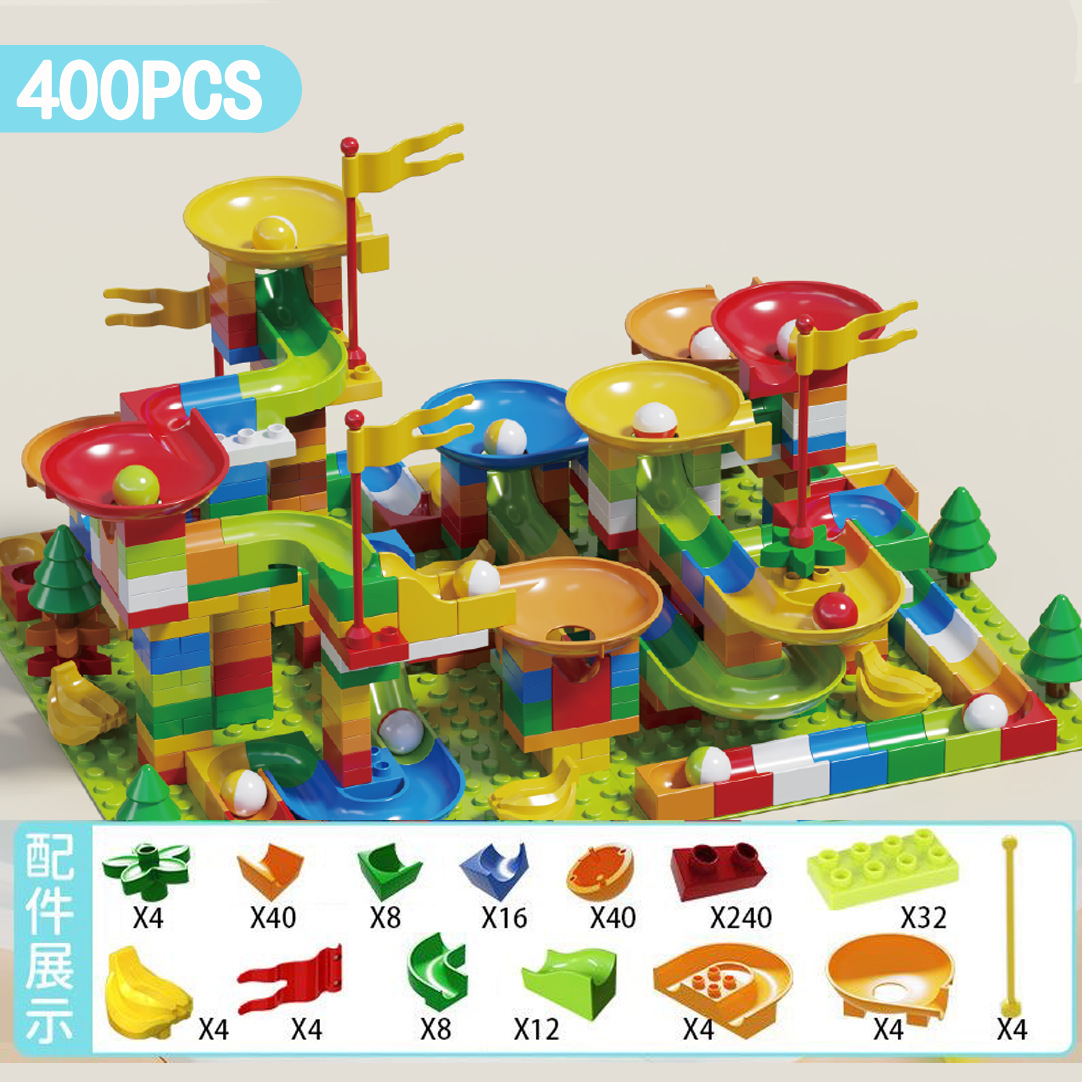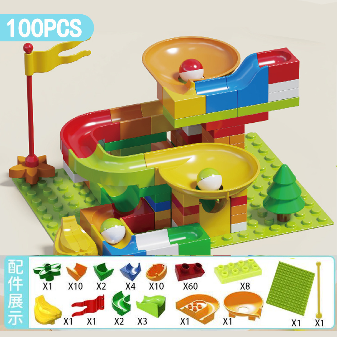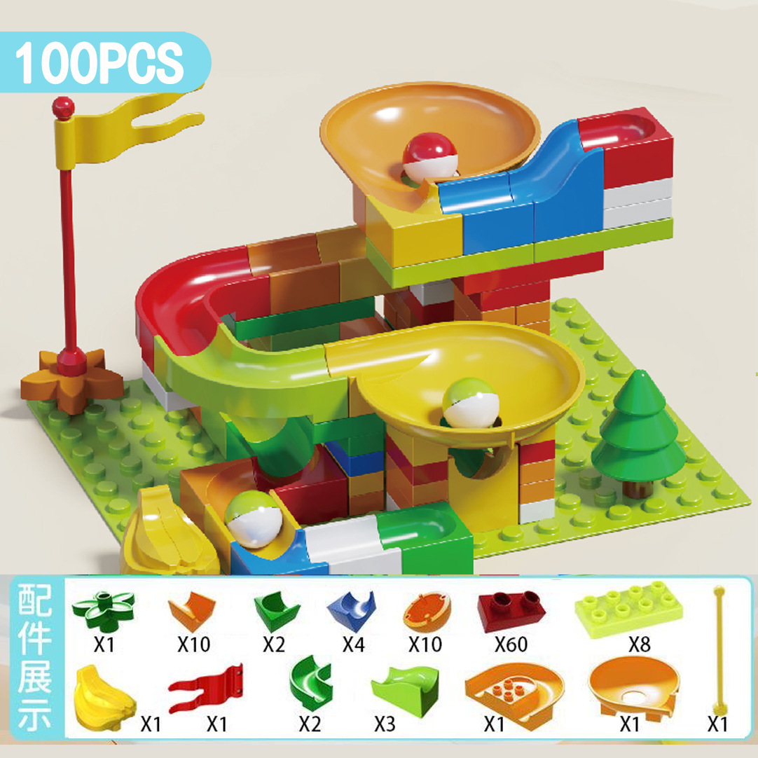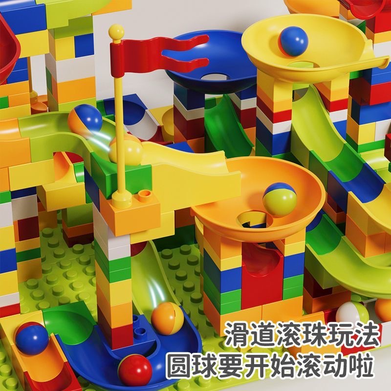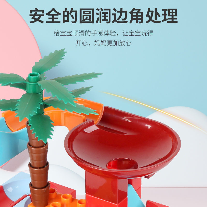 兼容乐高儿童大颗粒滑道积木桌男女孩滚珠轨道场景拼装插早教玩具