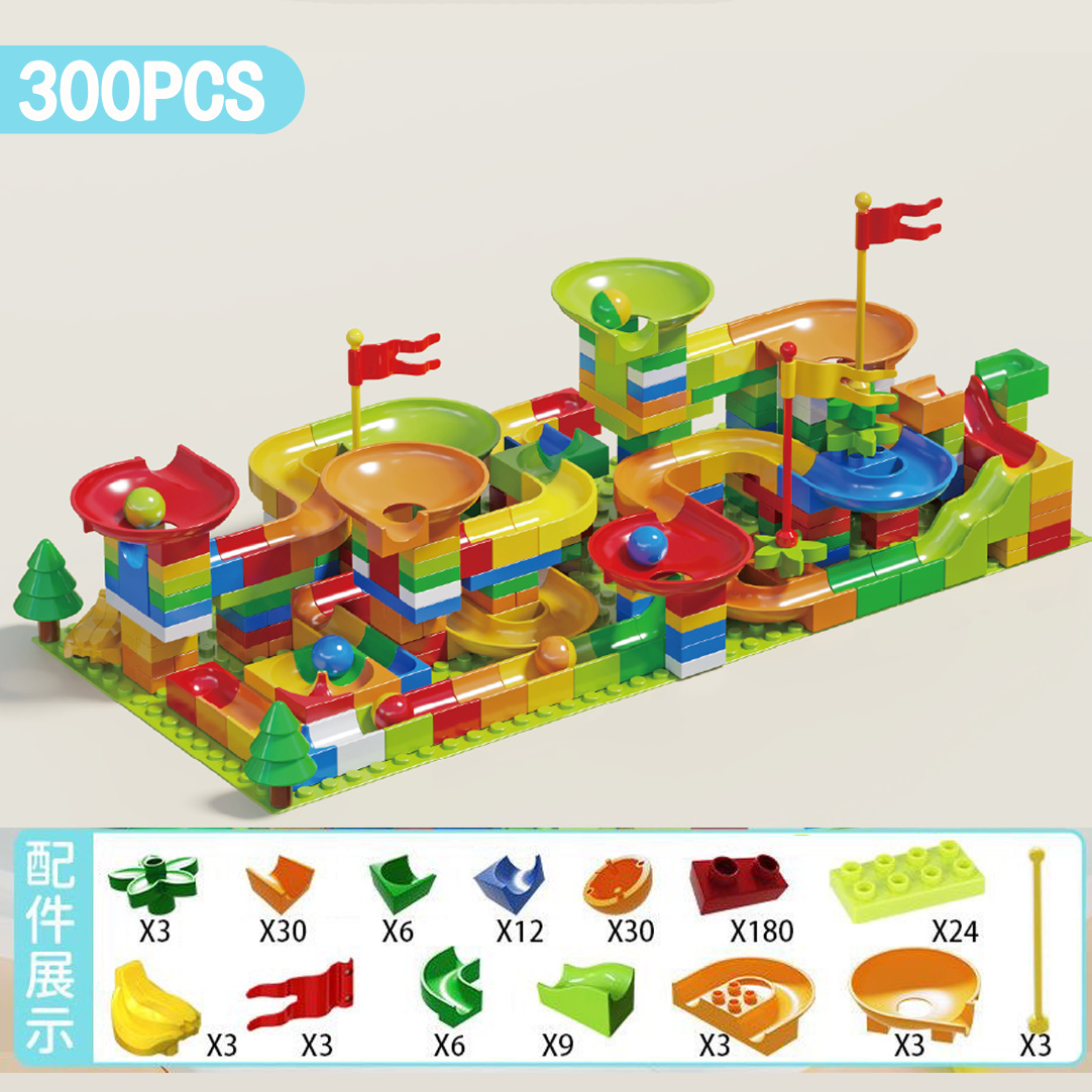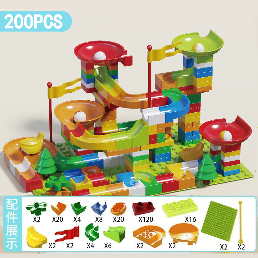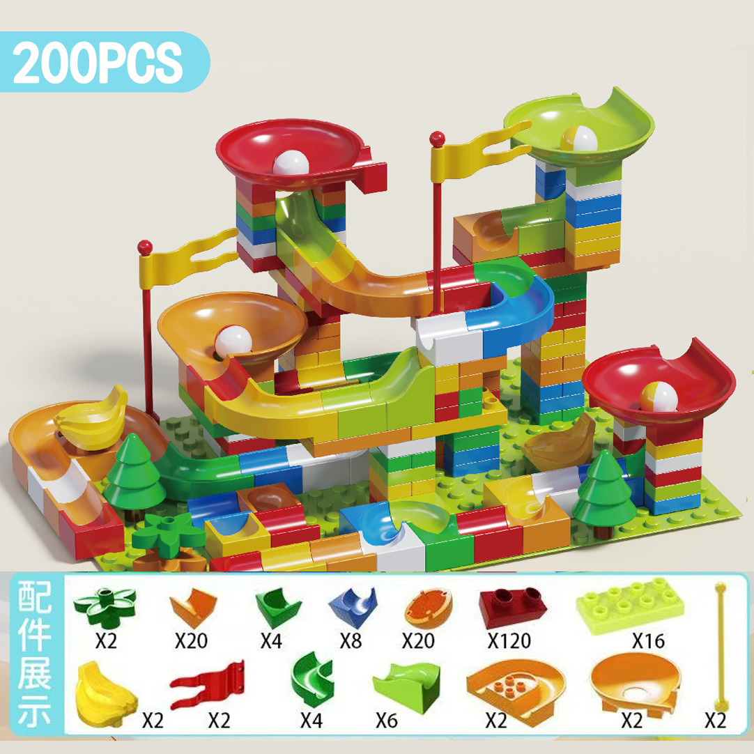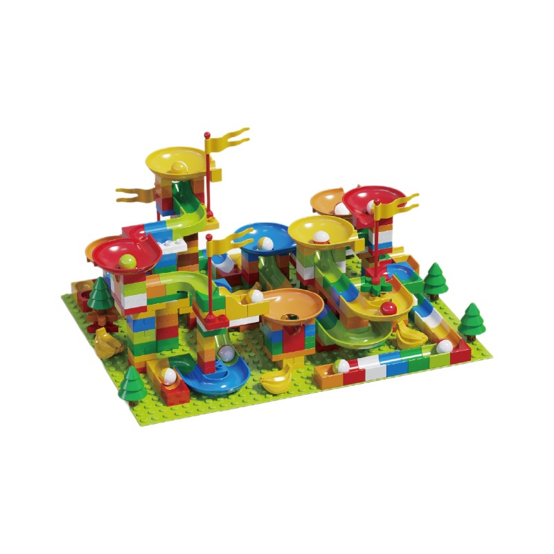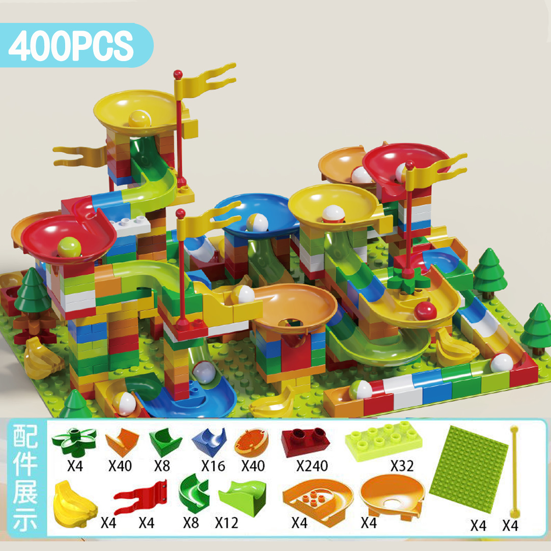 兼容乐高儿童大颗粒滑道积木桌男女孩滚珠轨道场景拼装插早教玩具