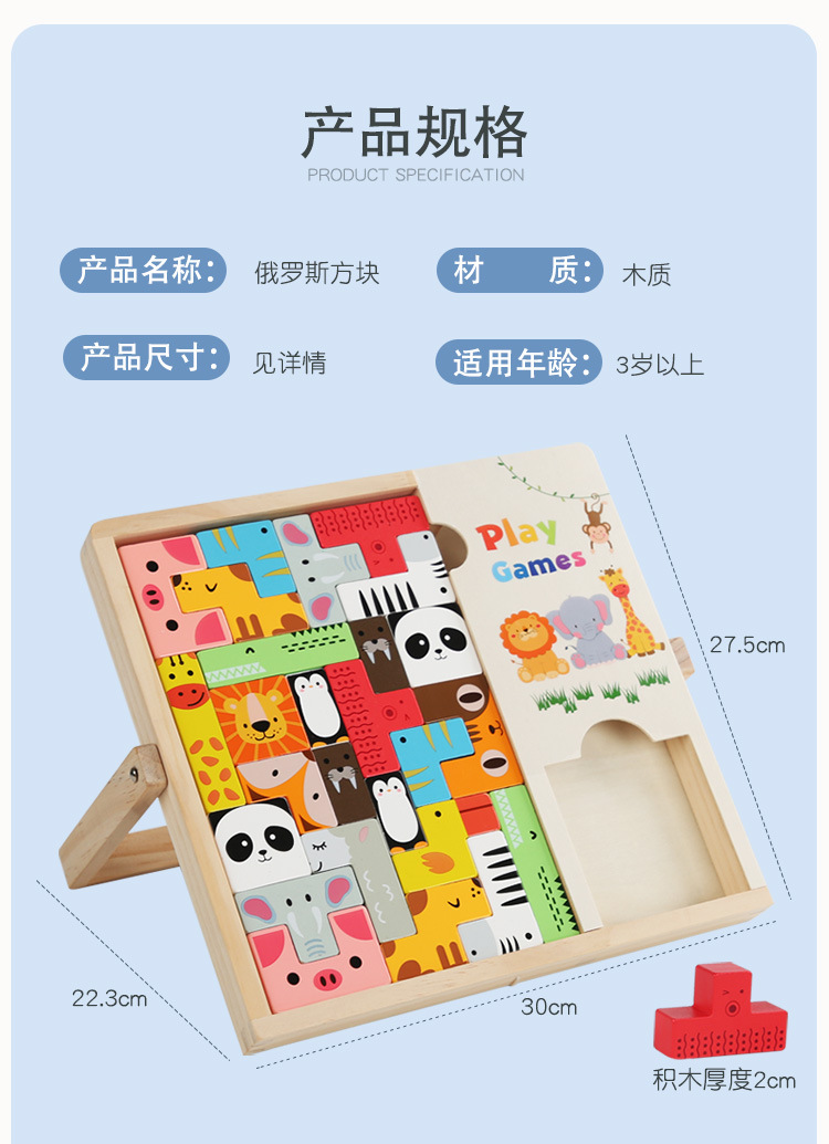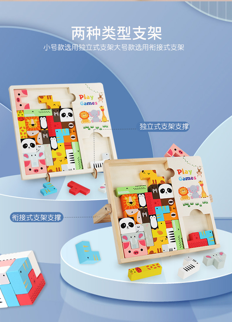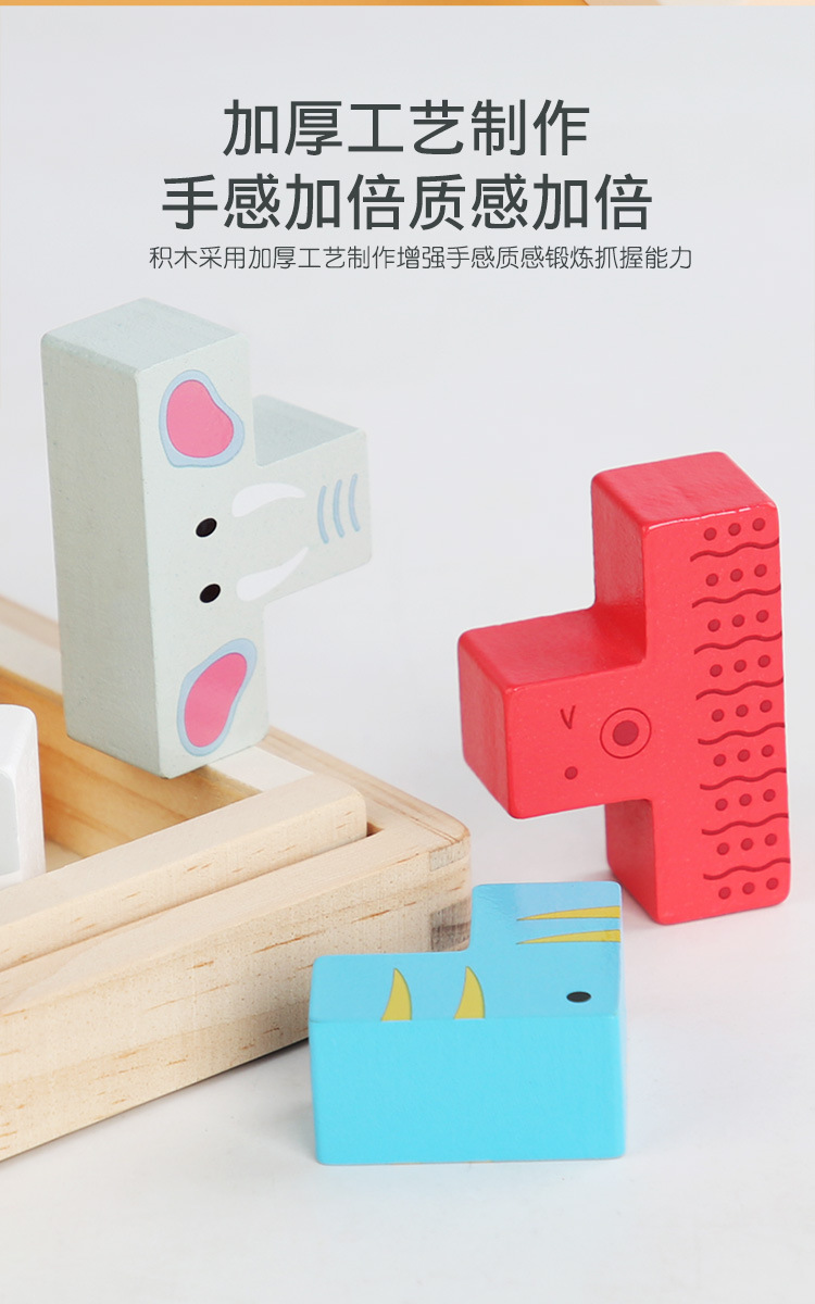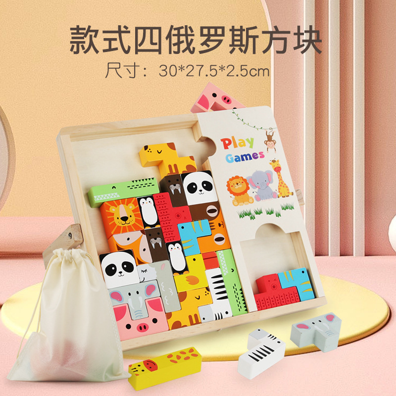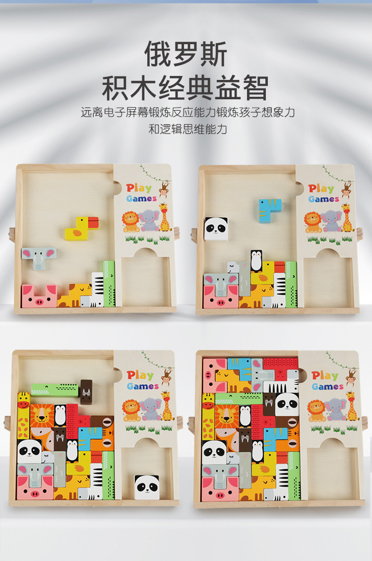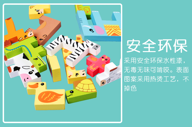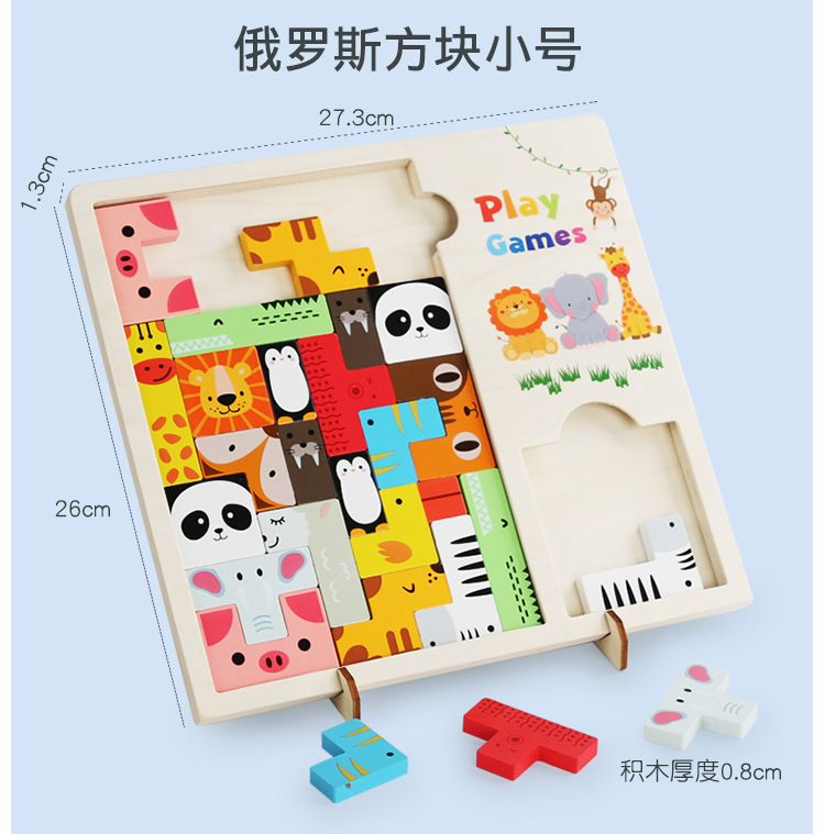 动物印刷俄罗斯方块积木大尺寸儿童益智力立体拼装大颗粒积木玩具