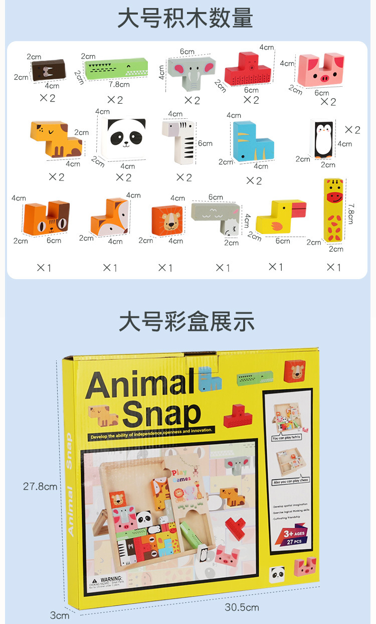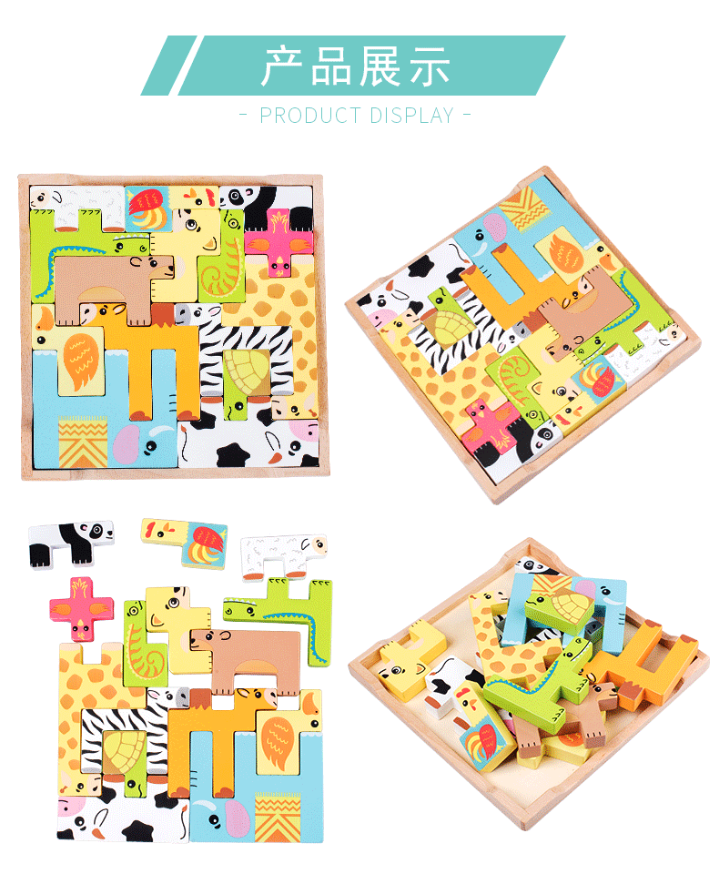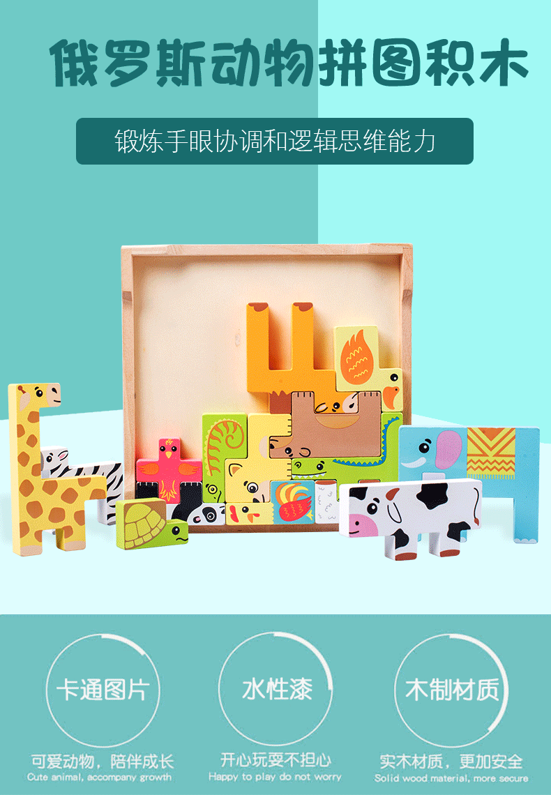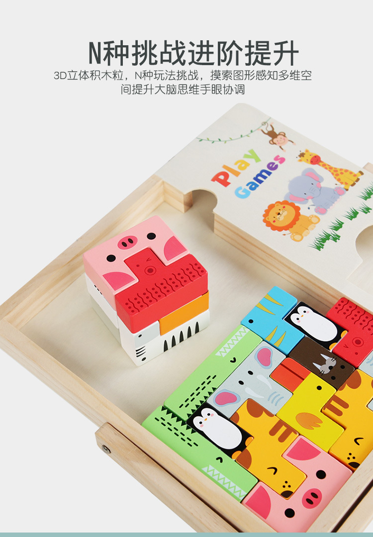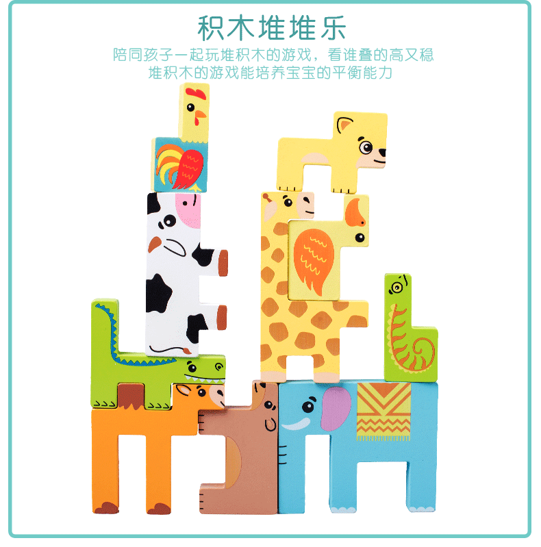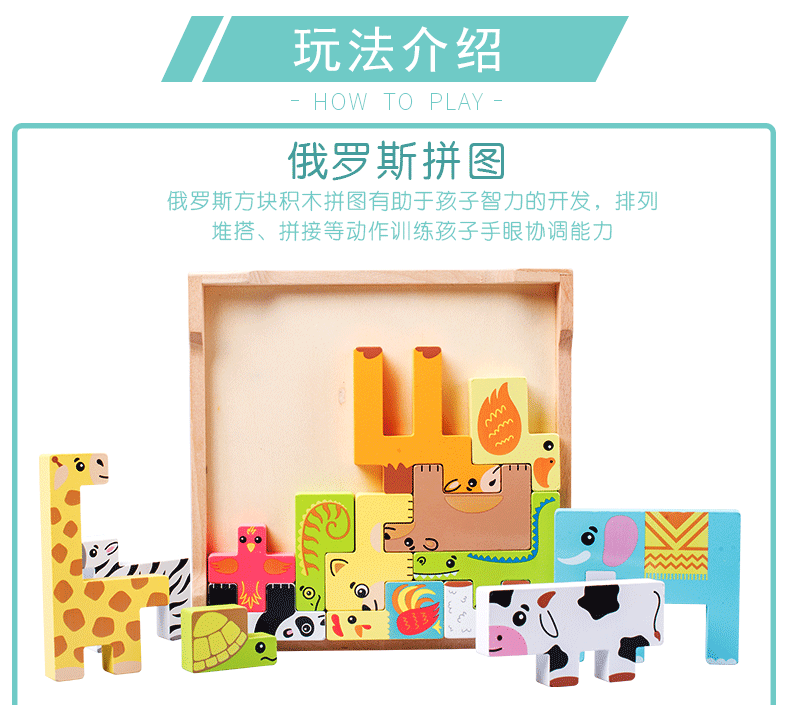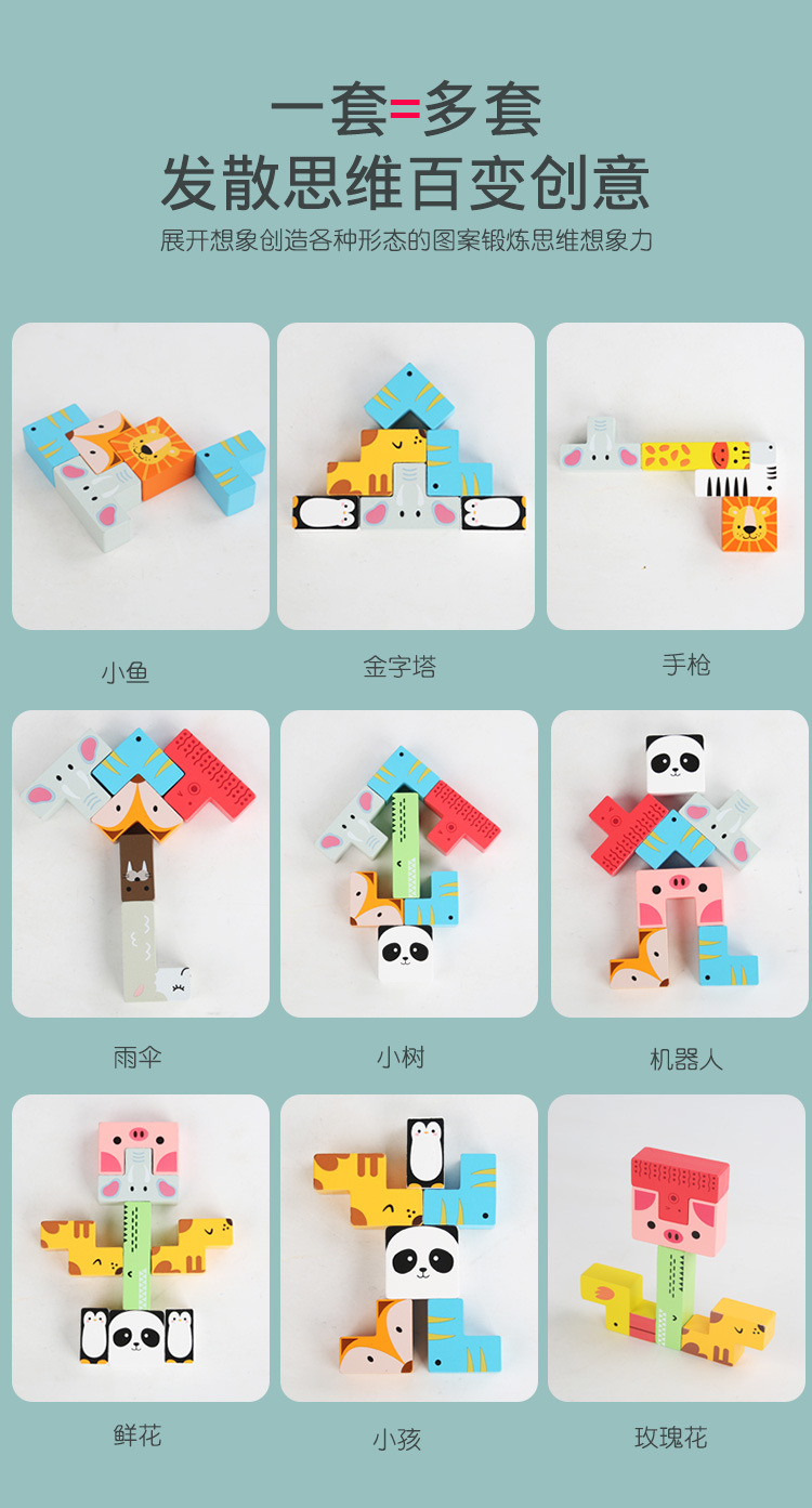 动物印刷俄罗斯方块积木大尺寸儿童益智力立体拼装大颗粒积木玩具