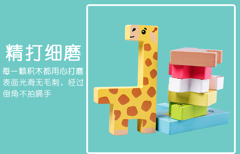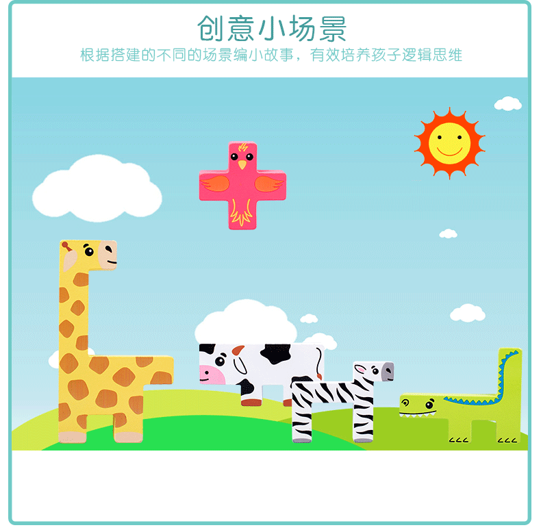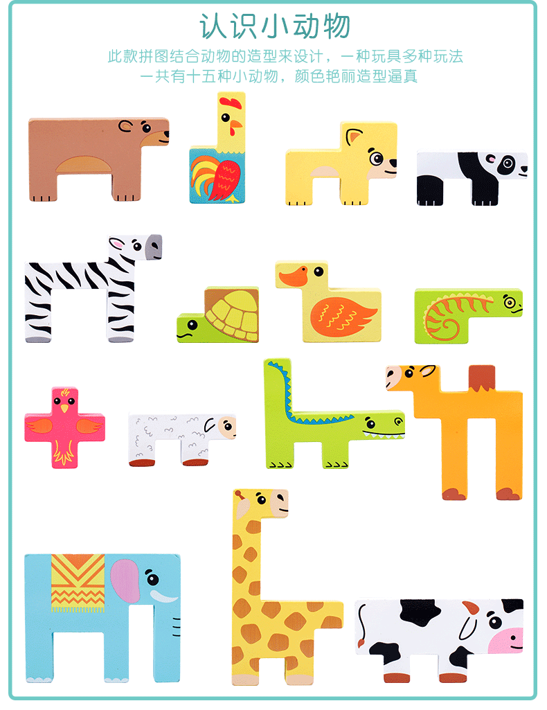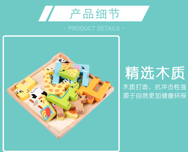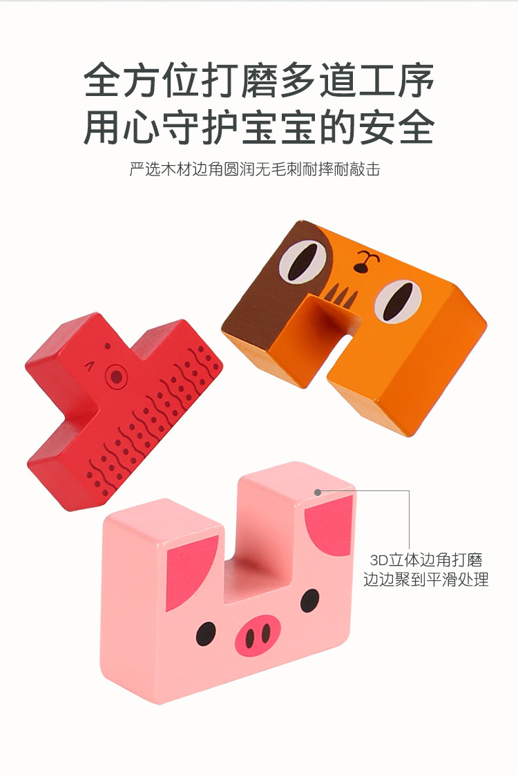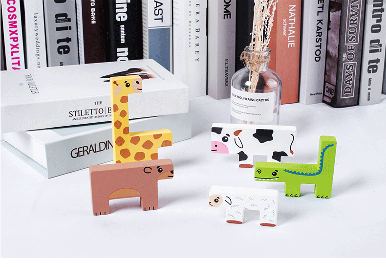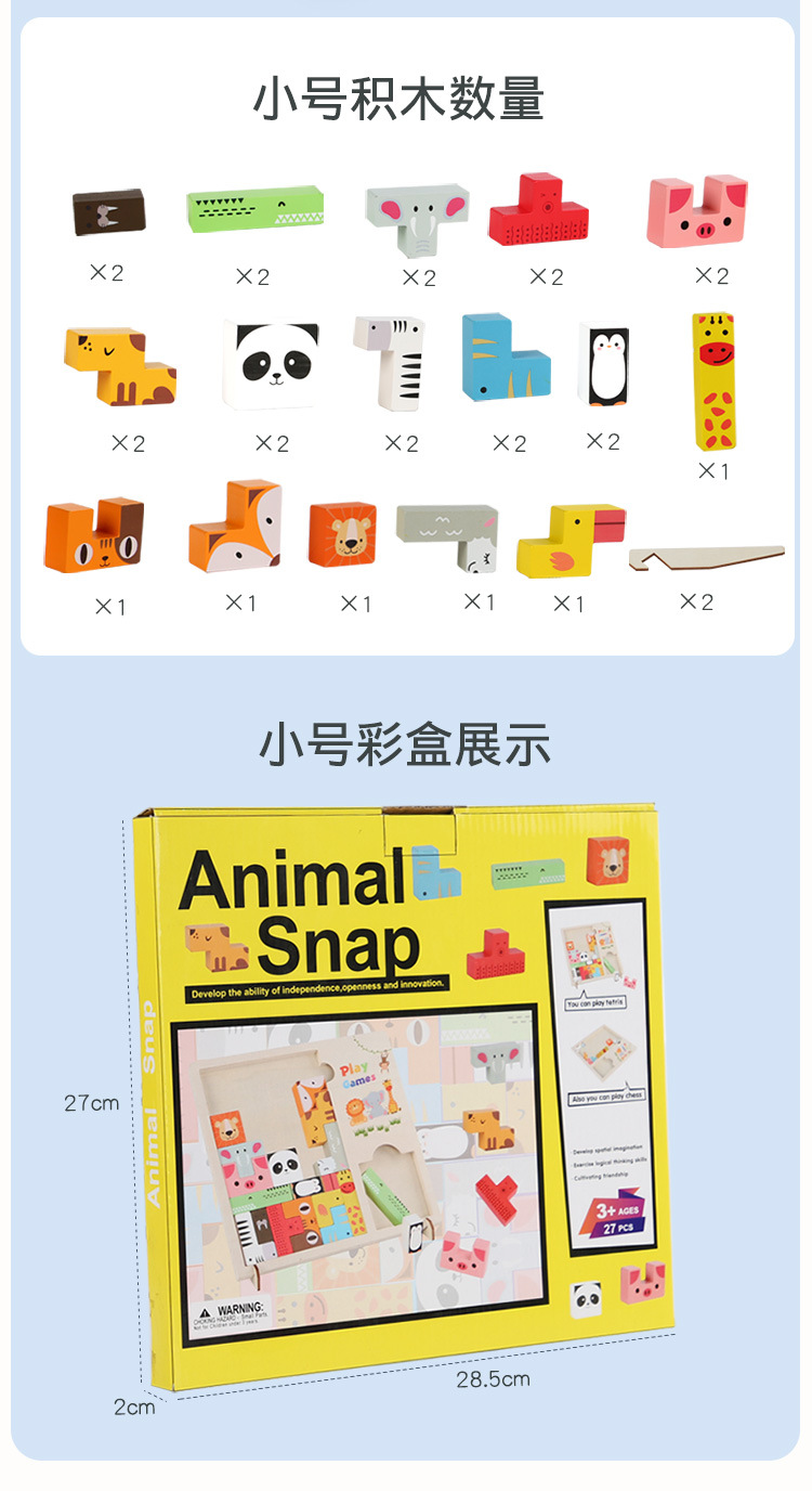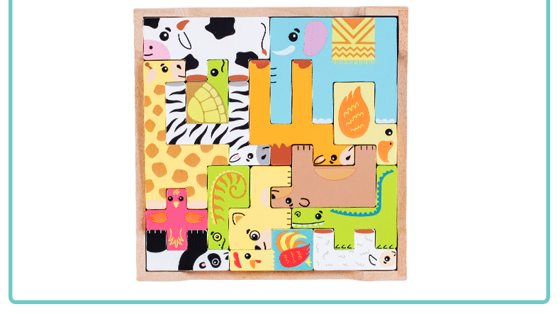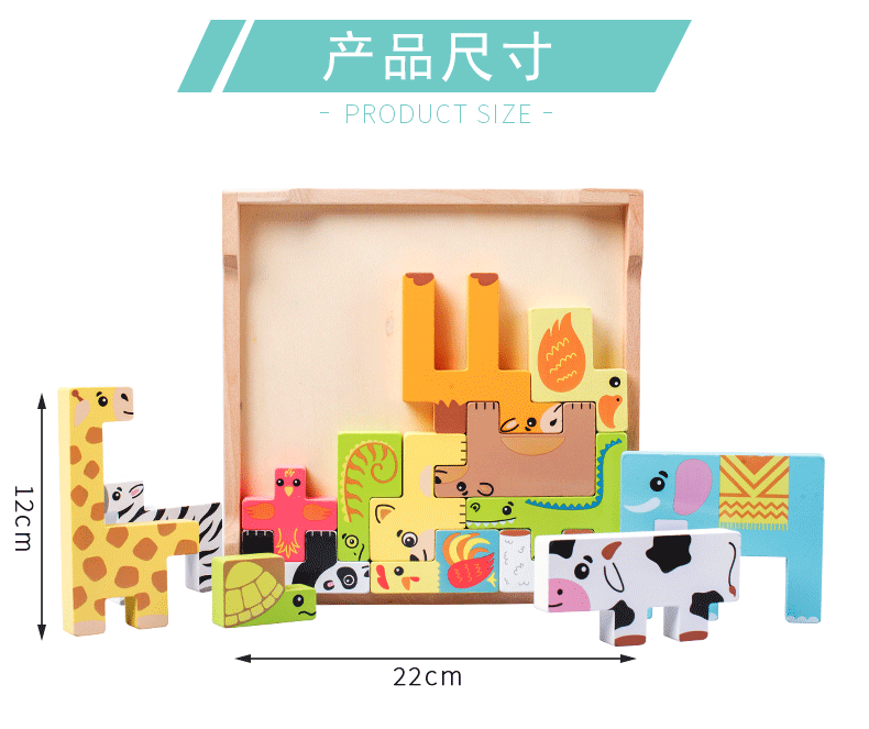 动物印刷俄罗斯方块积木大尺寸儿童益智力立体拼装大颗粒积木玩具
