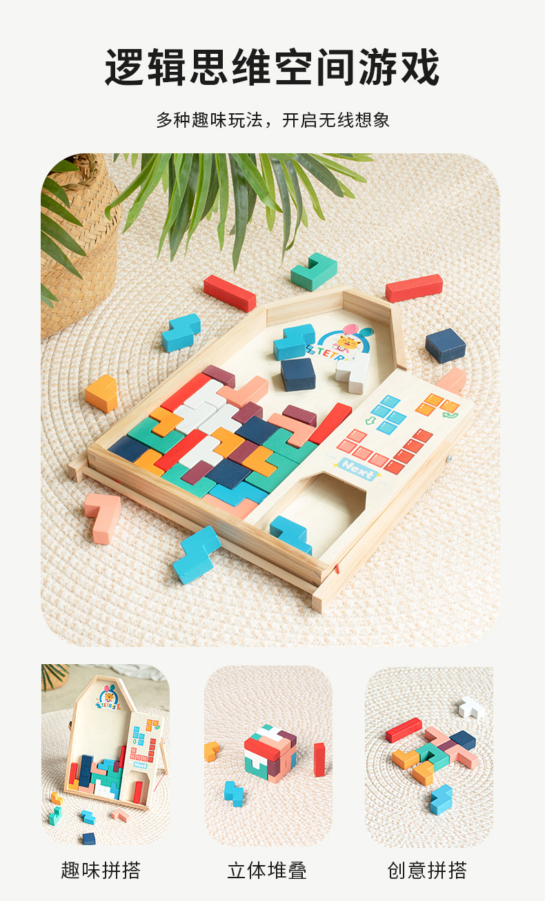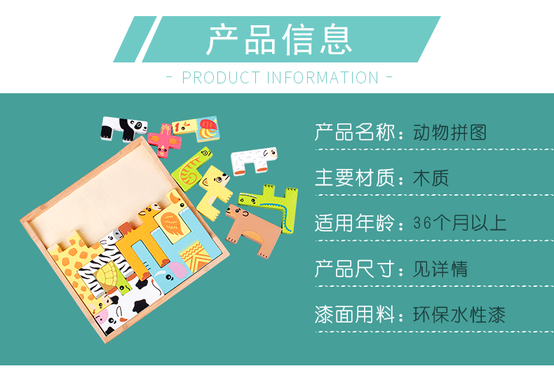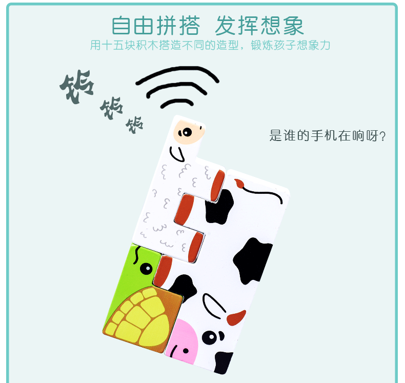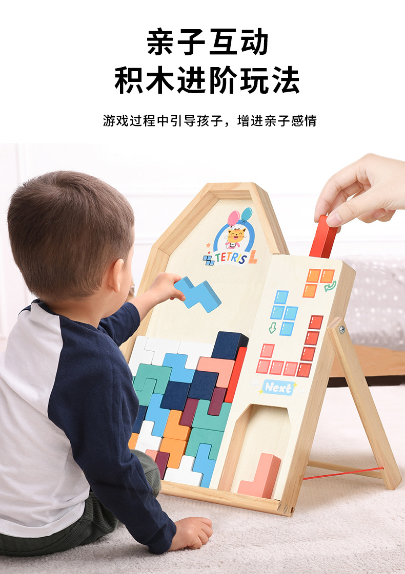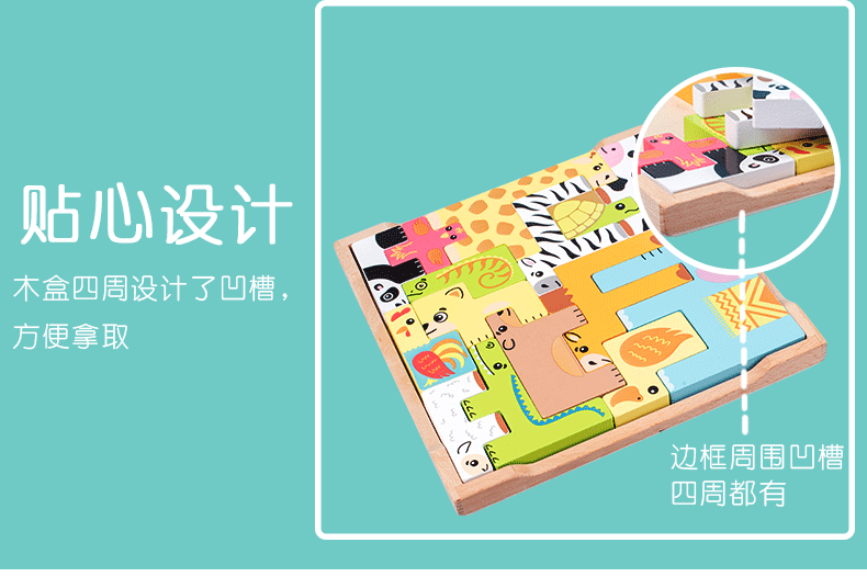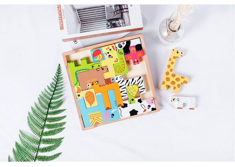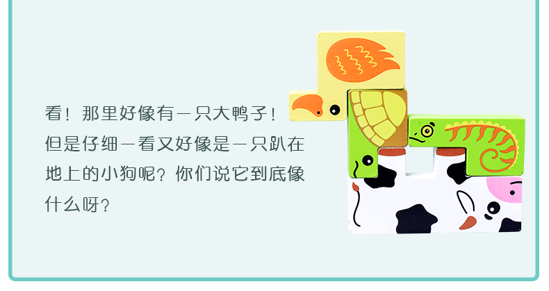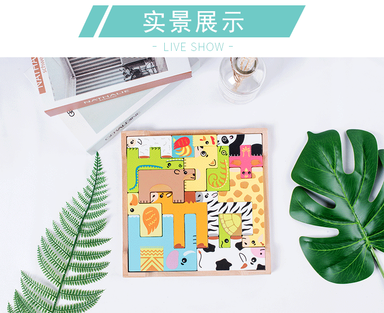 动物印刷俄罗斯方块积木大尺寸儿童益智力立体拼装大颗粒积木玩具