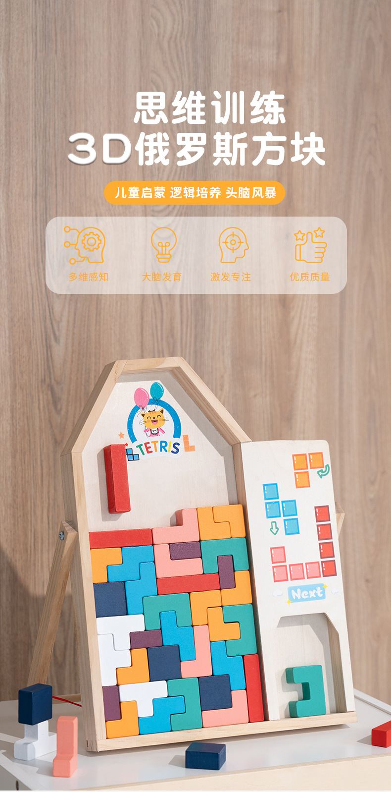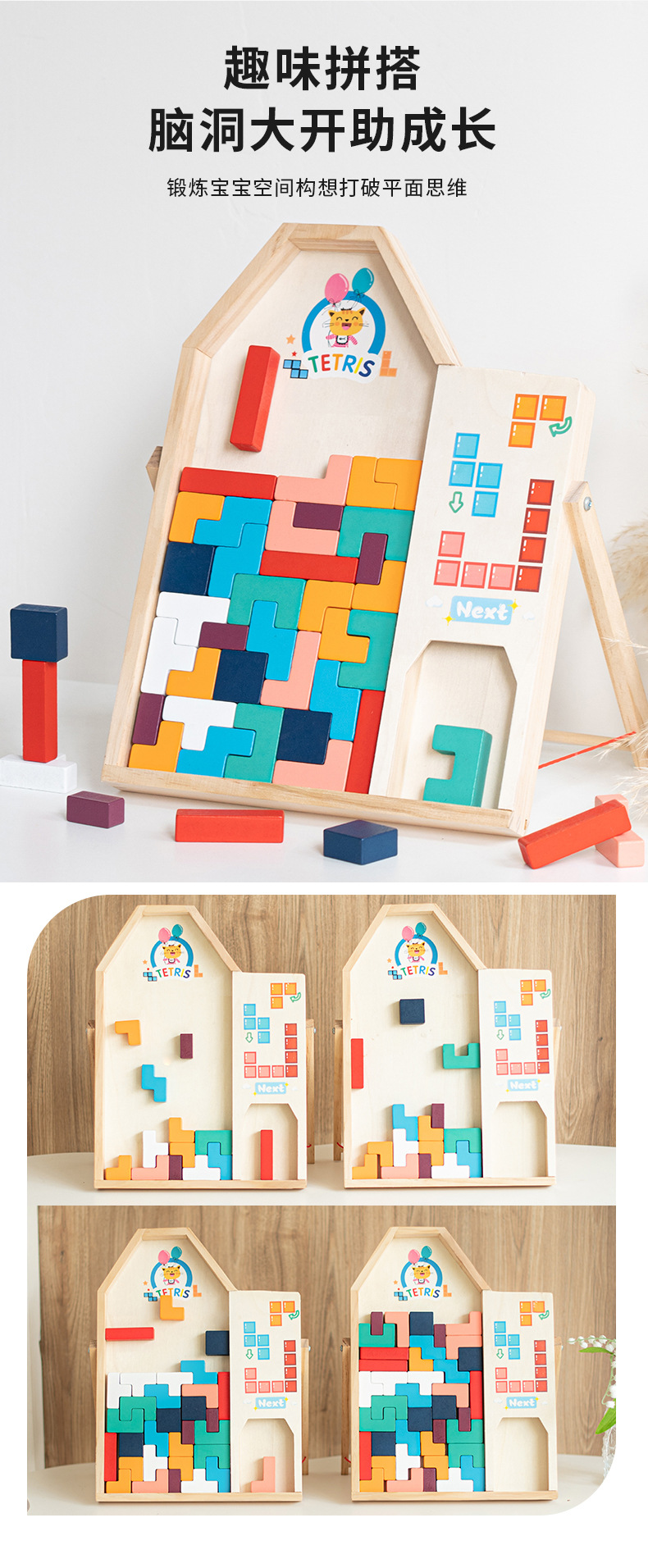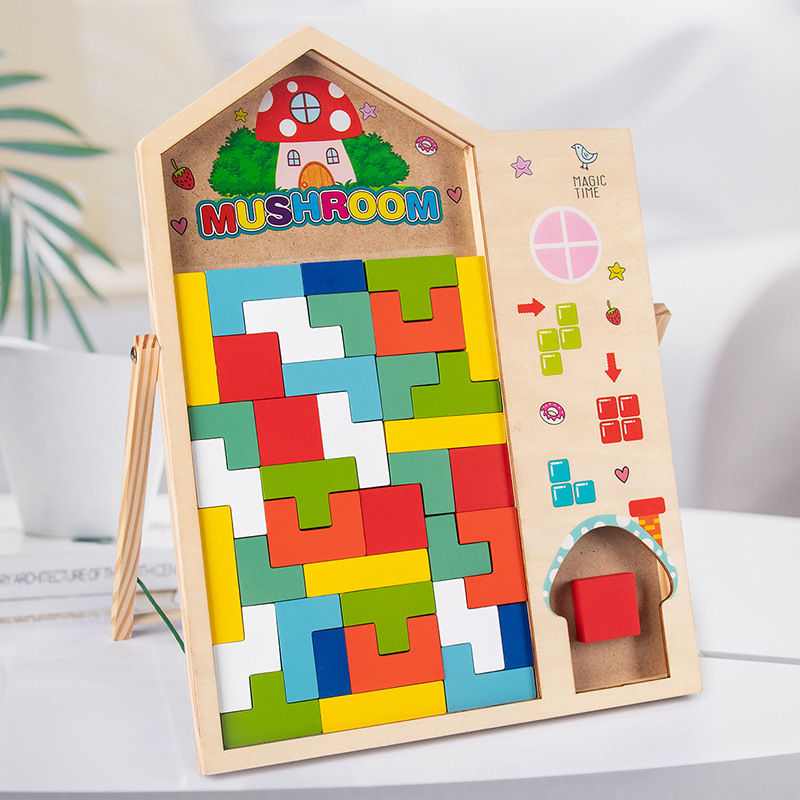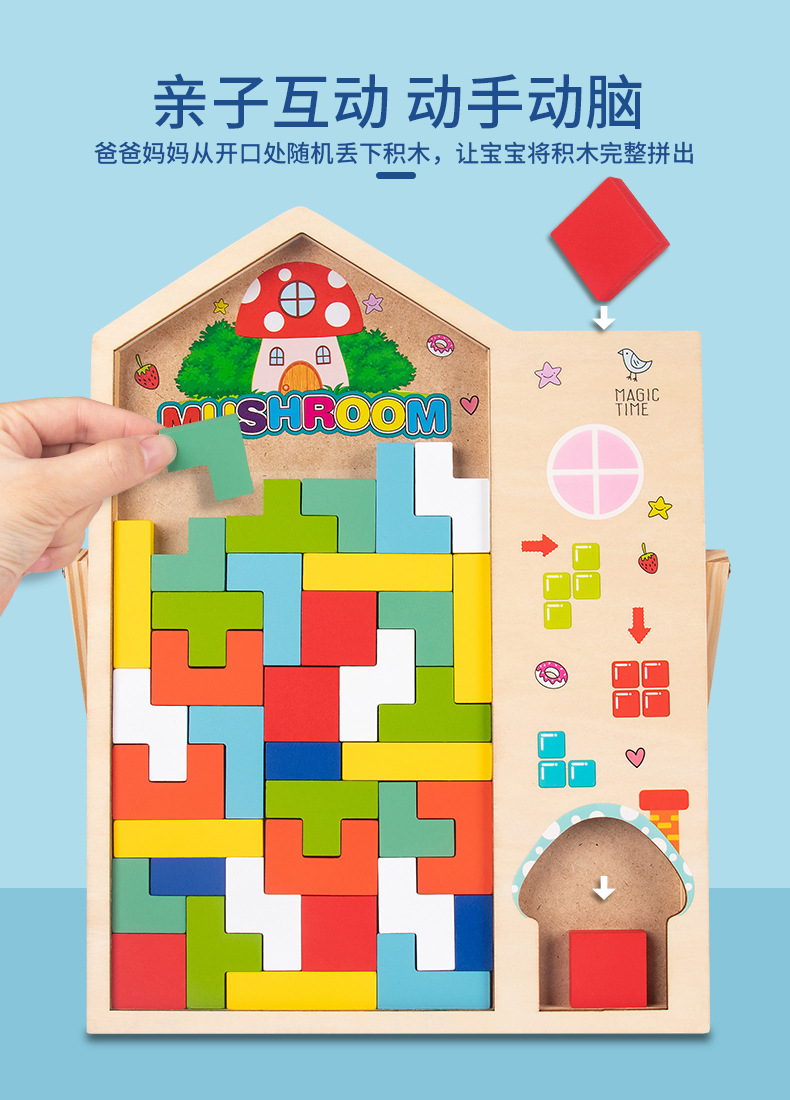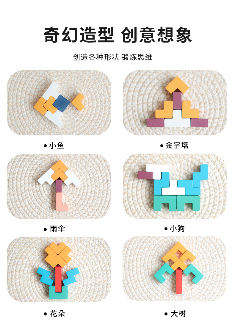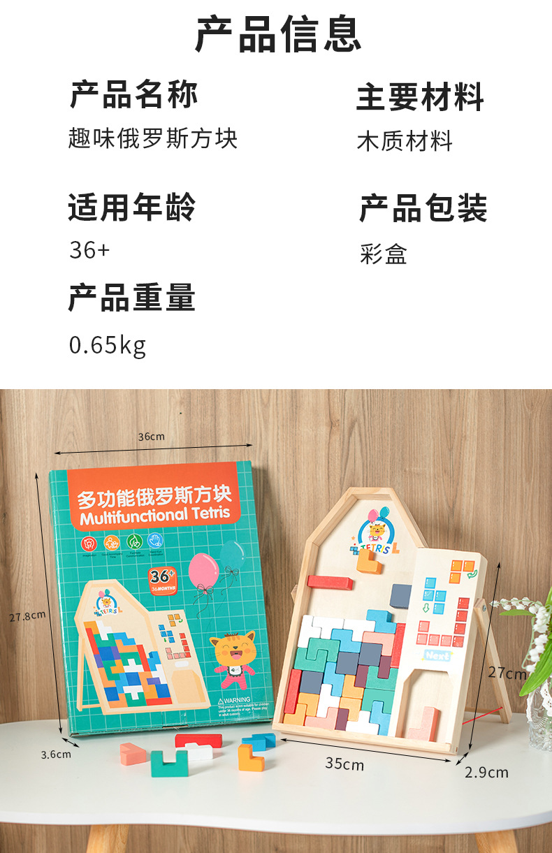 动物印刷俄罗斯方块积木大尺寸儿童益智力立体拼装大颗粒积木玩具