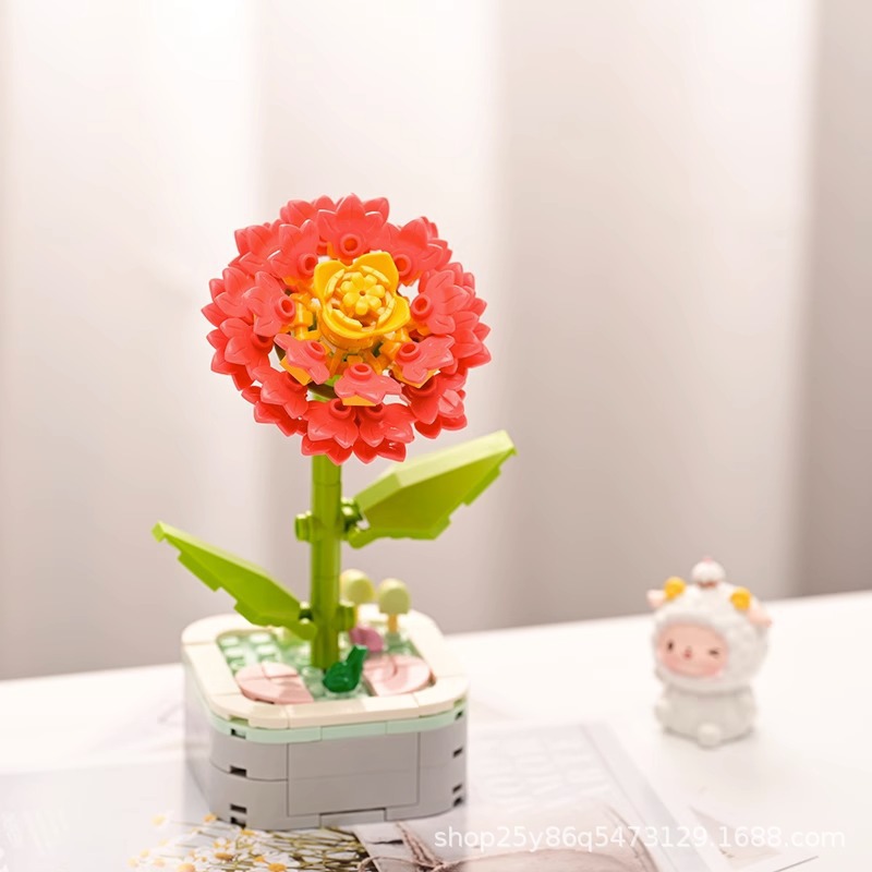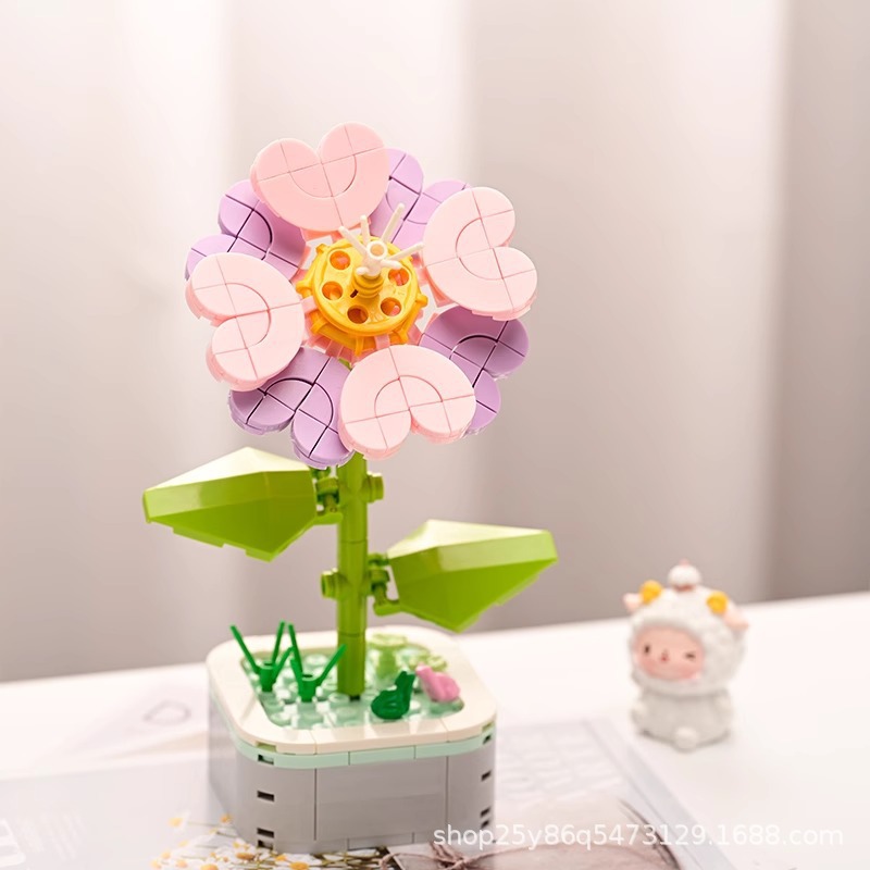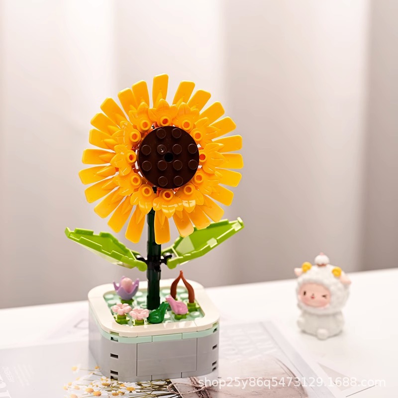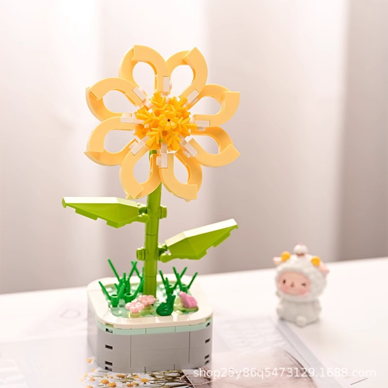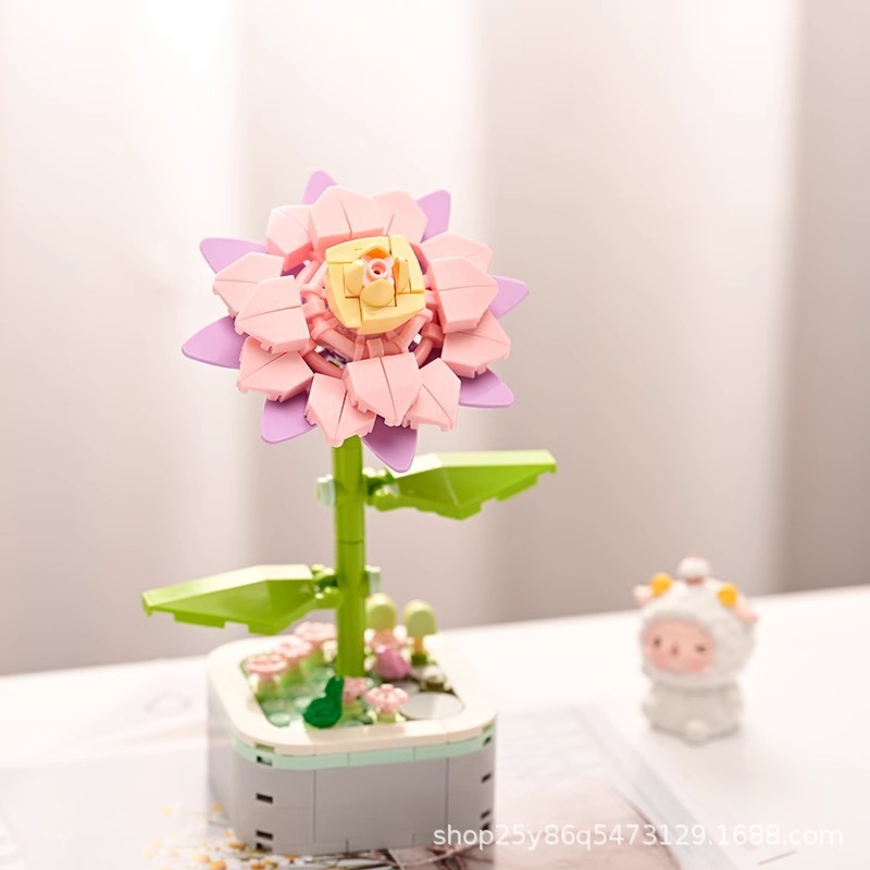 永生绮梦花盒盆栽兼容乐高积木花束向日葵康乃馨儿童拼图玩具女孩