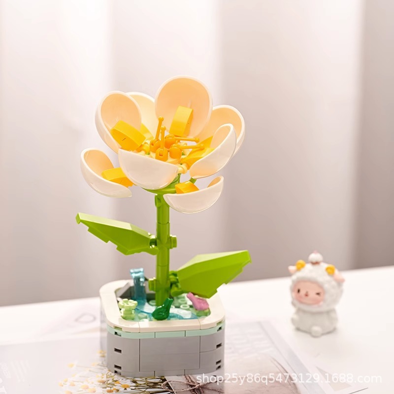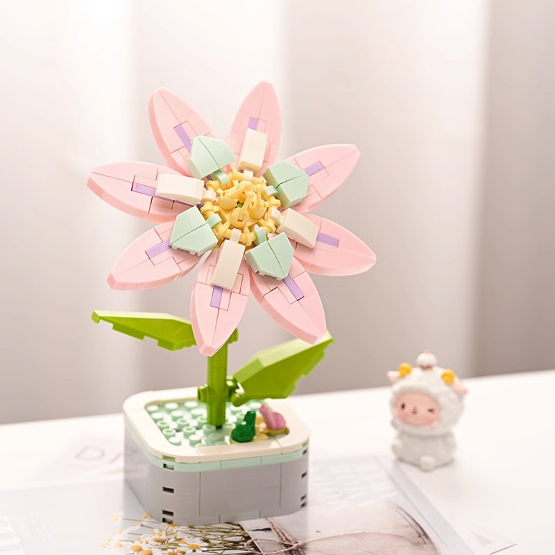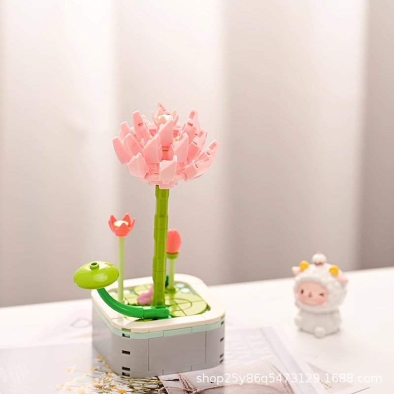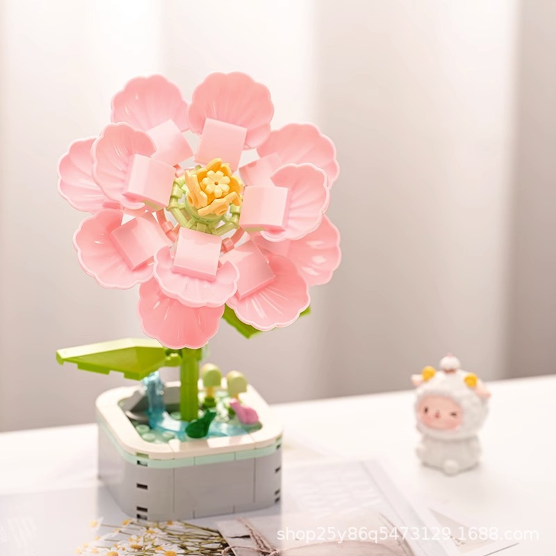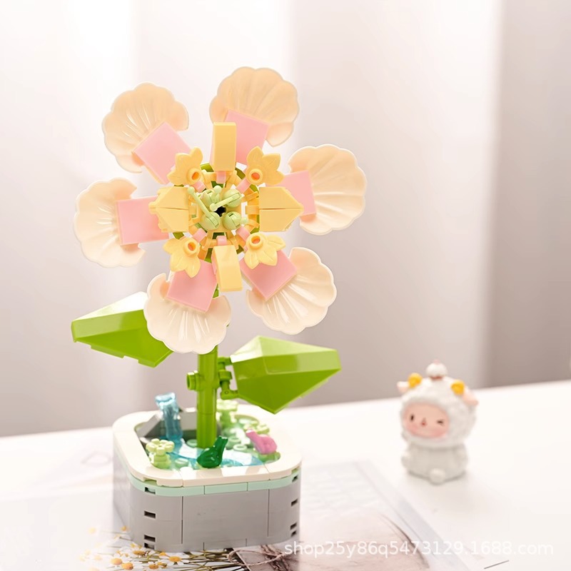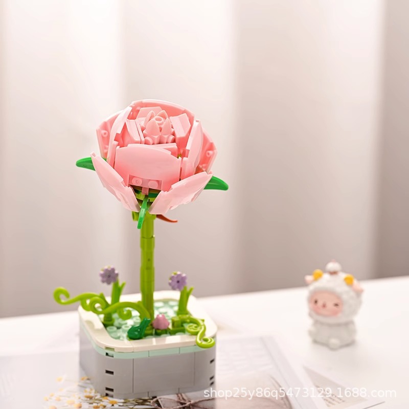 永生绮梦花盒盆栽兼容乐高积木花束向日葵康乃馨儿童拼图玩具女孩