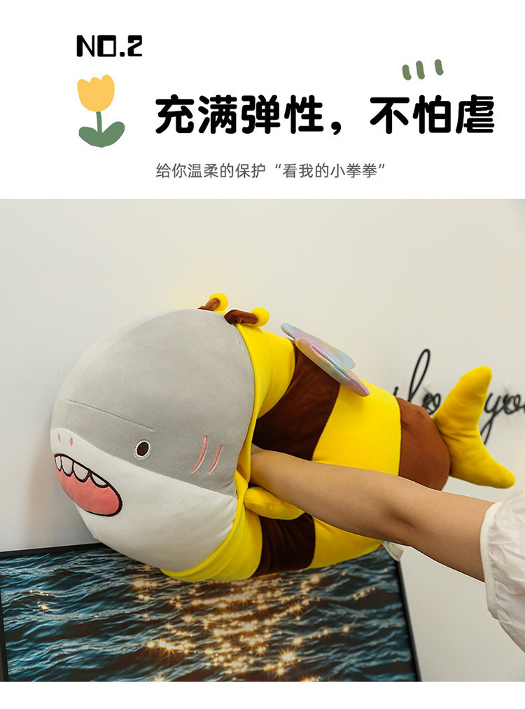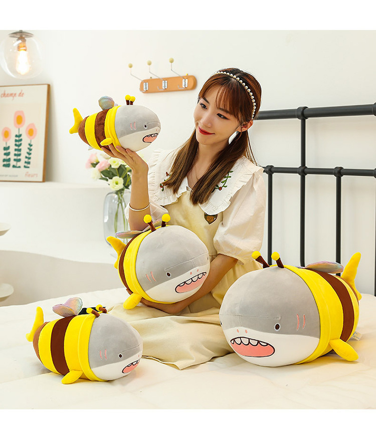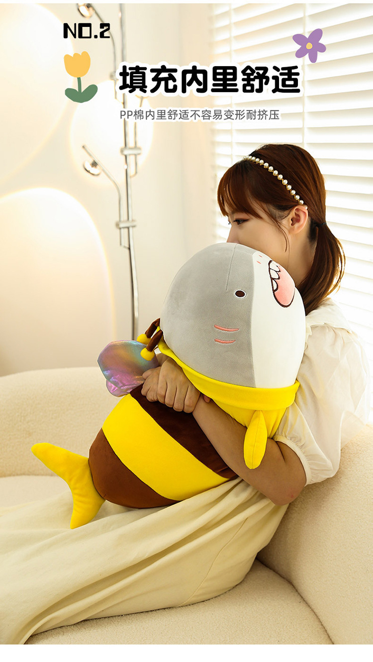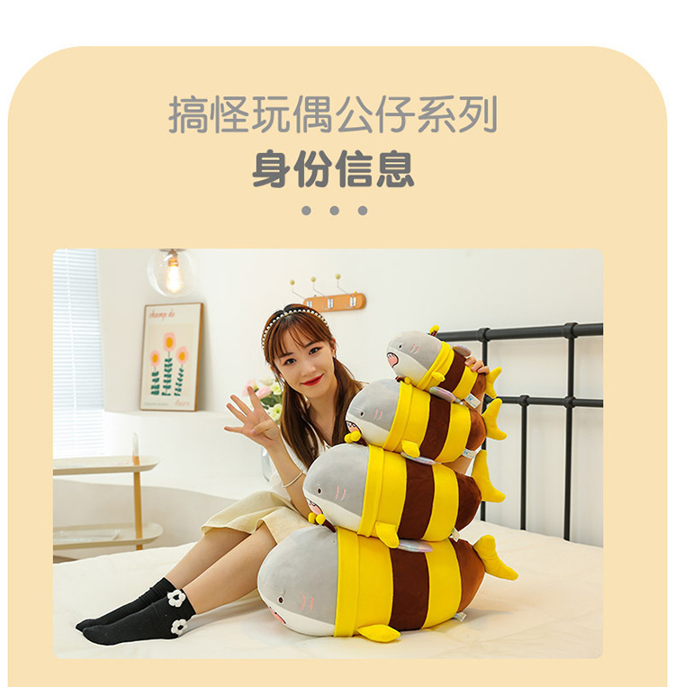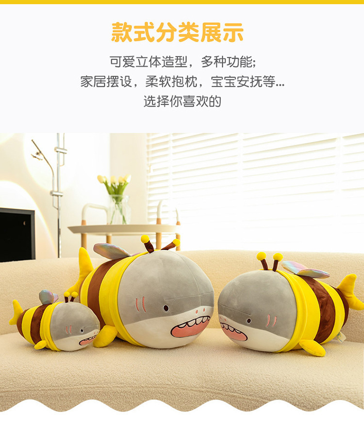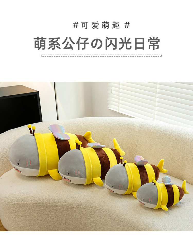 跨境抖音毛绒玩具Shark and Bee鲨鱼和蜜蜂玩具公仔鲨bee毛绒抱枕