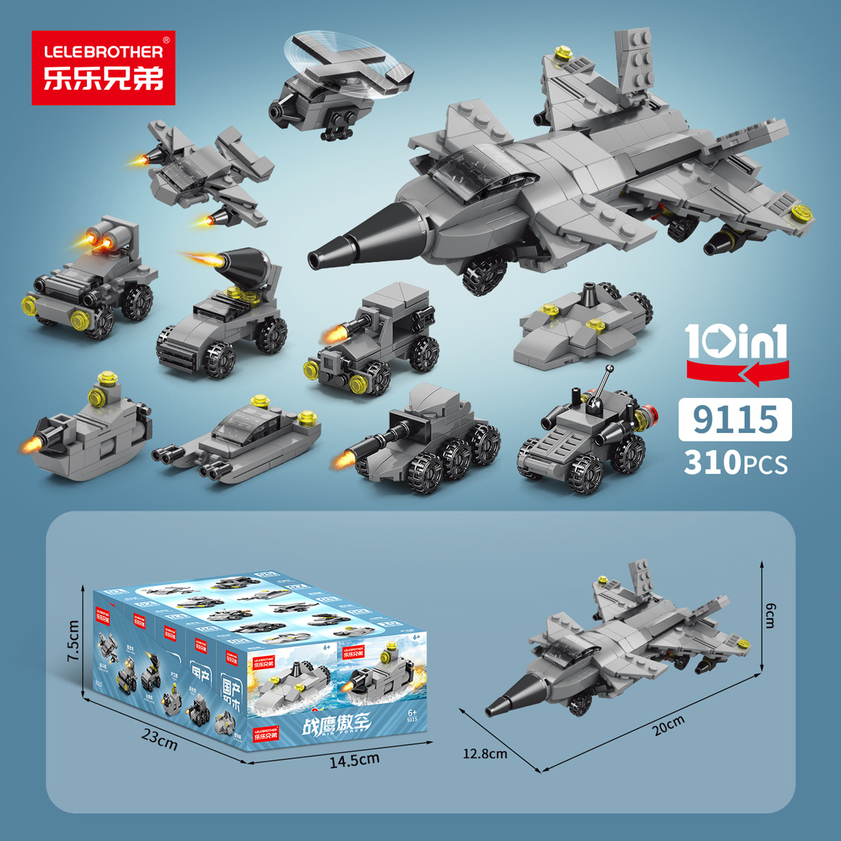乐乐百变拼装玩具积木消防车警察模型军舰飞机兼容乐高摆件9113