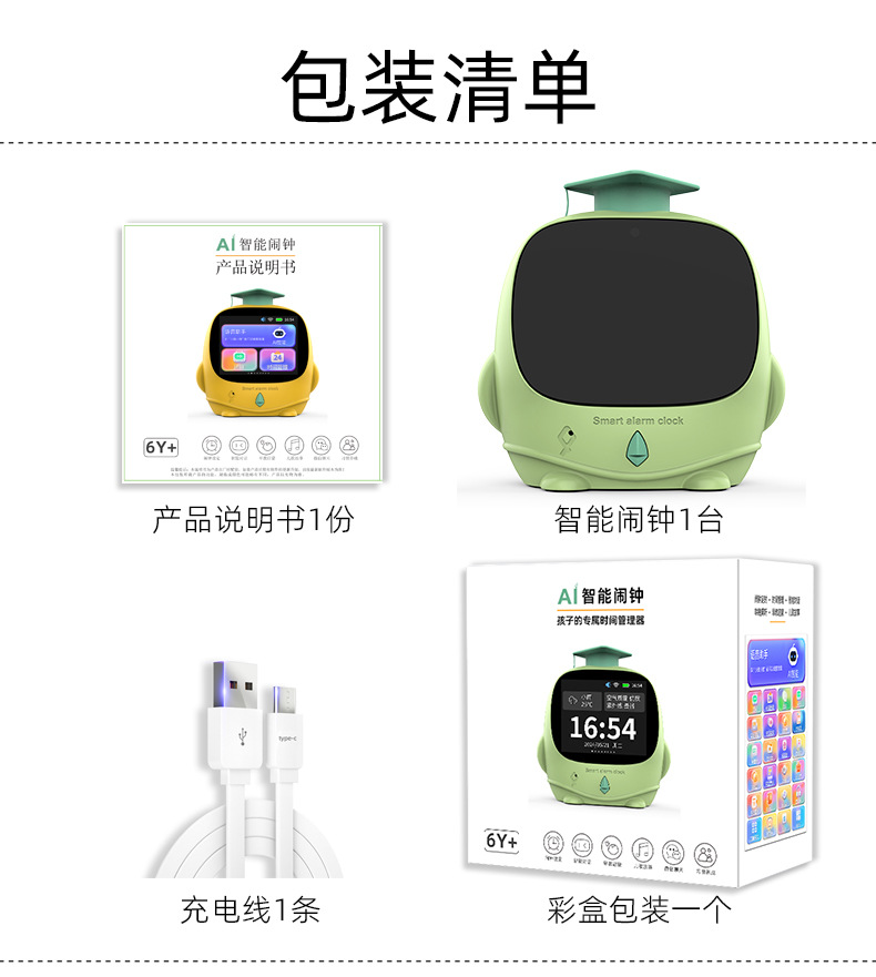宝智航AI学习机早教多功能闹钟智能提醒定时器时间管理神器带夜灯