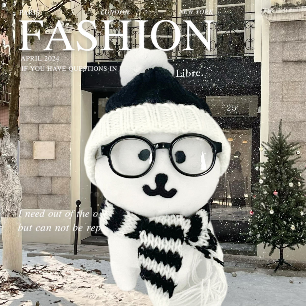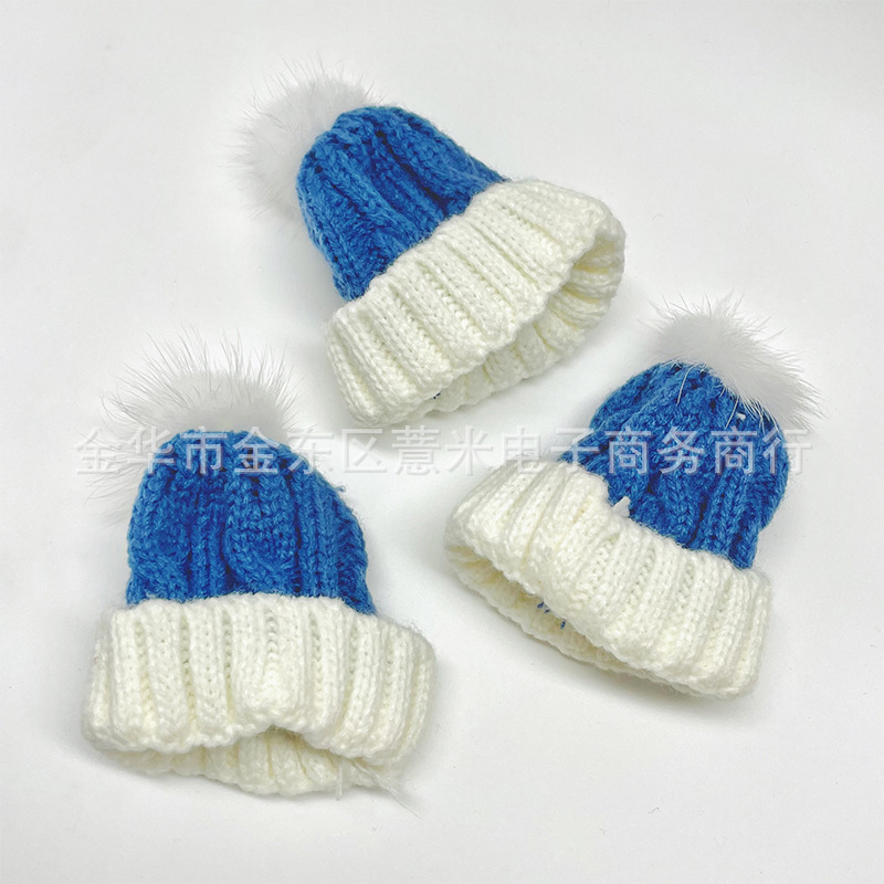 13cm自嘲熊挂件娃衣蓝色毛线帽子围巾可爱冬季娃娃围巾配饰便宜