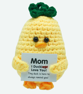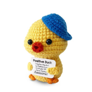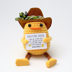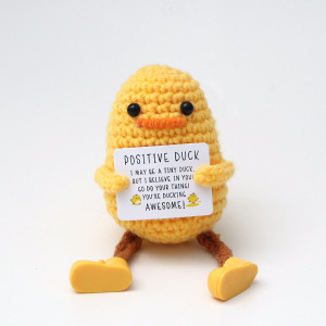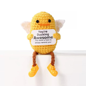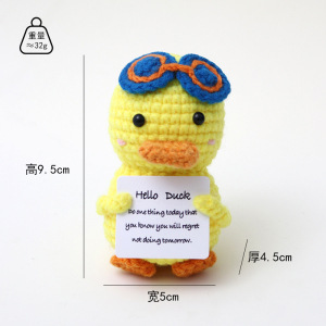 跨境爆款手工钩织小黄鸭毛线娃娃挂件可爱正能量鸭子毛线玩偶成品