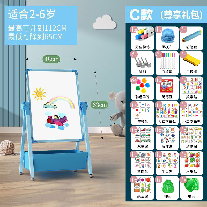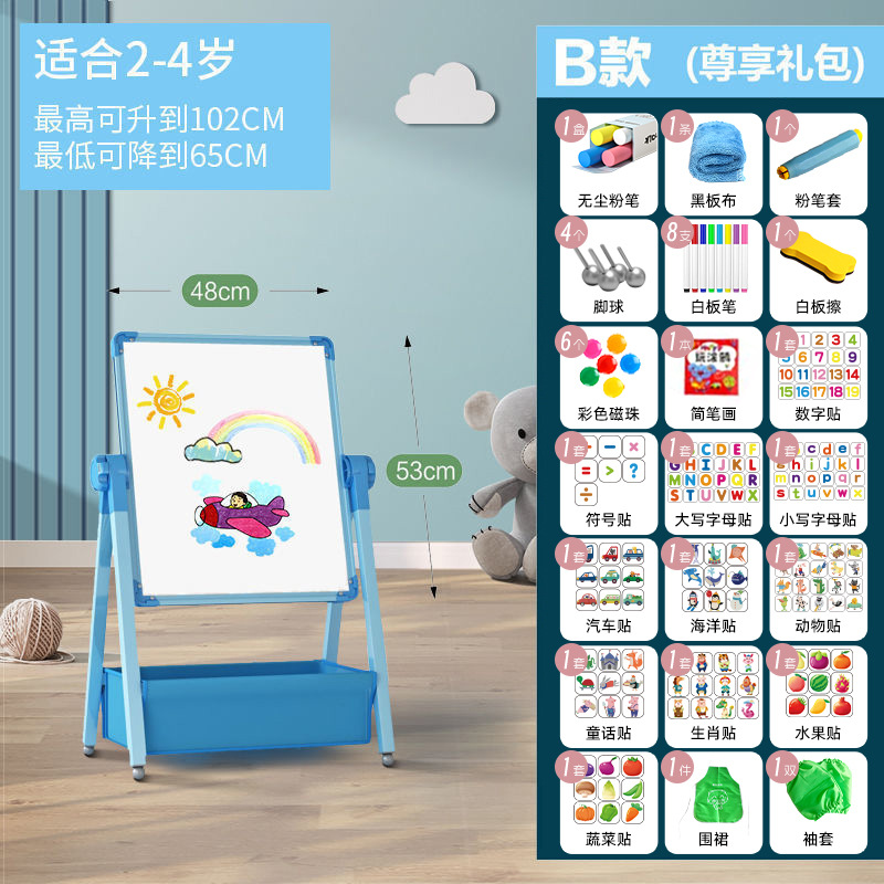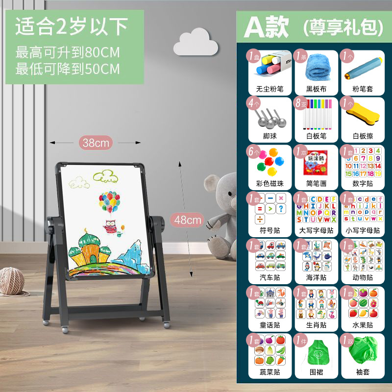 儿童画板宝宝磁性双面教学家用小黑板支架式涂色涂鸦可擦写字白板