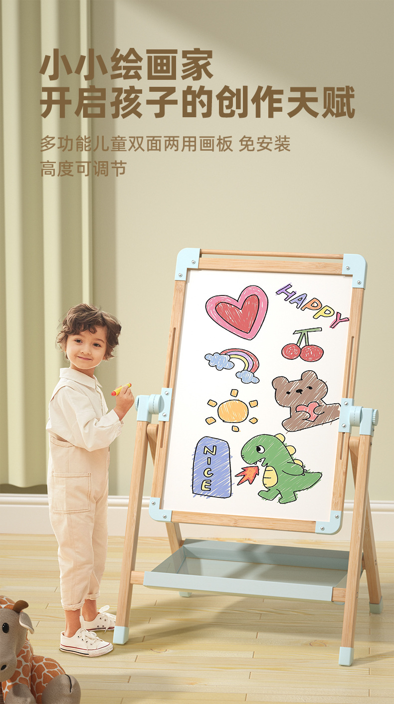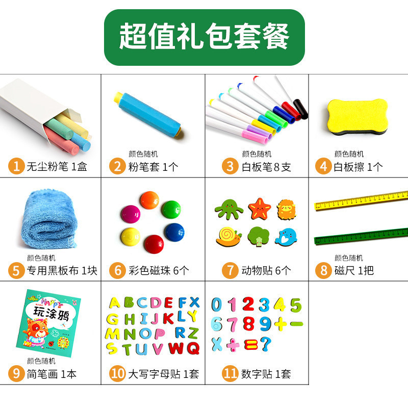 小黑板家用儿童磁性涂鸦双面画画板写字板支架式幼儿宝宝无尘画板