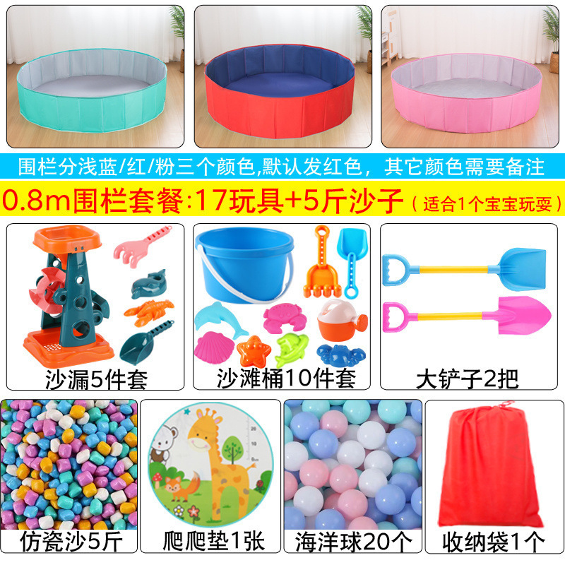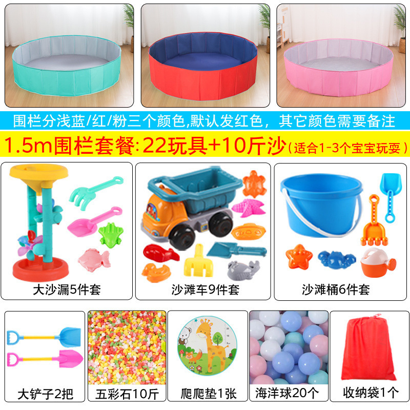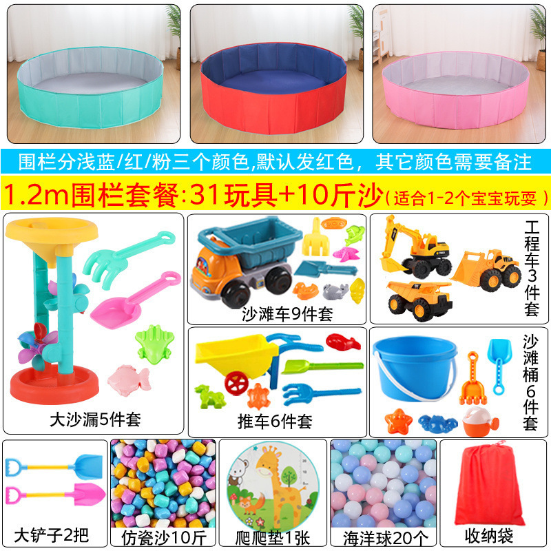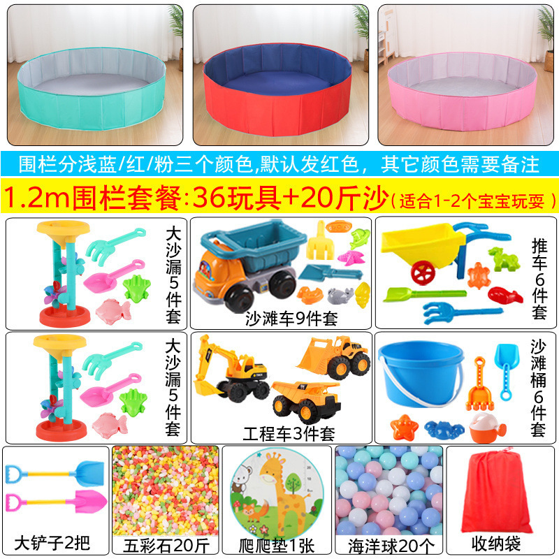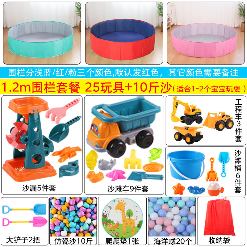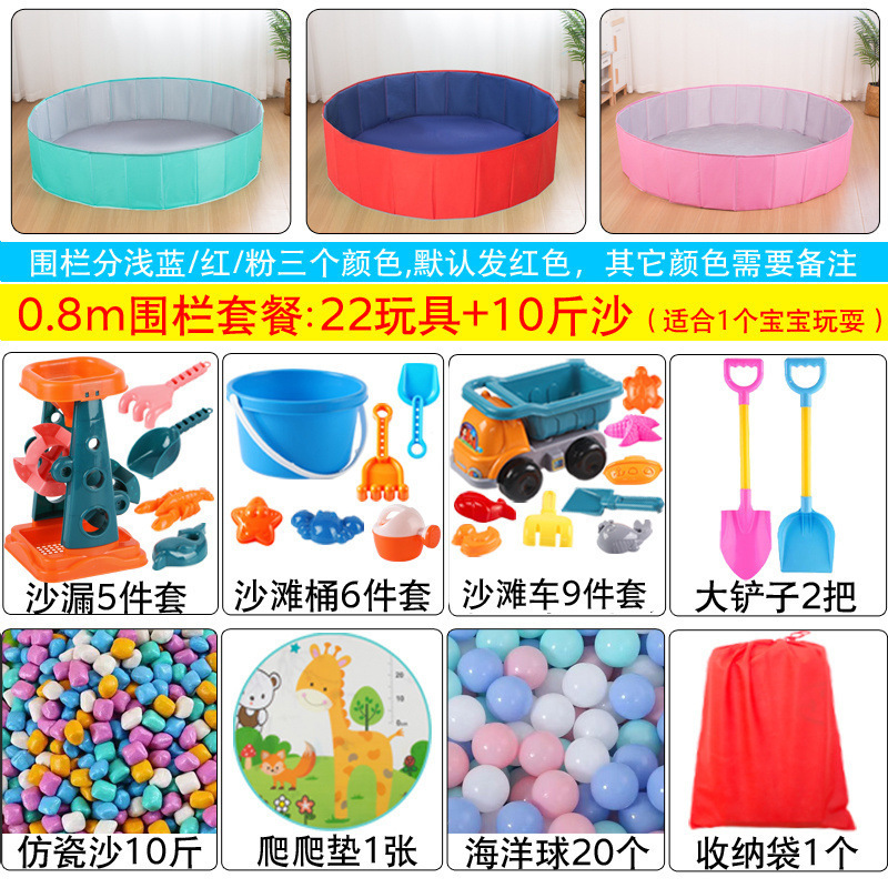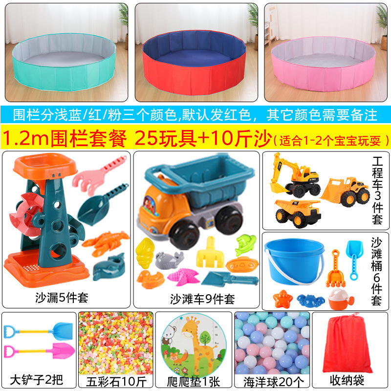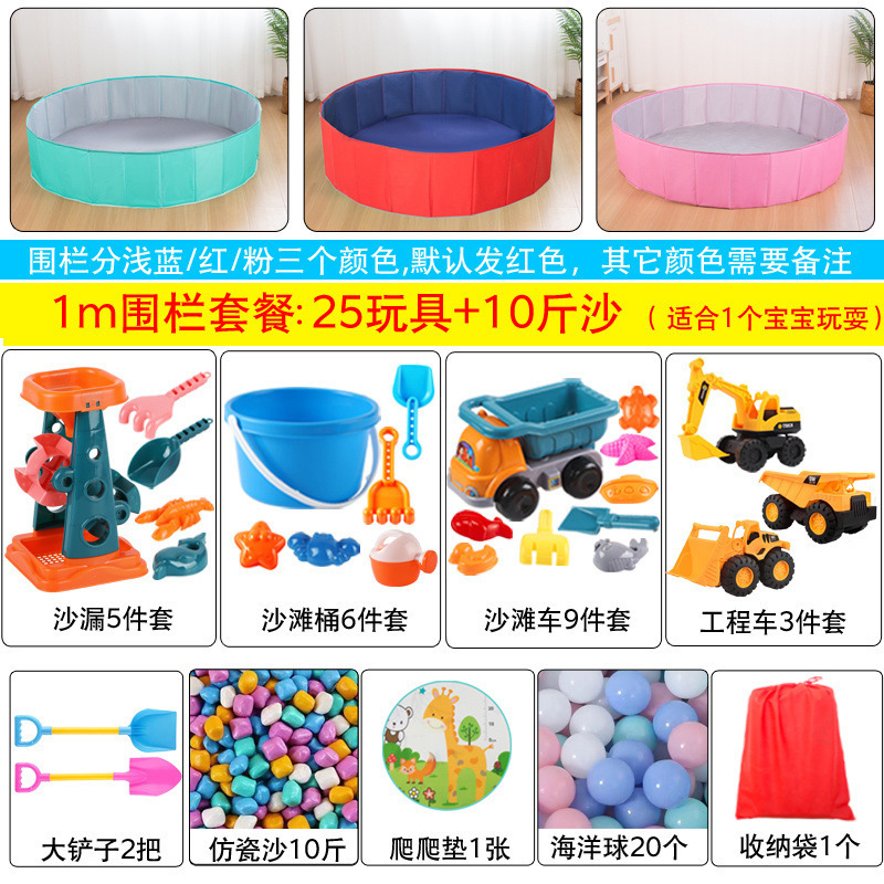 决明子玩具沙池套装儿童家用室内围栏折叠宝宝玩沙池挖沙