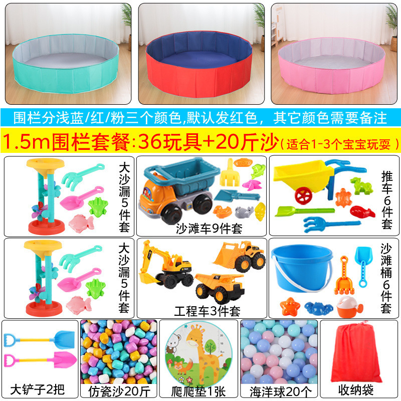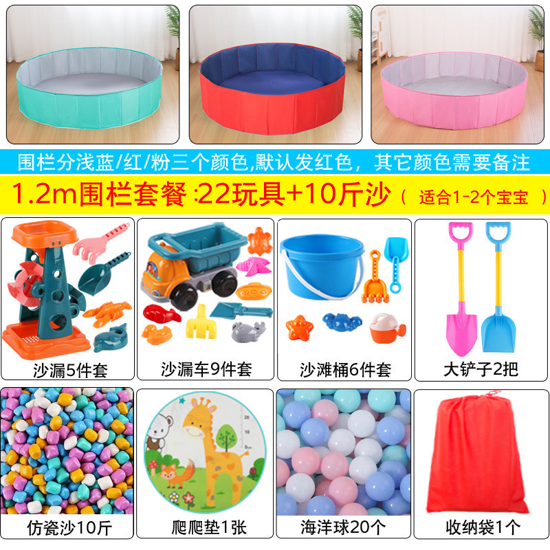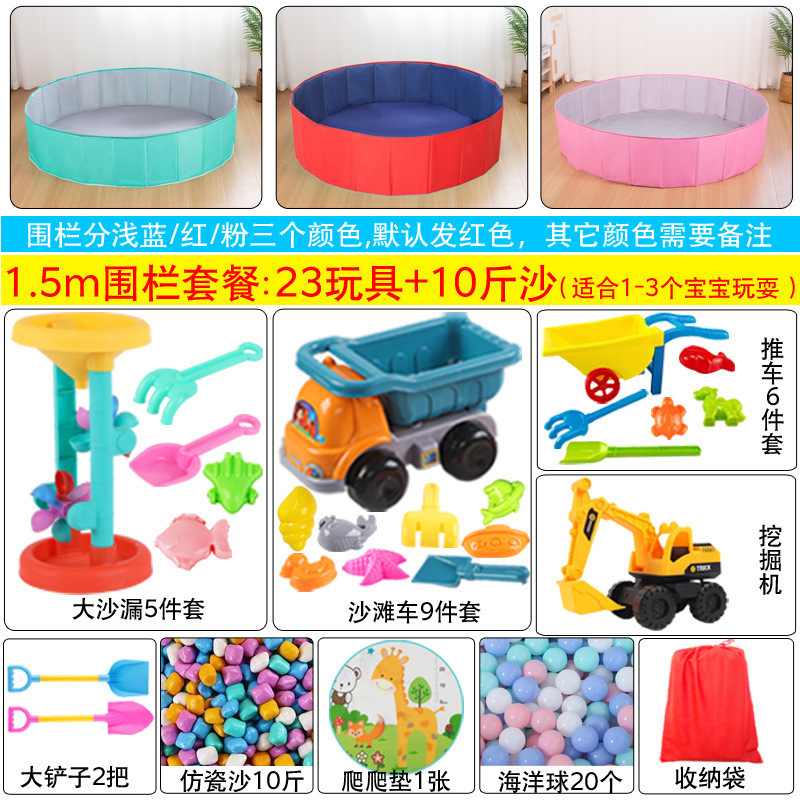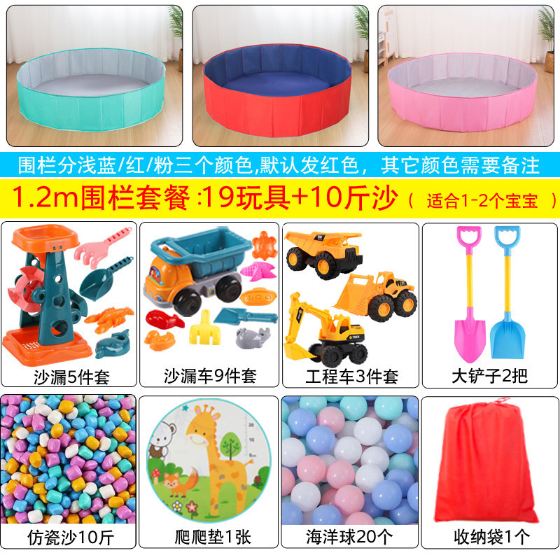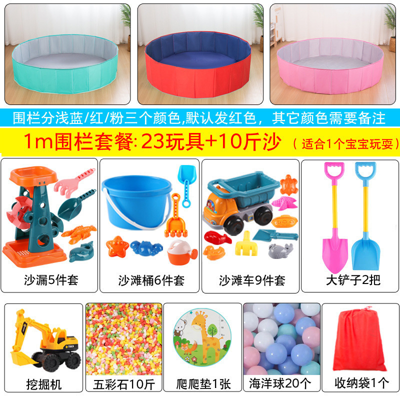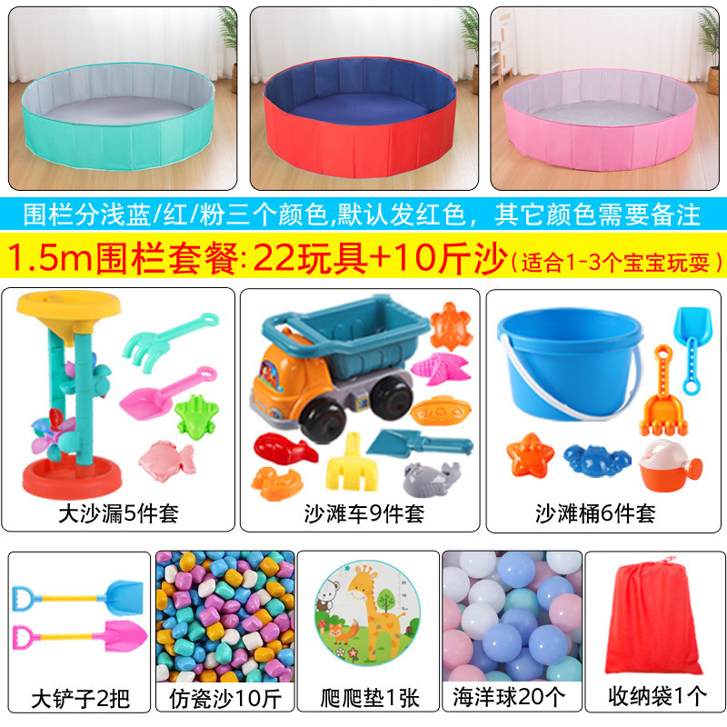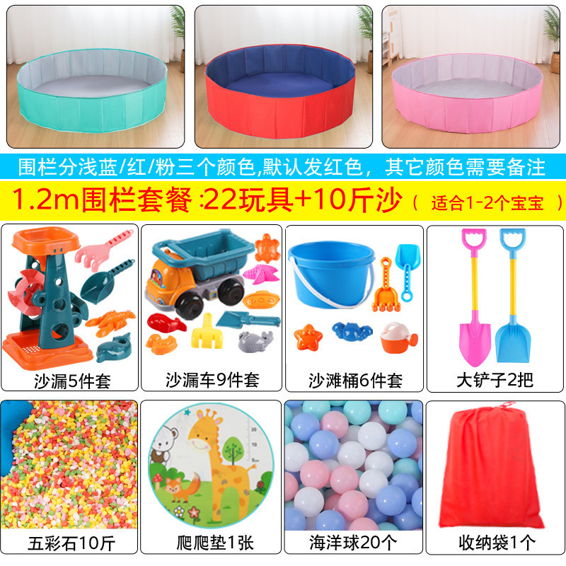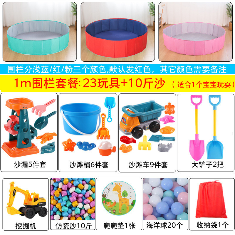 决明子玩具沙池套装儿童家用室内围栏折叠宝宝玩沙池挖沙
