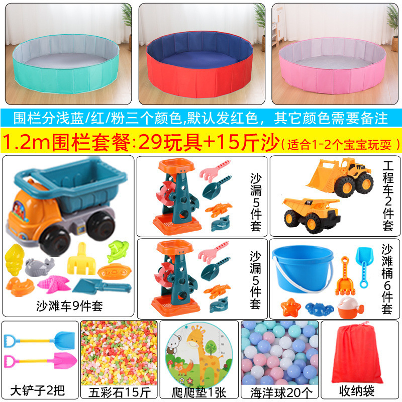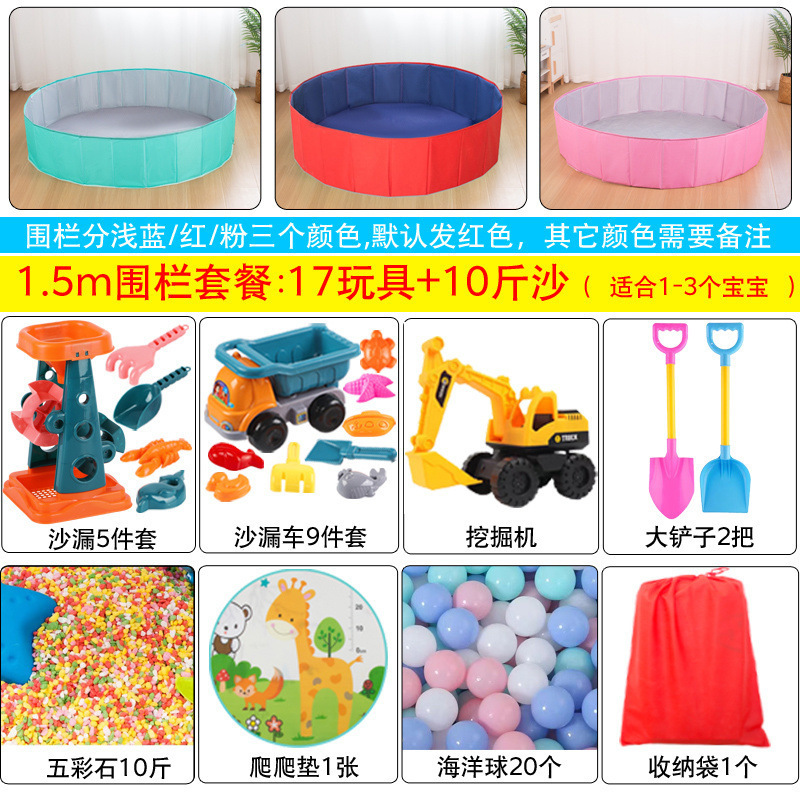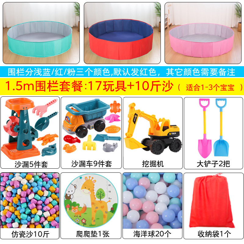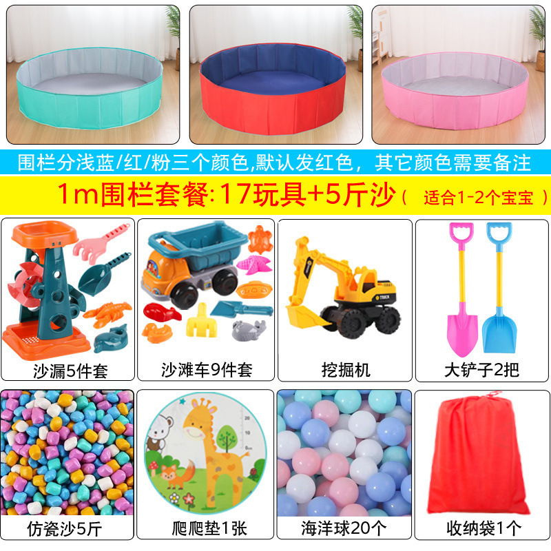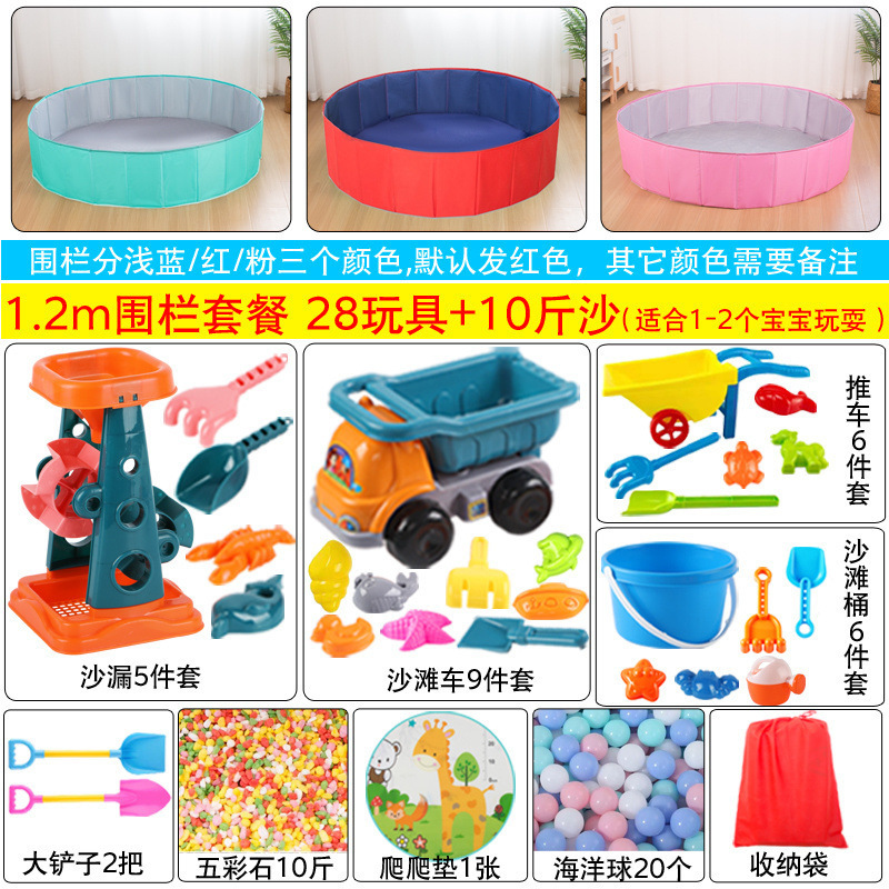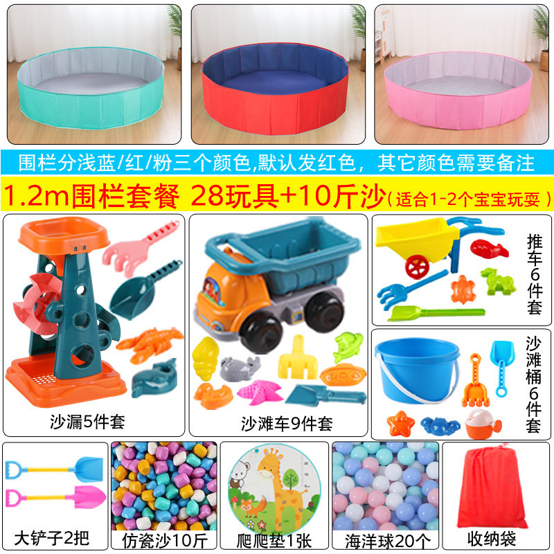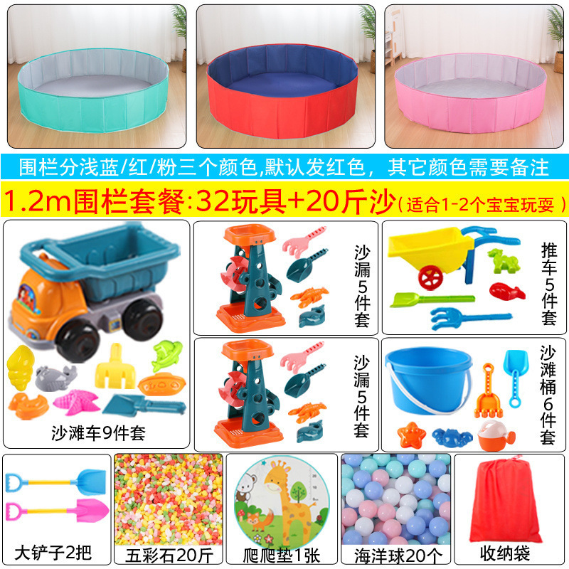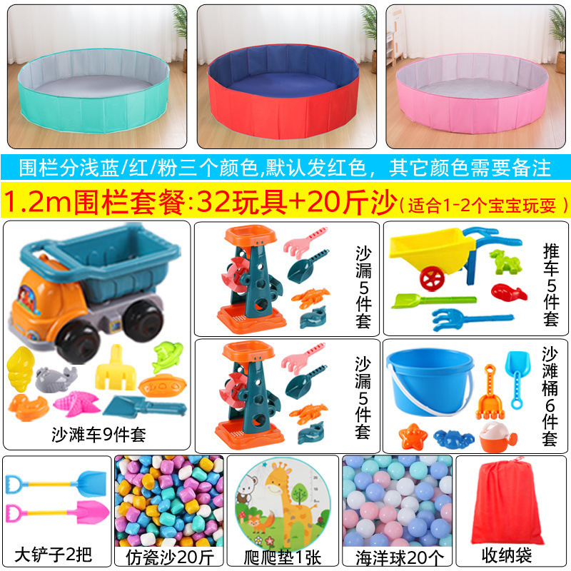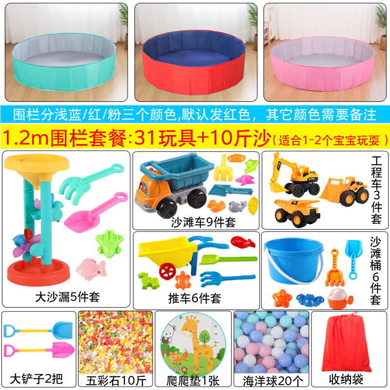 决明子玩具沙池套装儿童家用室内围栏折叠宝宝玩沙池挖沙