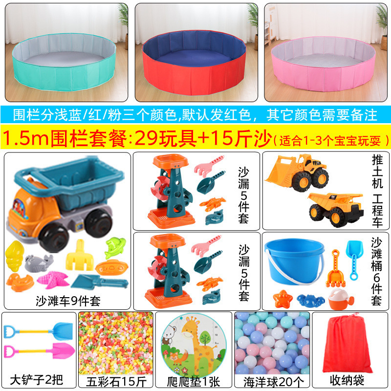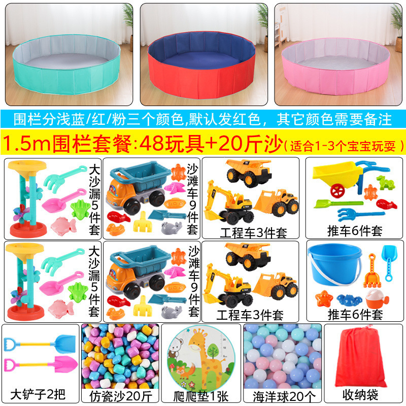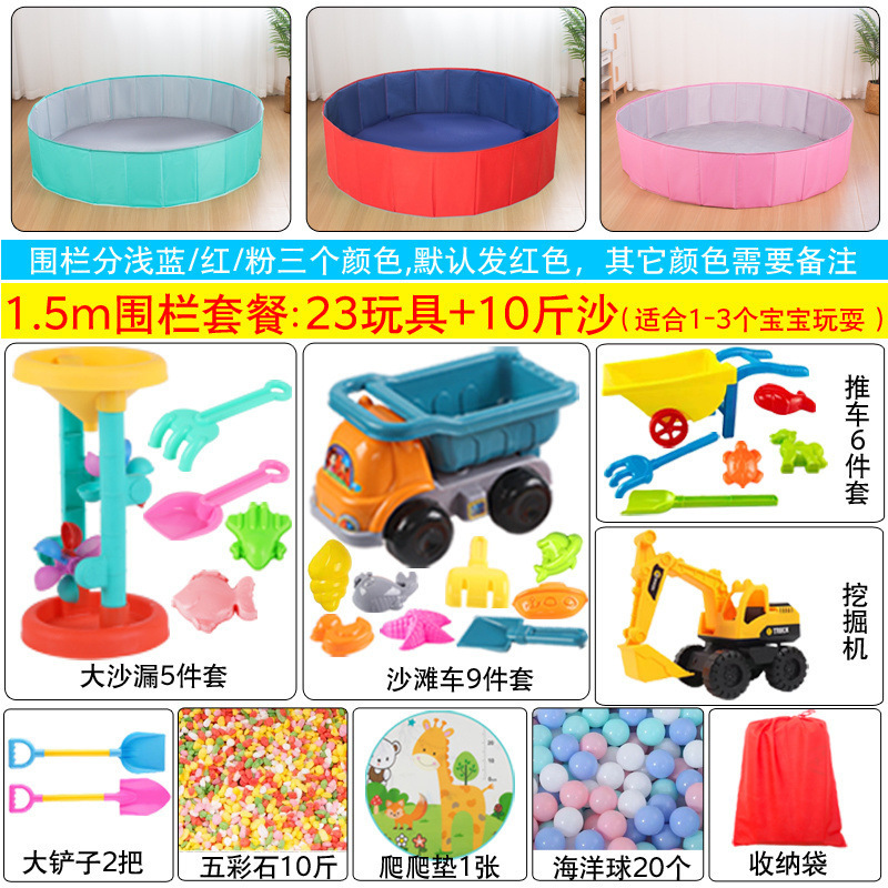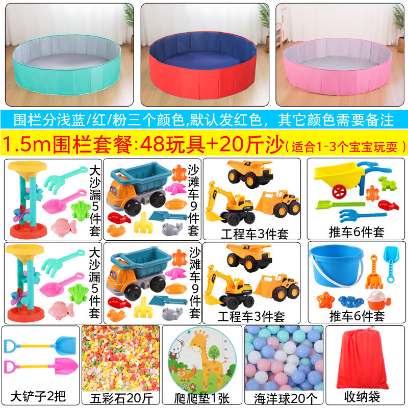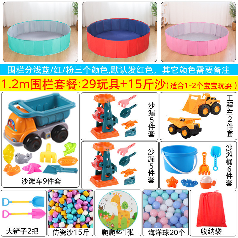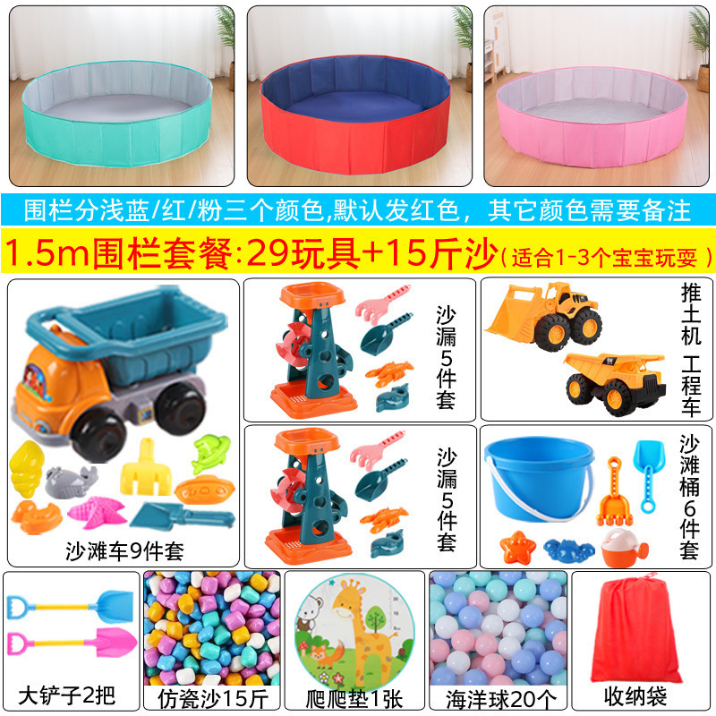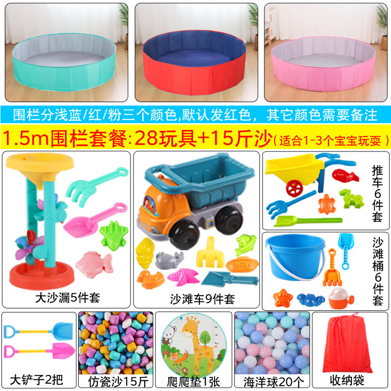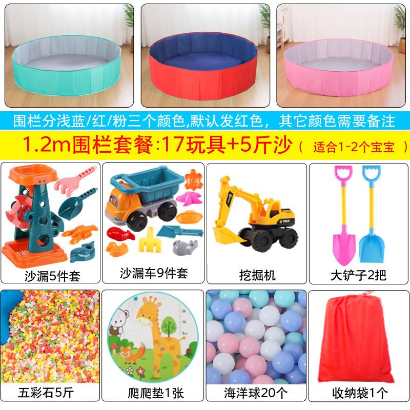 决明子玩具沙池套装儿童家用室内围栏折叠宝宝玩沙池挖沙